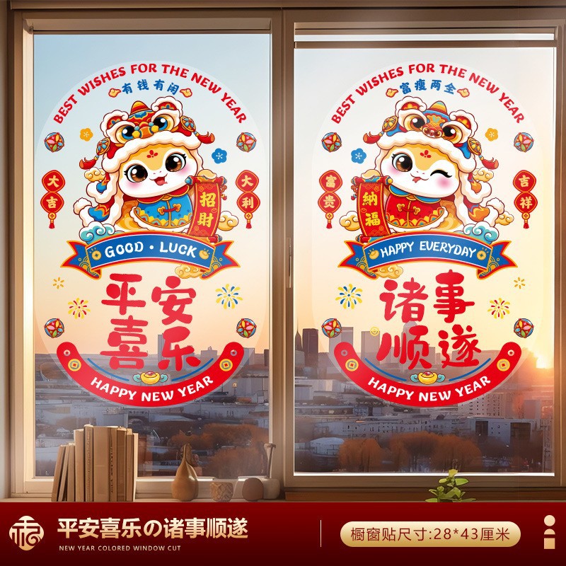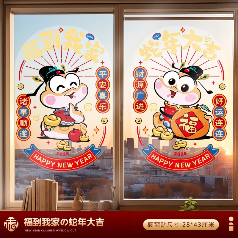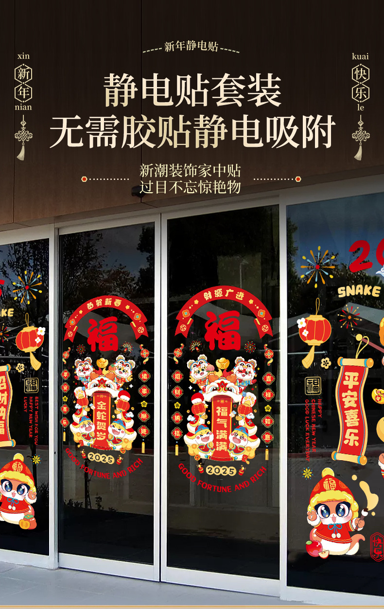 蛇年窗花2025新款过年橱窗贴店铺玻璃贴纸春节用品新年静电贴批发
