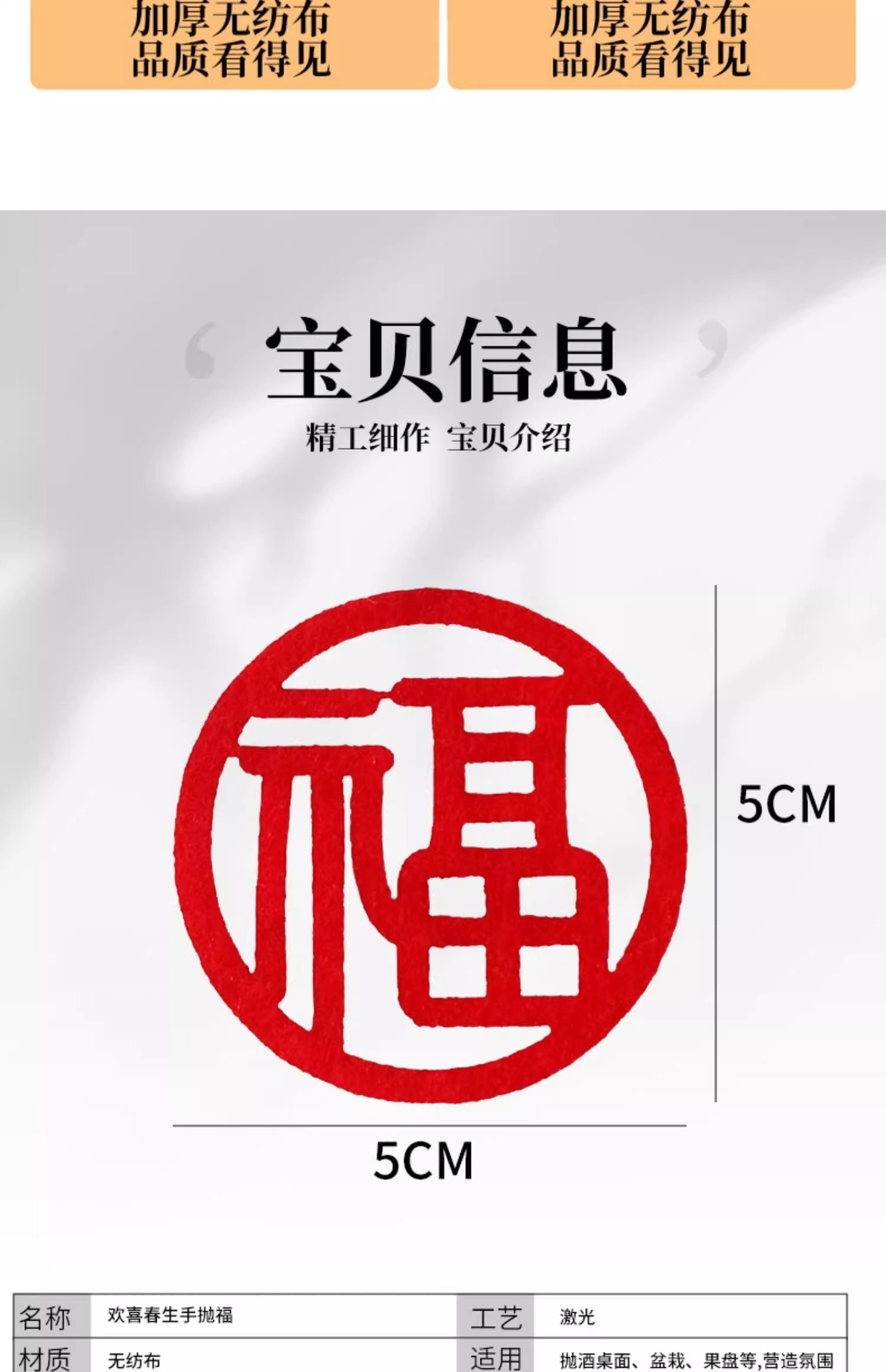 | 5 * 5cm (hand throw mini small fu word)(5*5CM(手抛迷你小福字)) | USD $0.31 | 99987 piece available |