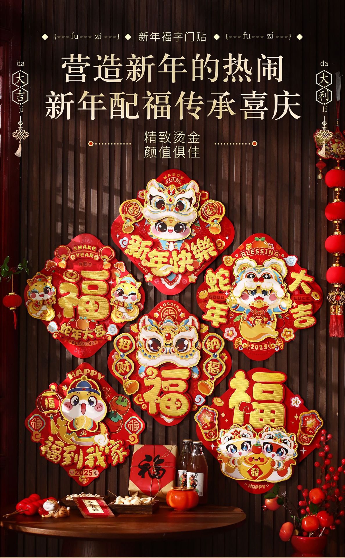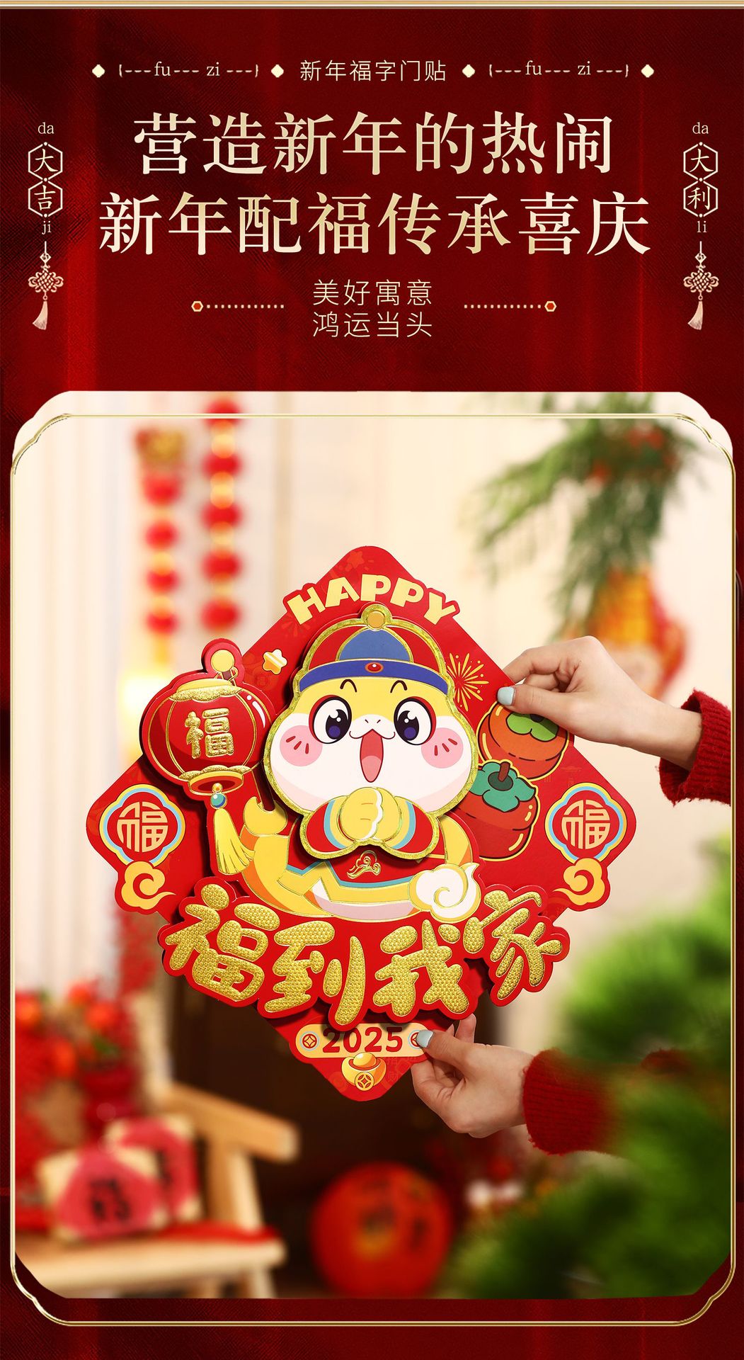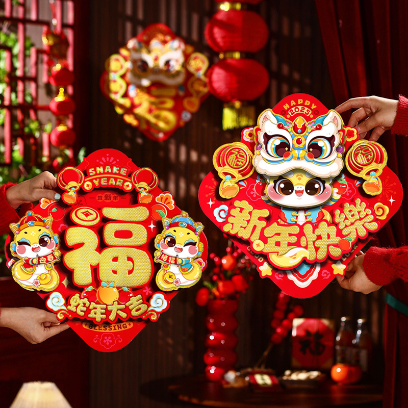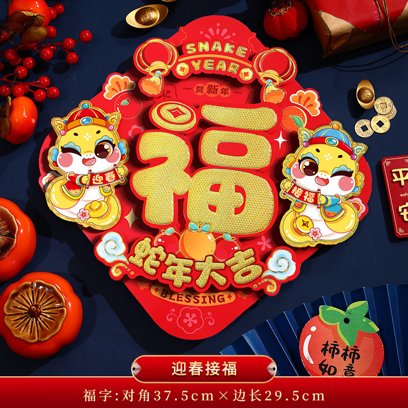 生肖新年福字门贴2025蛇年新年大门装饰立体过年斗方门幅春节用品