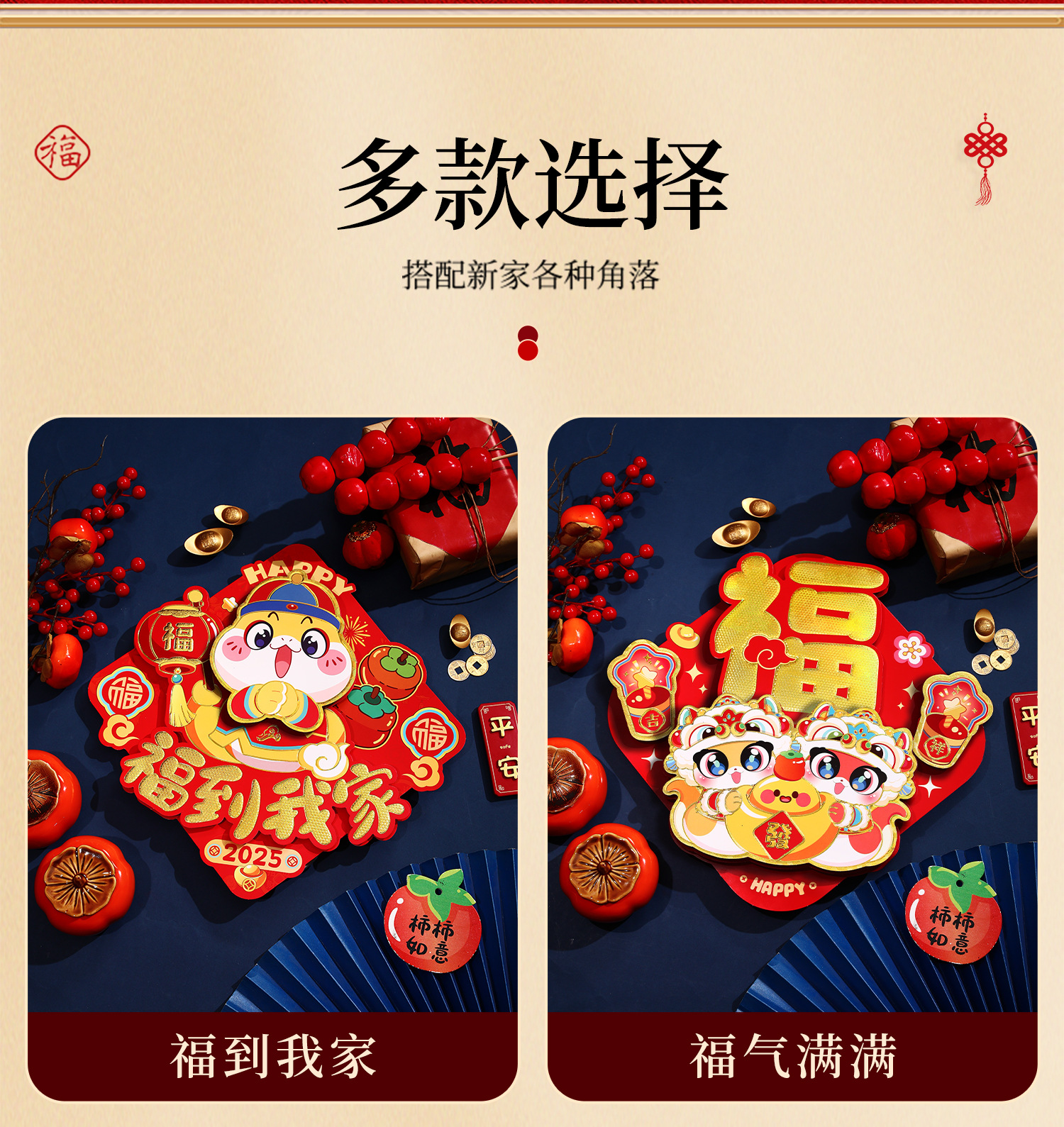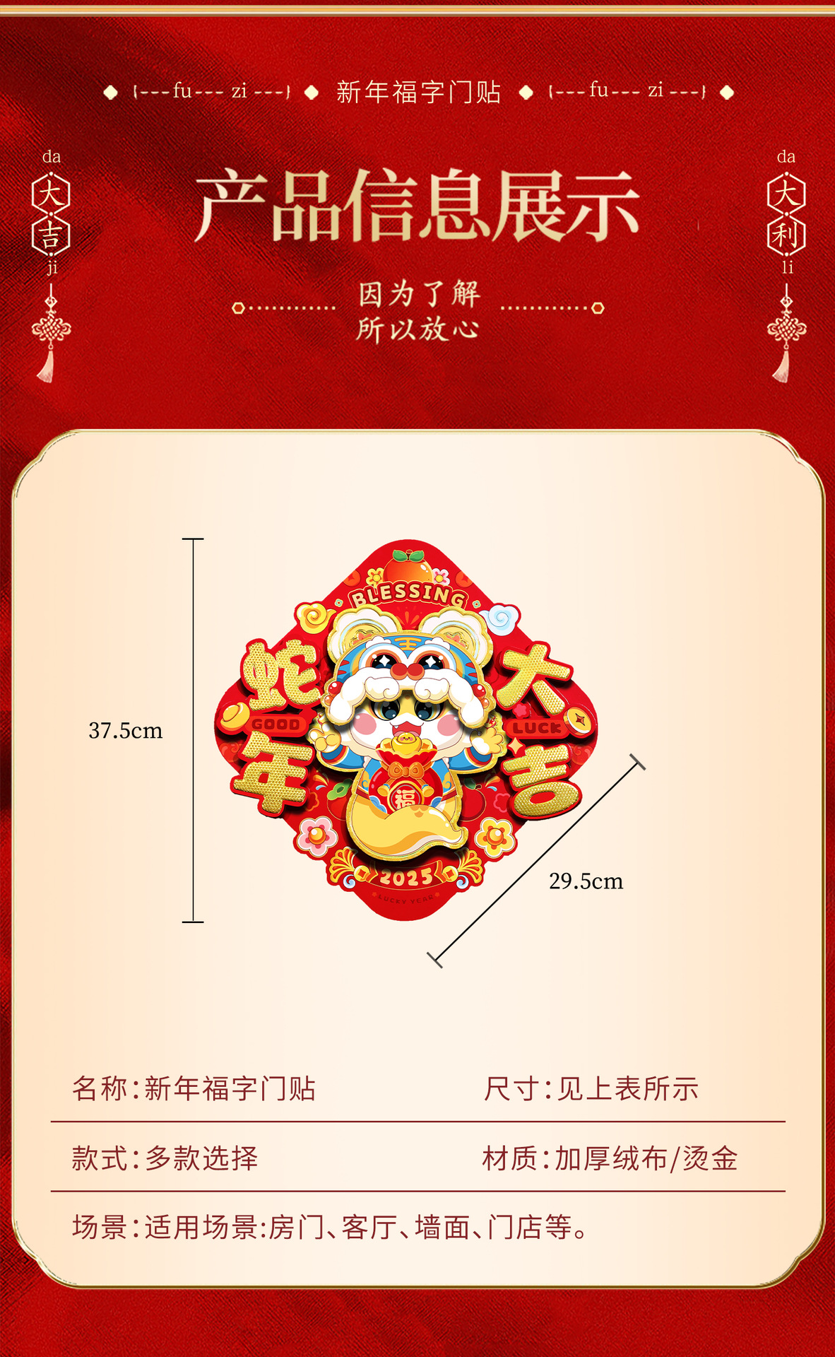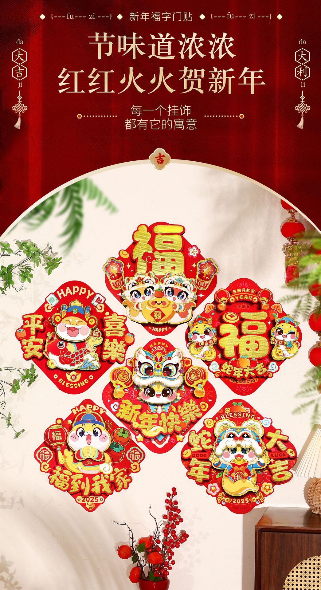 生肖新年福字门贴2025蛇年新年大门装饰立体过年斗方门幅春节用品