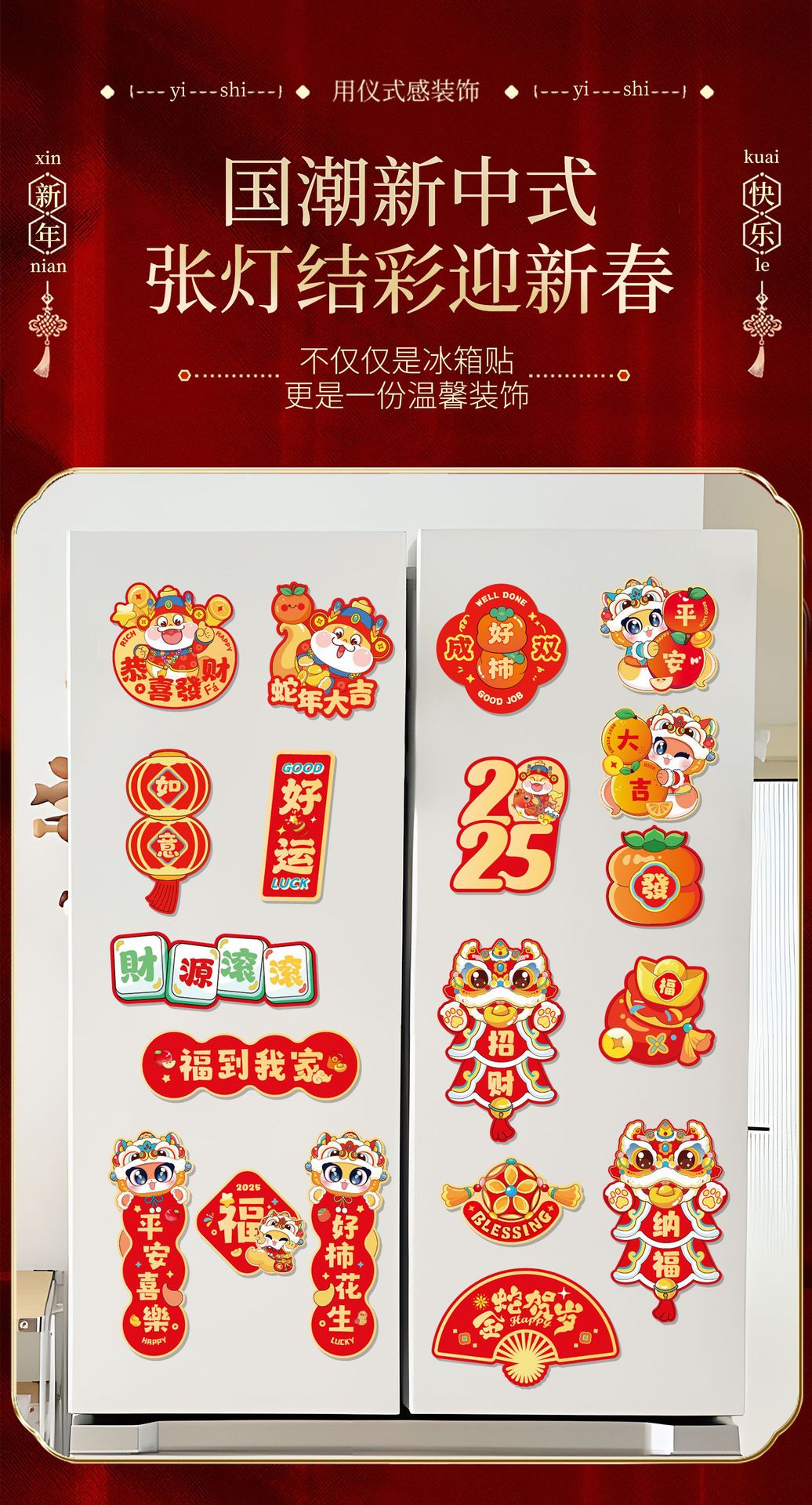 冰箱贴2025新款磁吸冰箱门贴创意福字布置新年装饰品春节用品批发