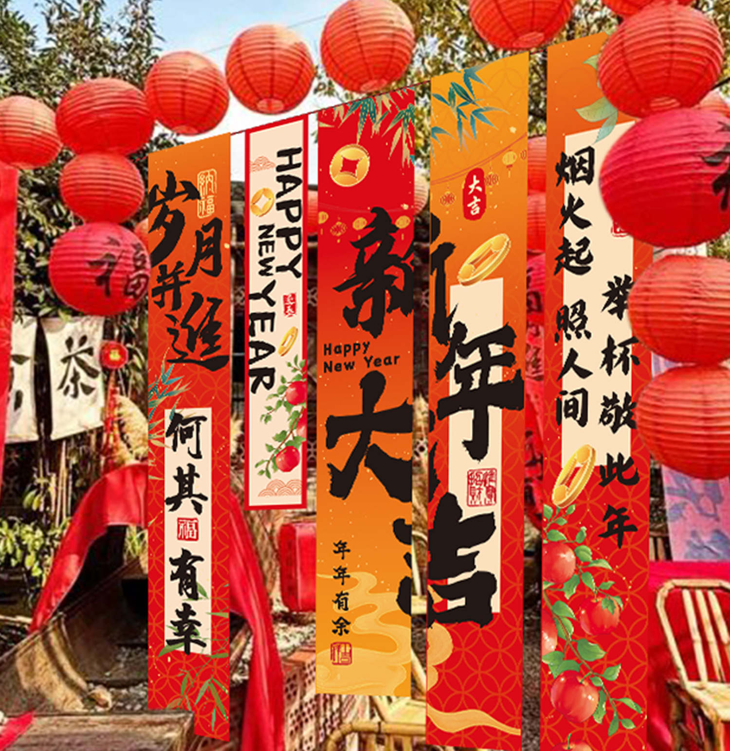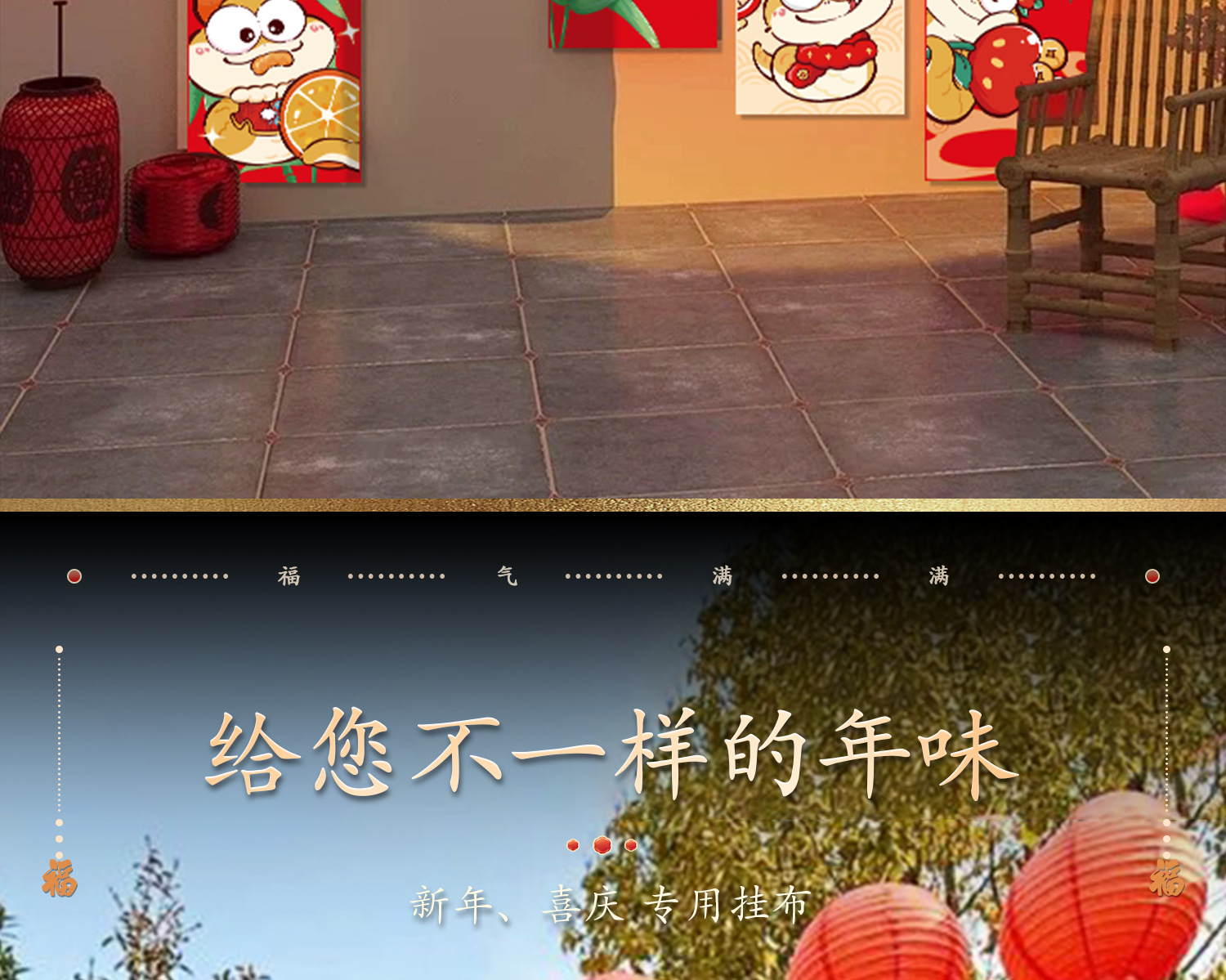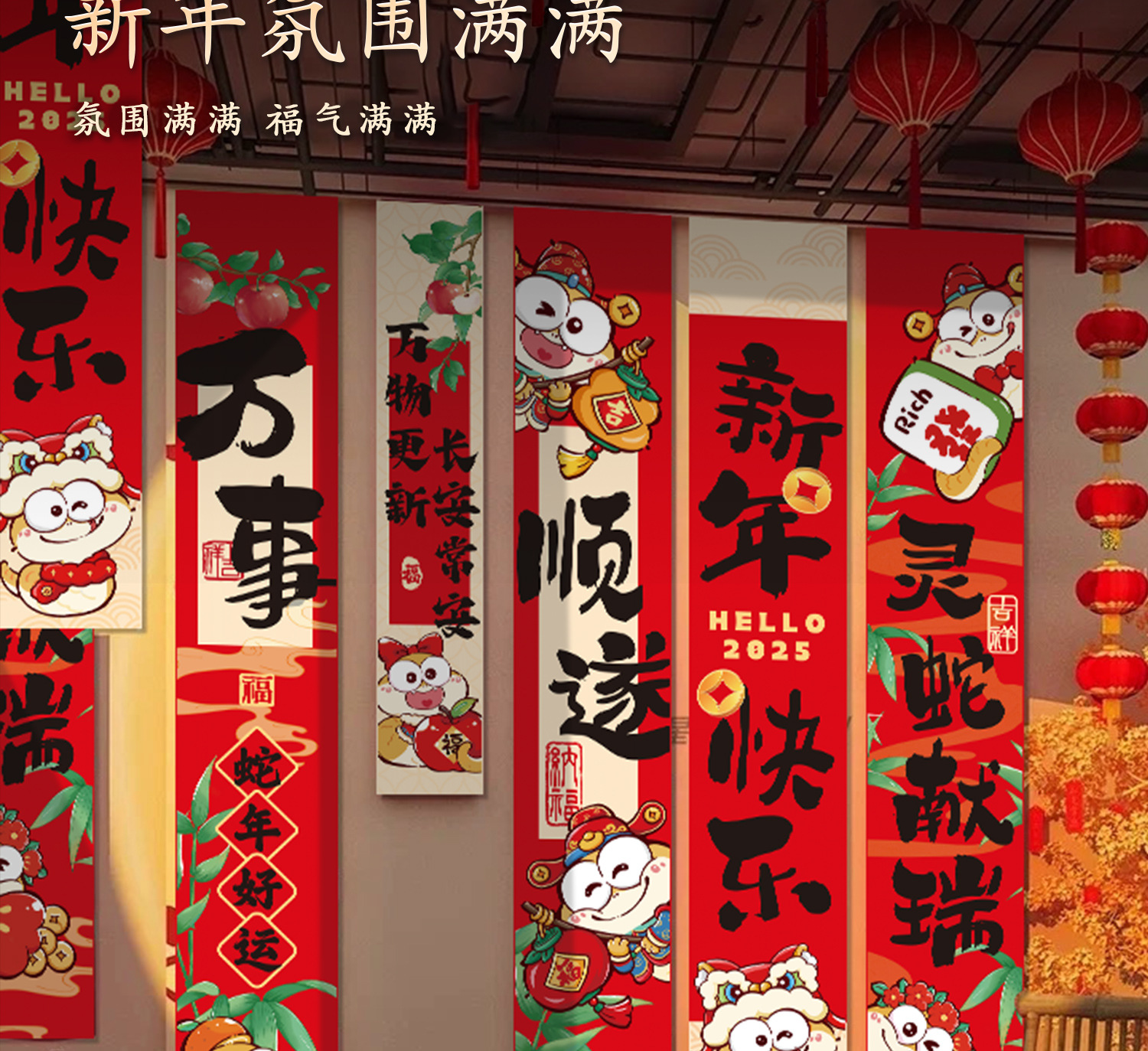 新年条幅挂件2025蛇年新款装饰品过年春节商场场景布置背景墙挂饰