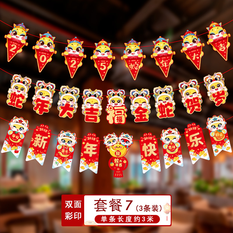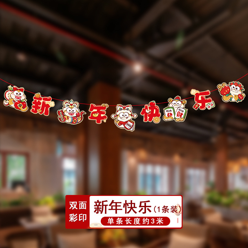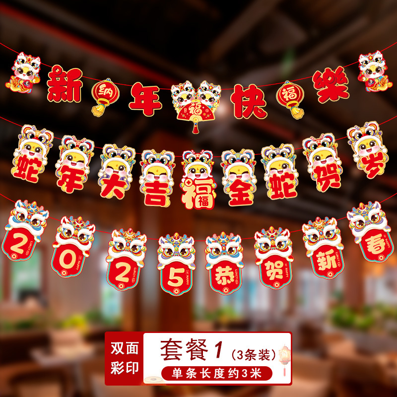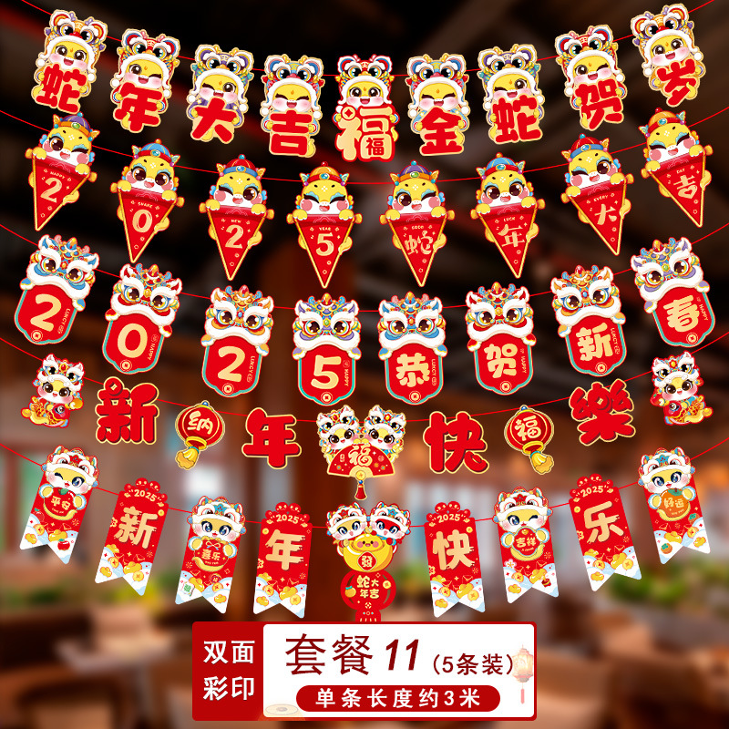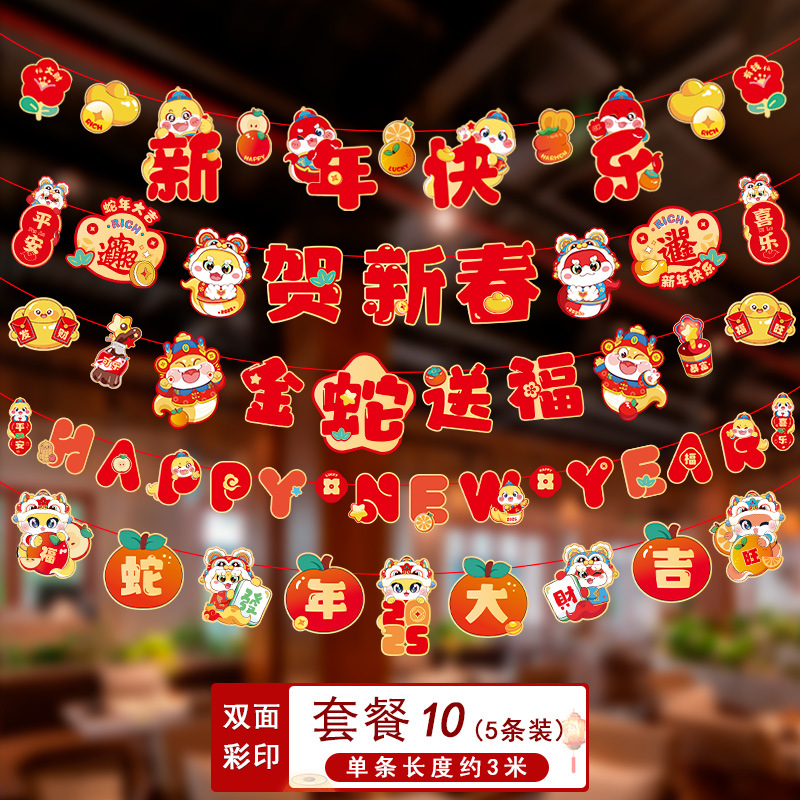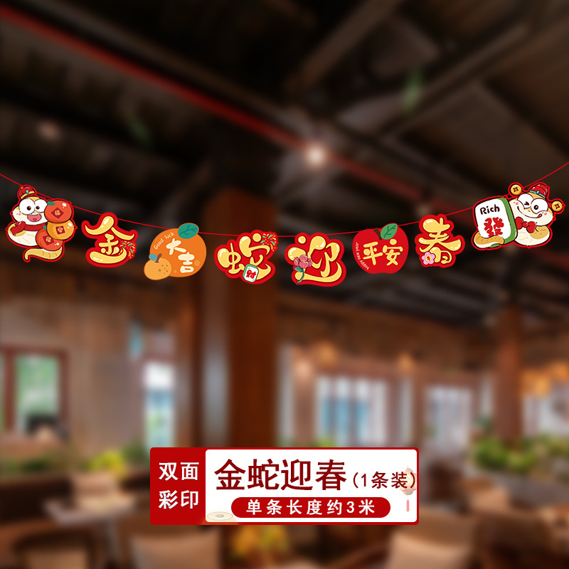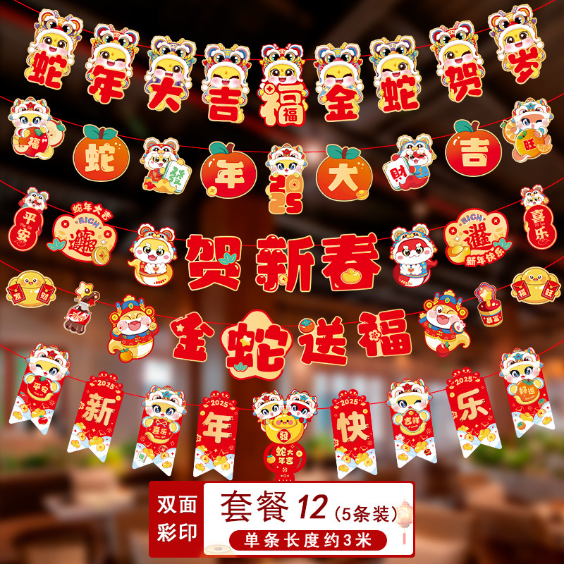 新年拉旗2025新款春节幼儿园商场店铺气氛场景布置装饰品蛇年挂件
