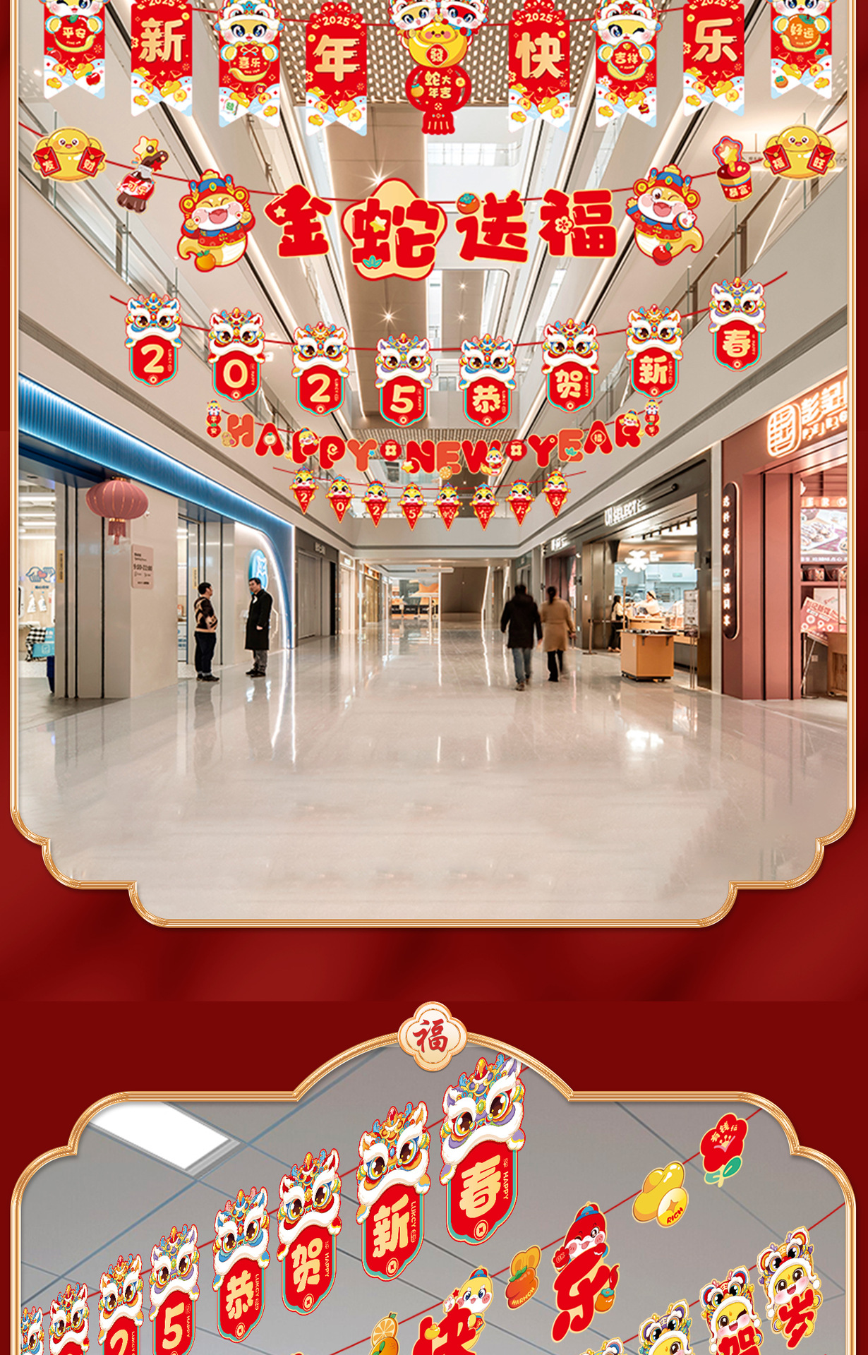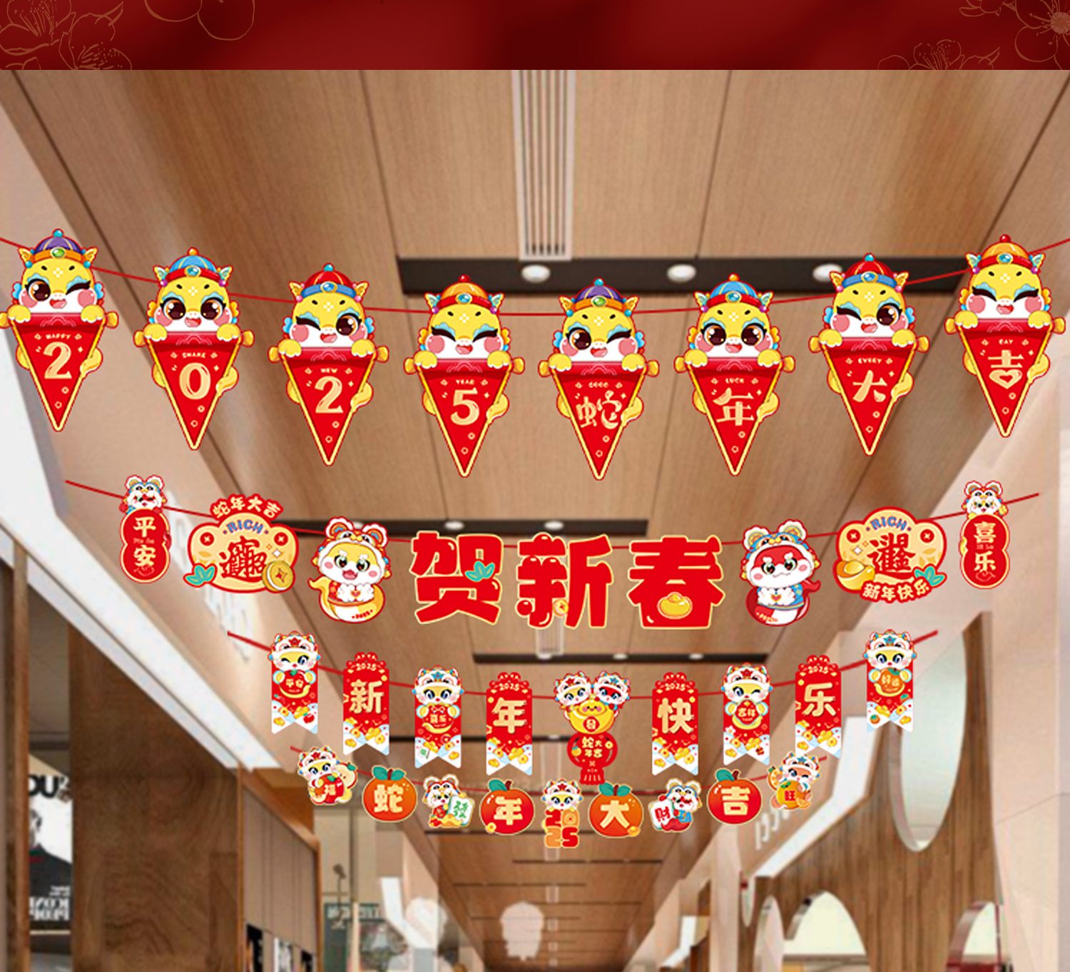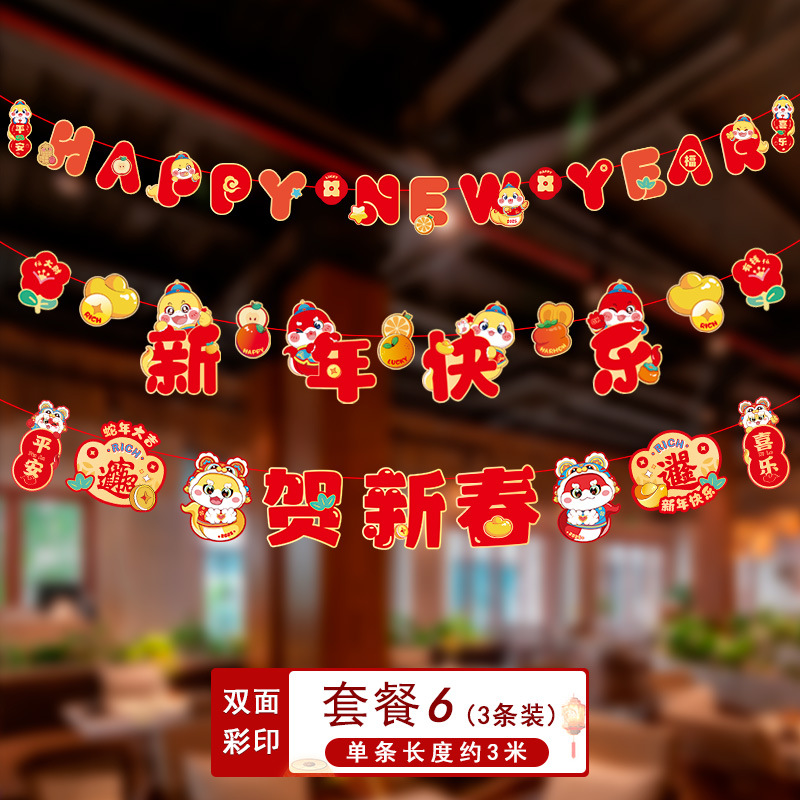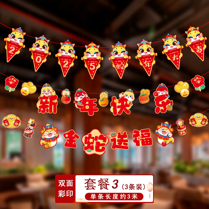 新年拉旗2025新款春节幼儿园商场店铺气氛场景布置装饰品蛇年挂件