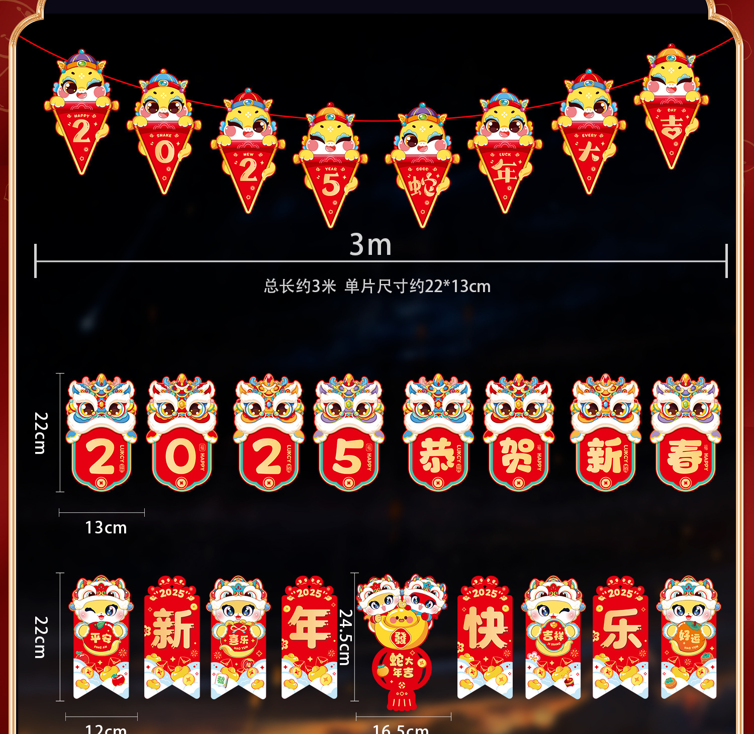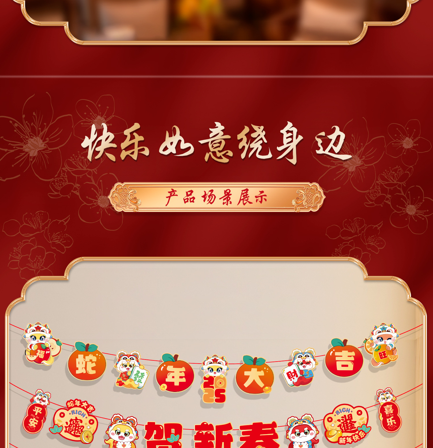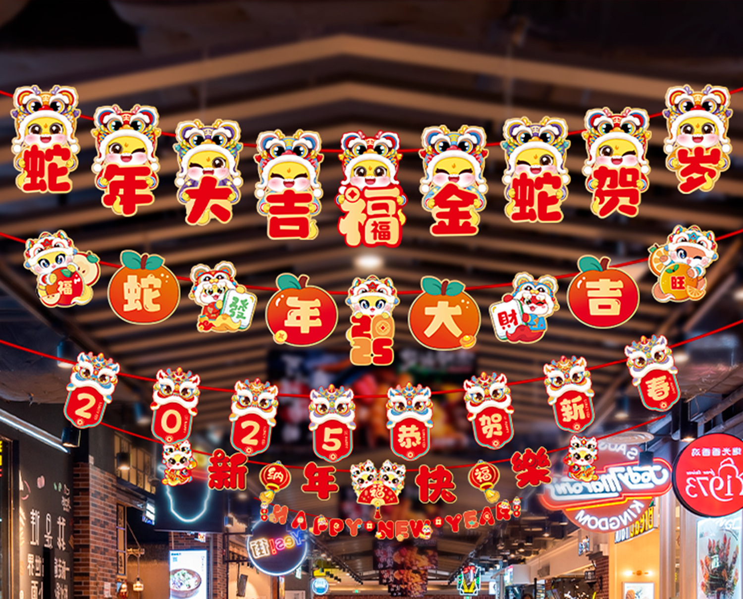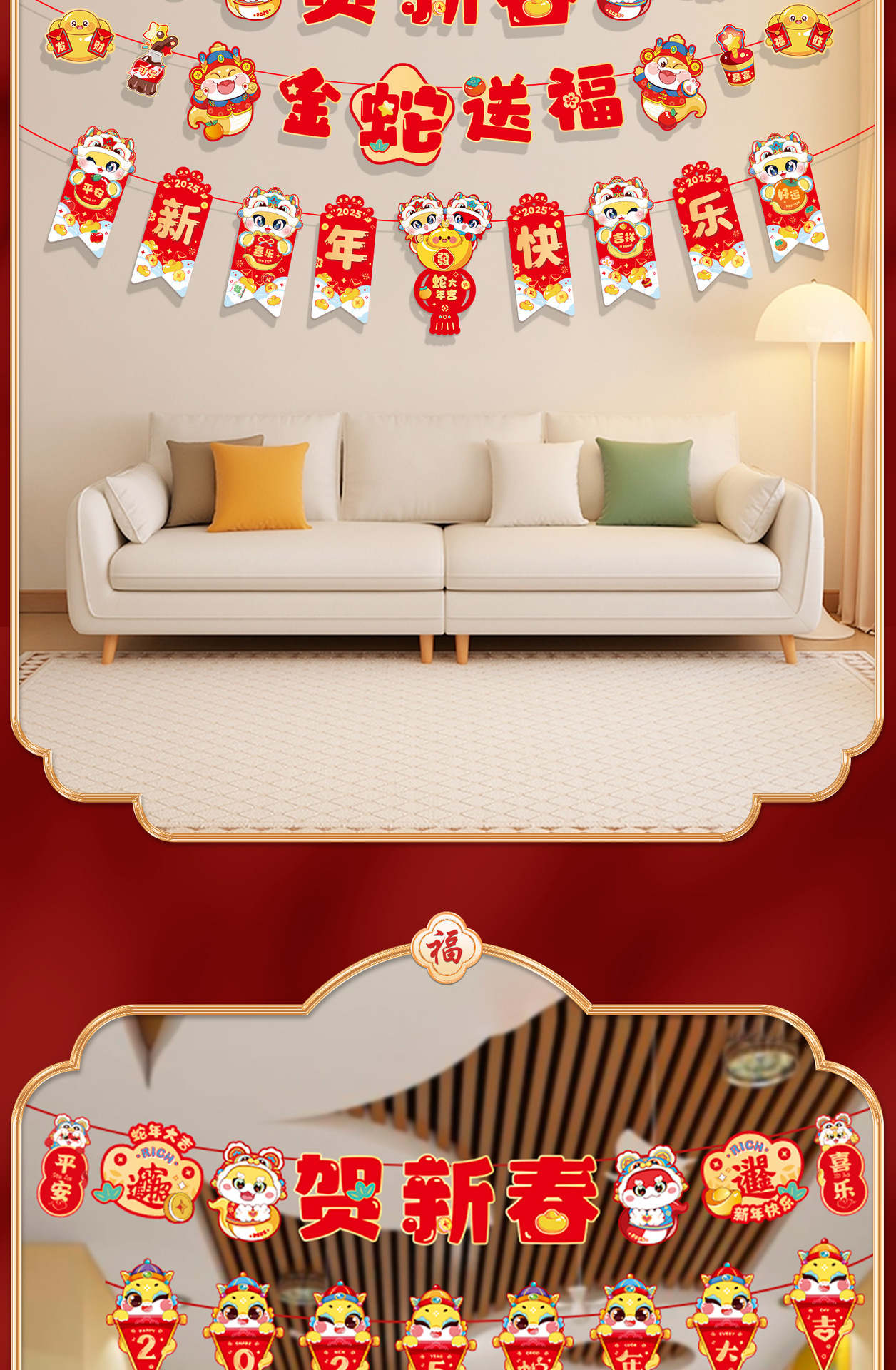 新年拉旗2025新款春节幼儿园商场店铺气氛场景布置装饰品蛇年挂件