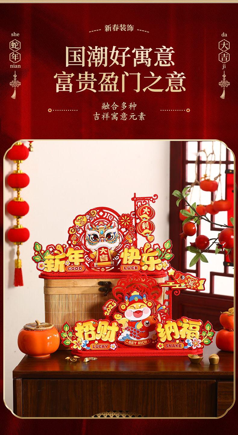 2025新款蛇年氛围摆件新年客厅桌面装饰春节过年布置春节用品批发
