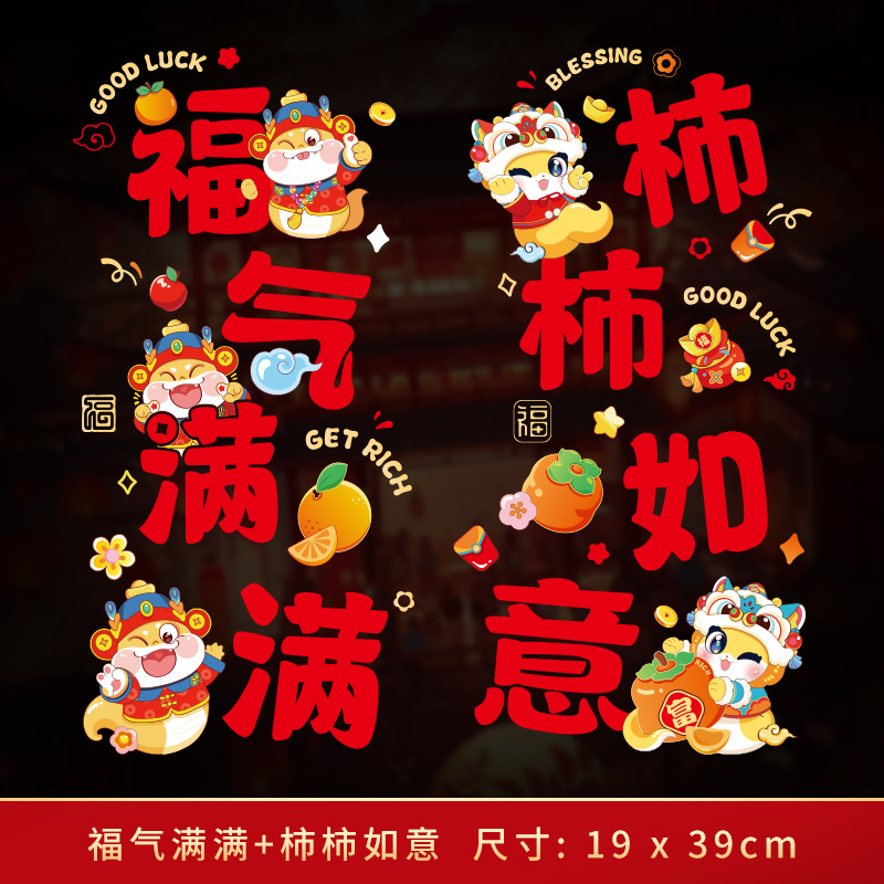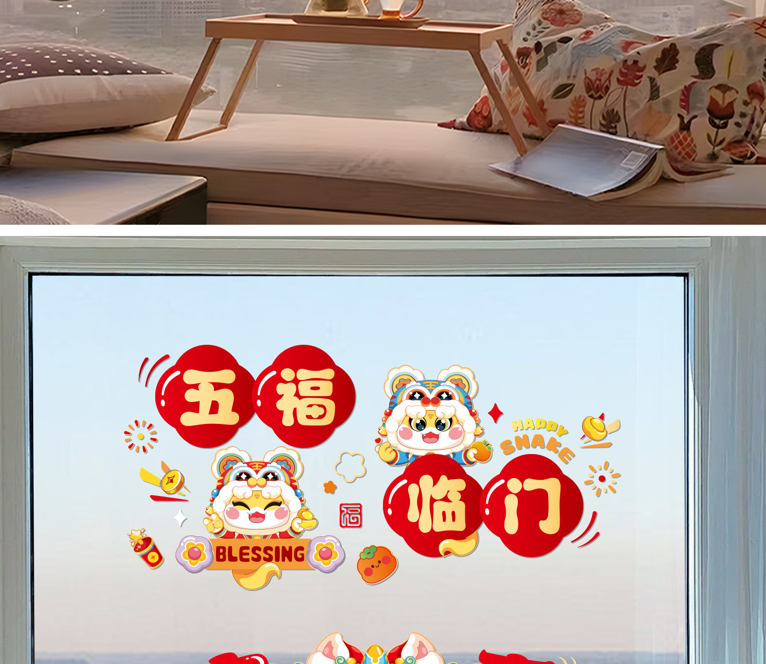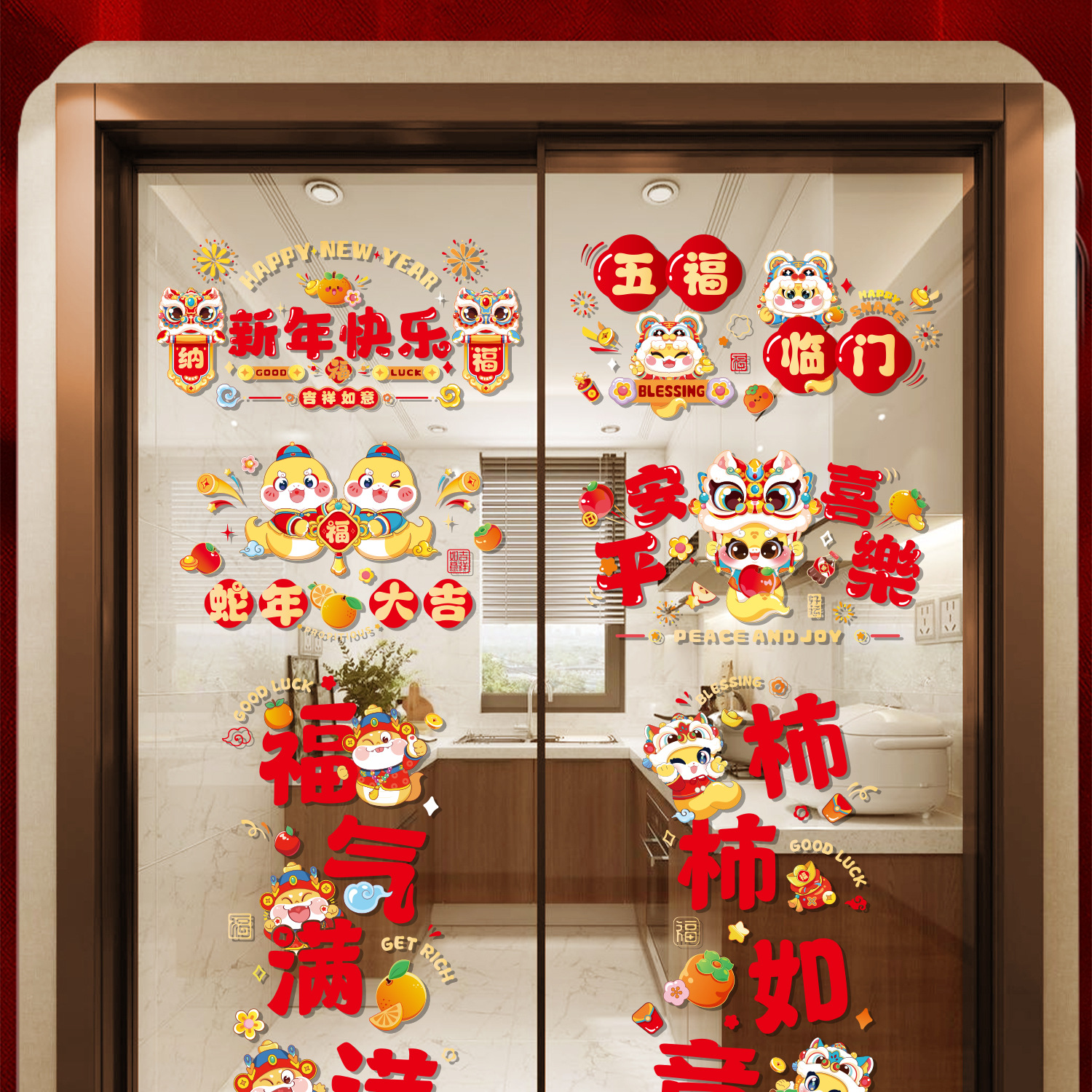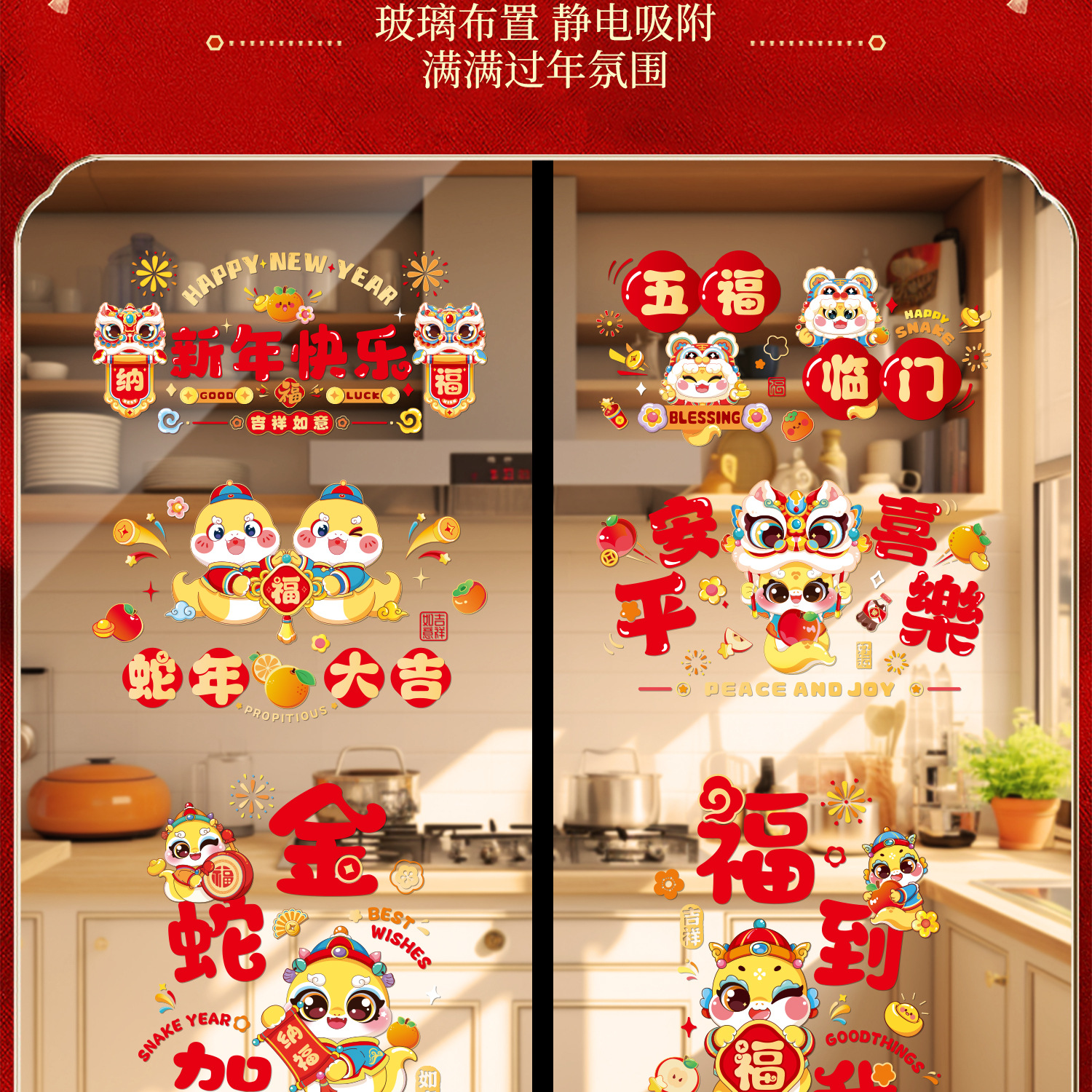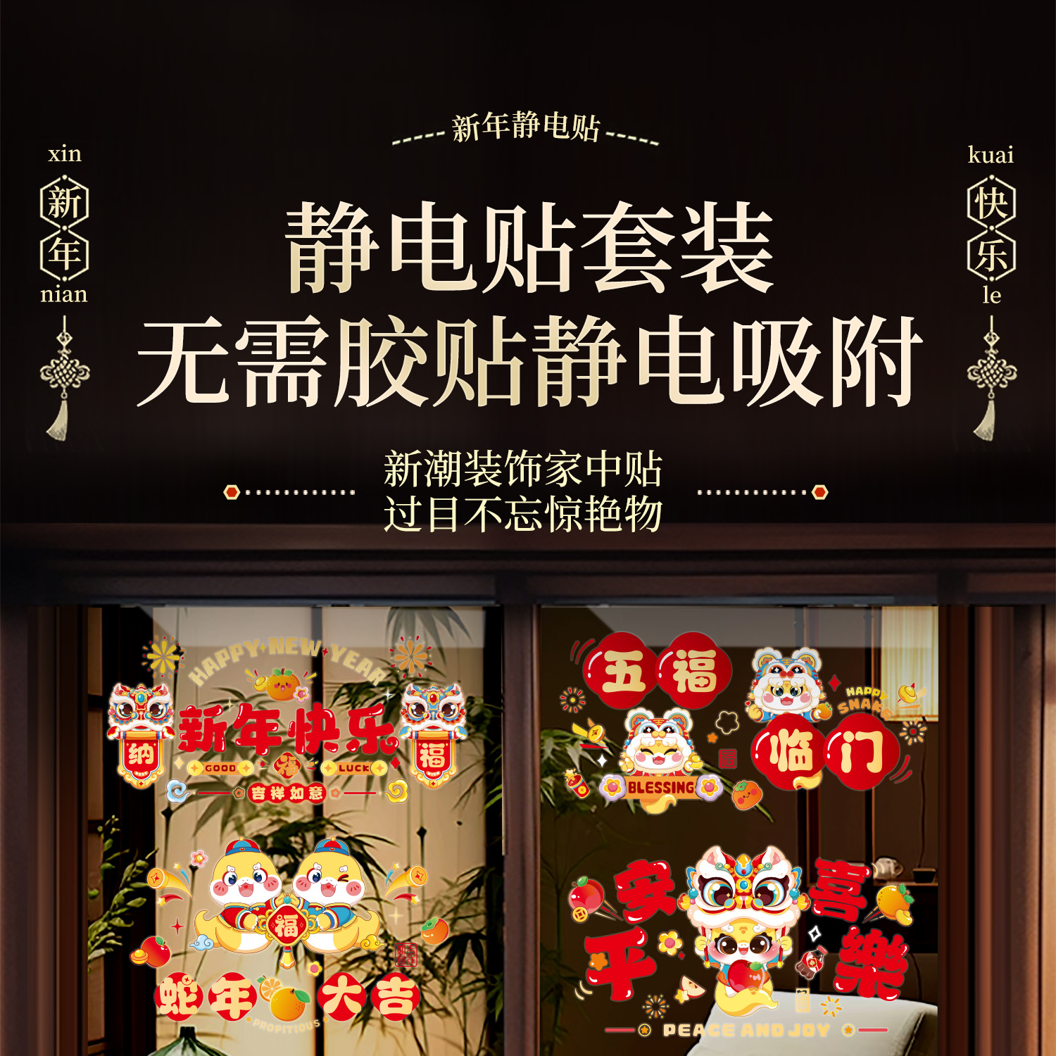 新年窗贴2025蛇年新款福字橱窗玻璃贴春节窗花静电贴过年门贴装饰