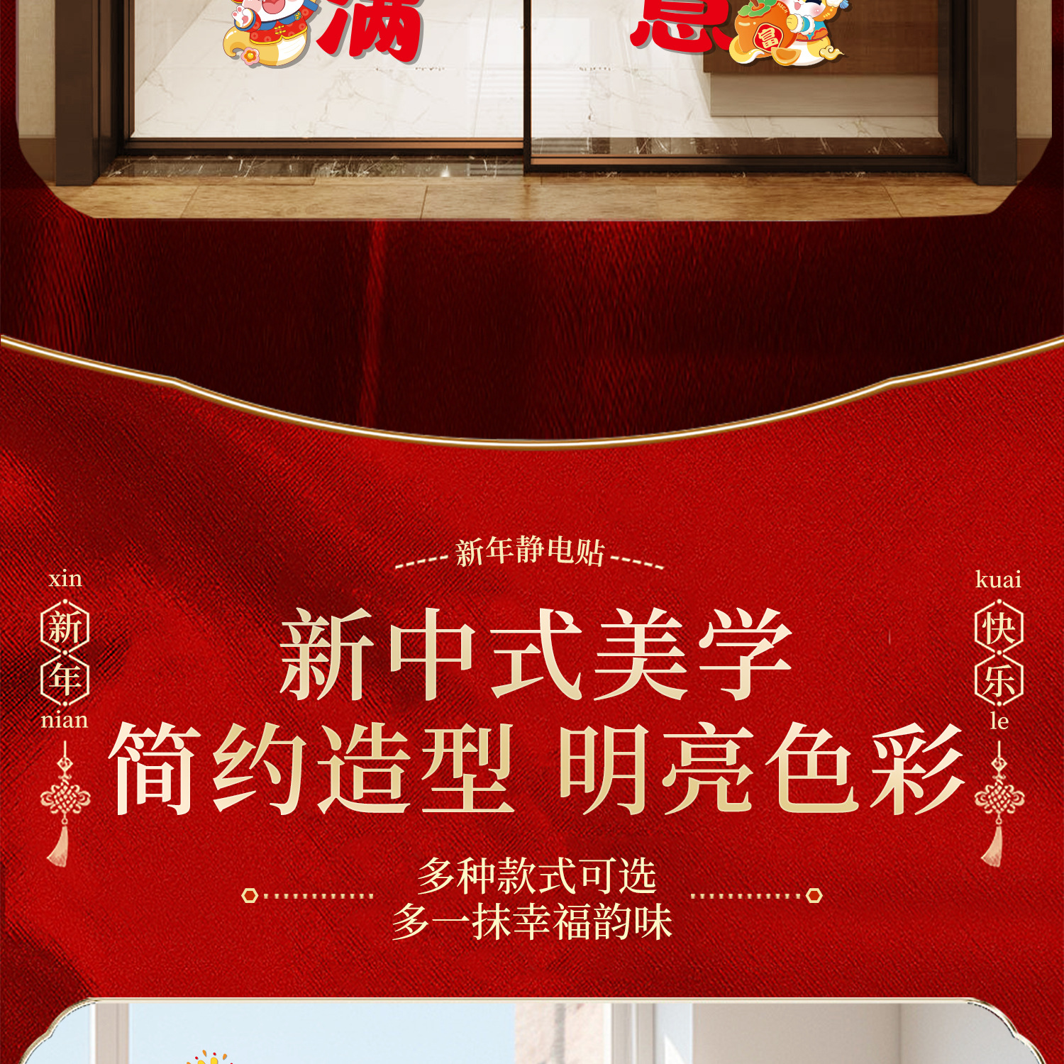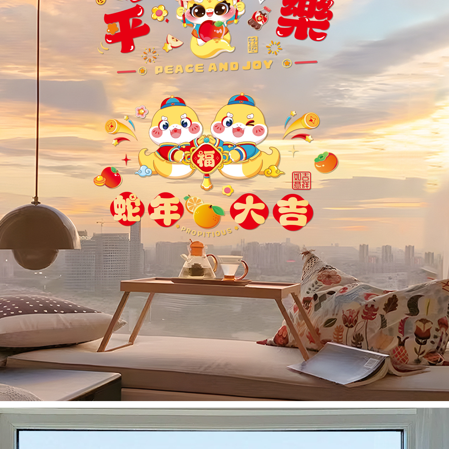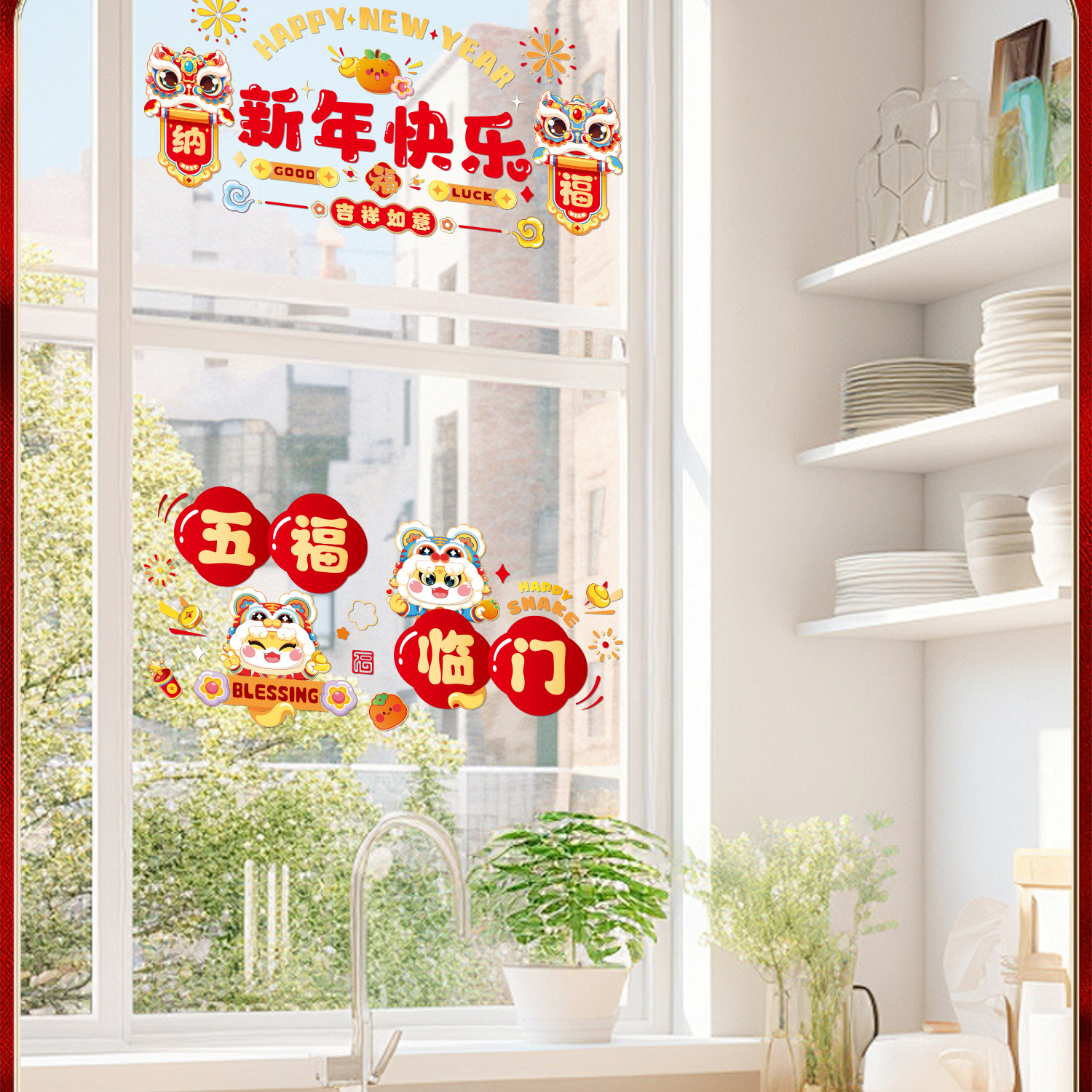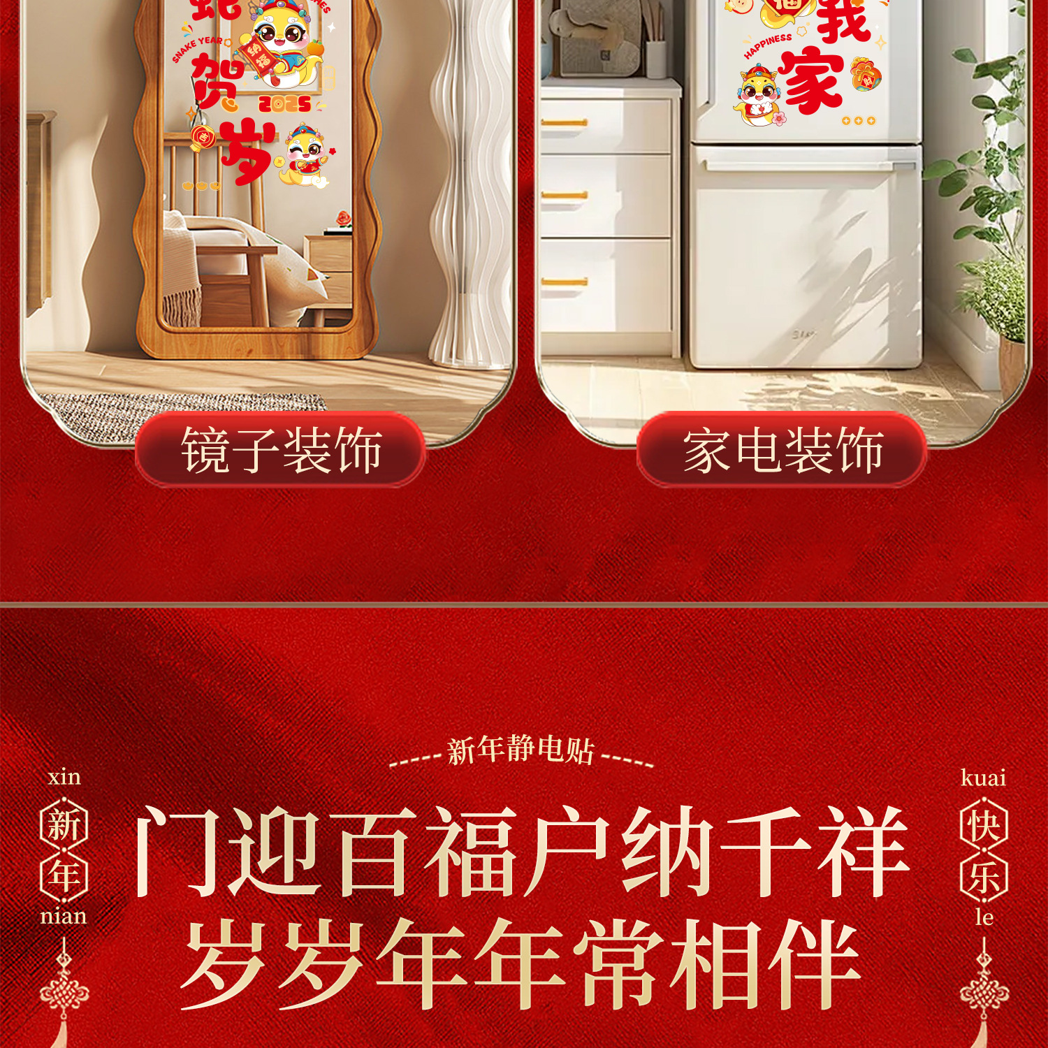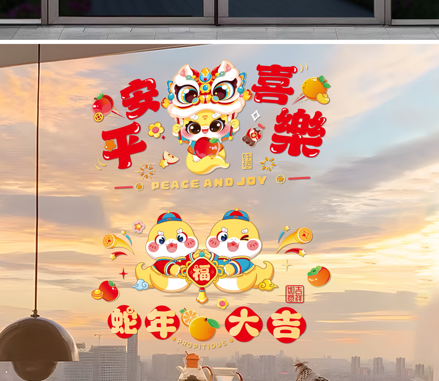 新年窗贴2025蛇年新款福字橱窗玻璃贴春节窗花静电贴过年门贴装饰