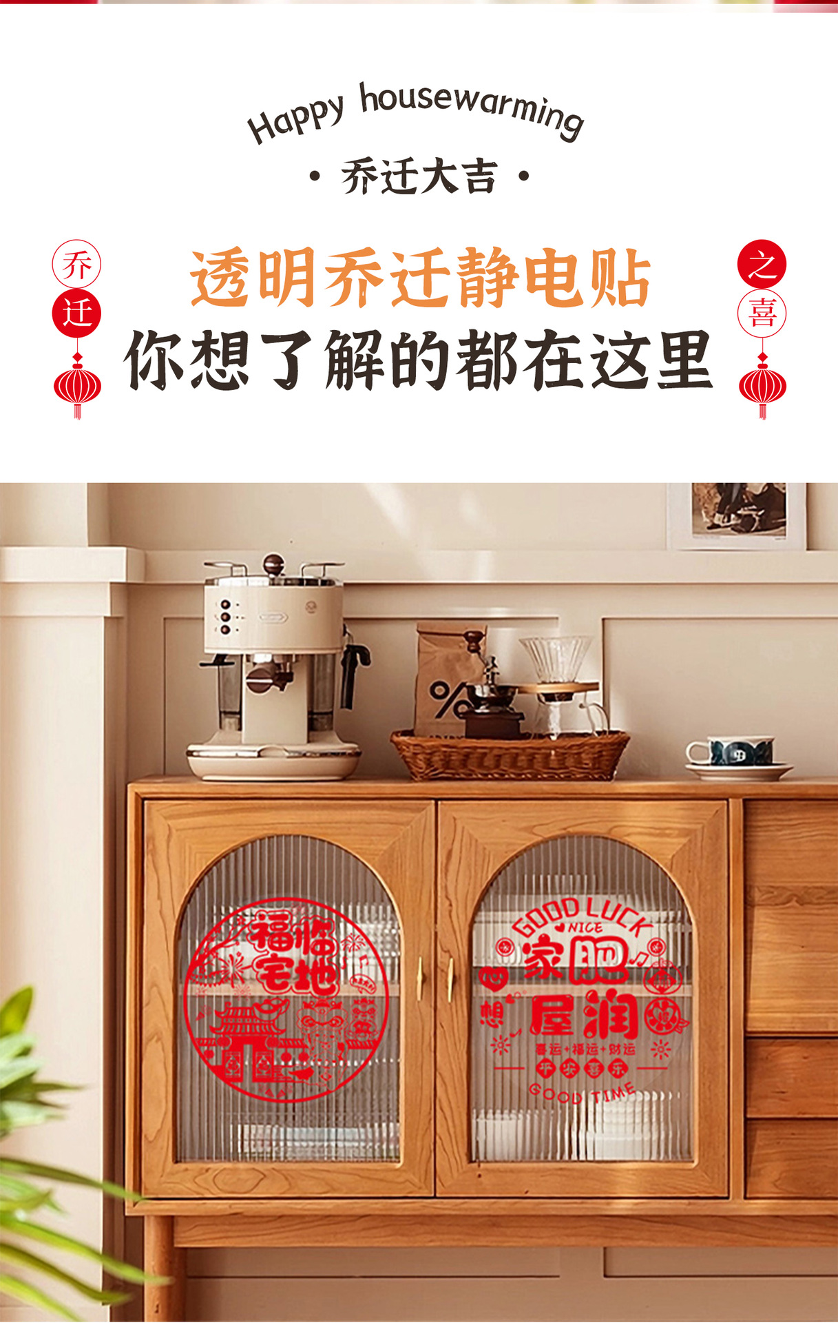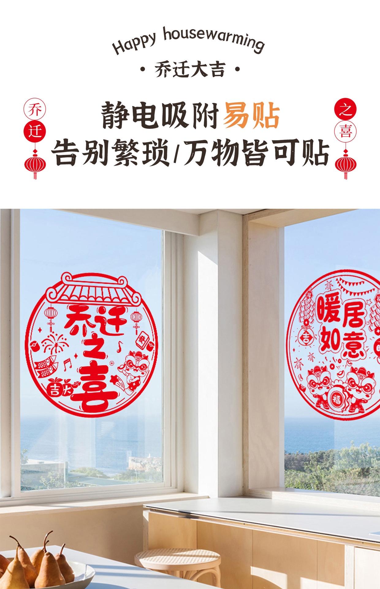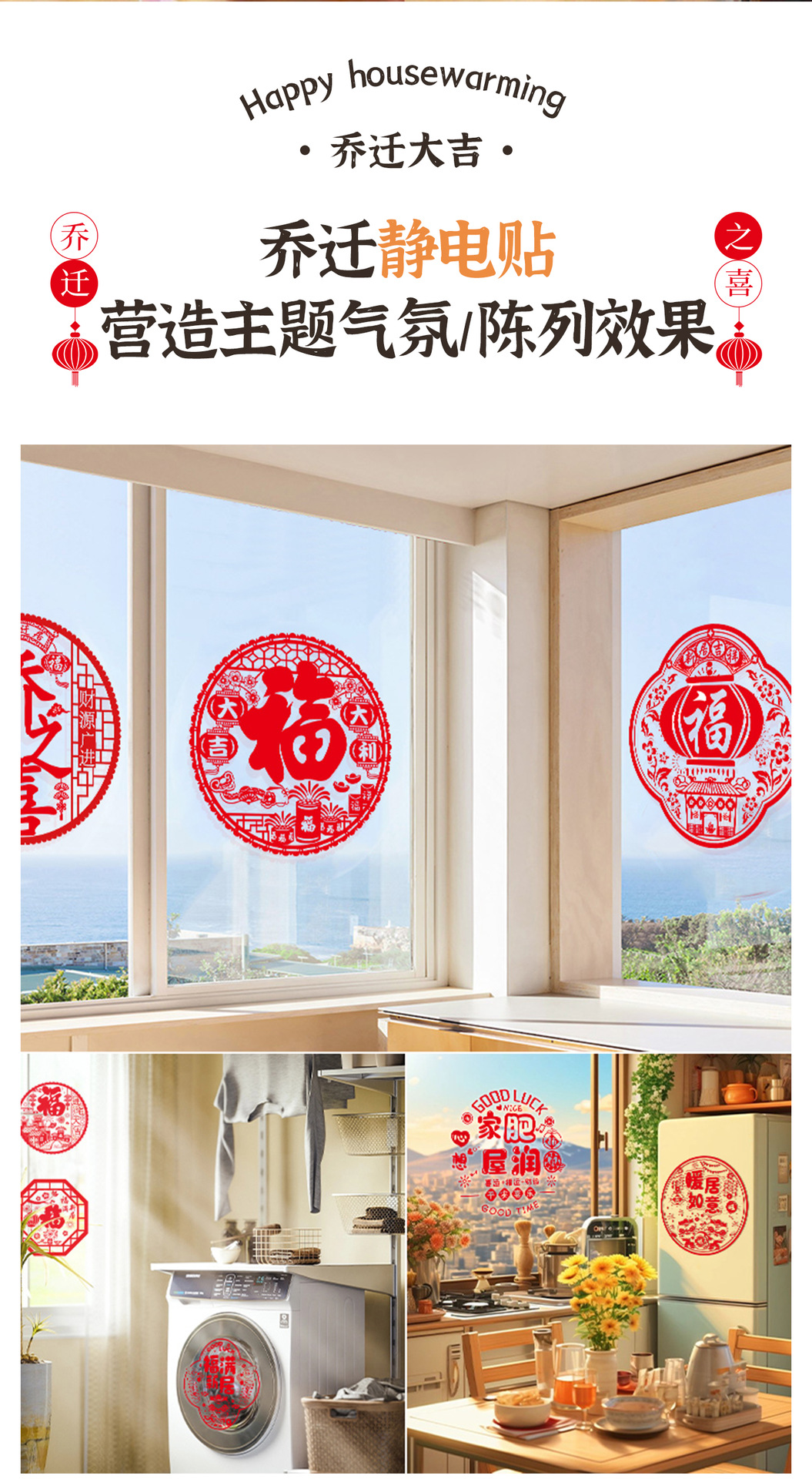乔迁之喜装饰玻璃静电贴新居布置搬家入宅仪式用品窗花纸窗贴门贴