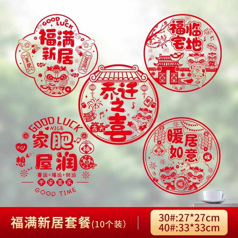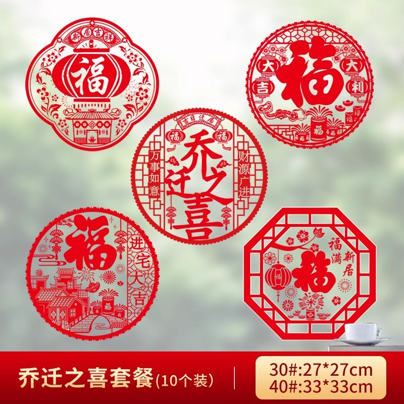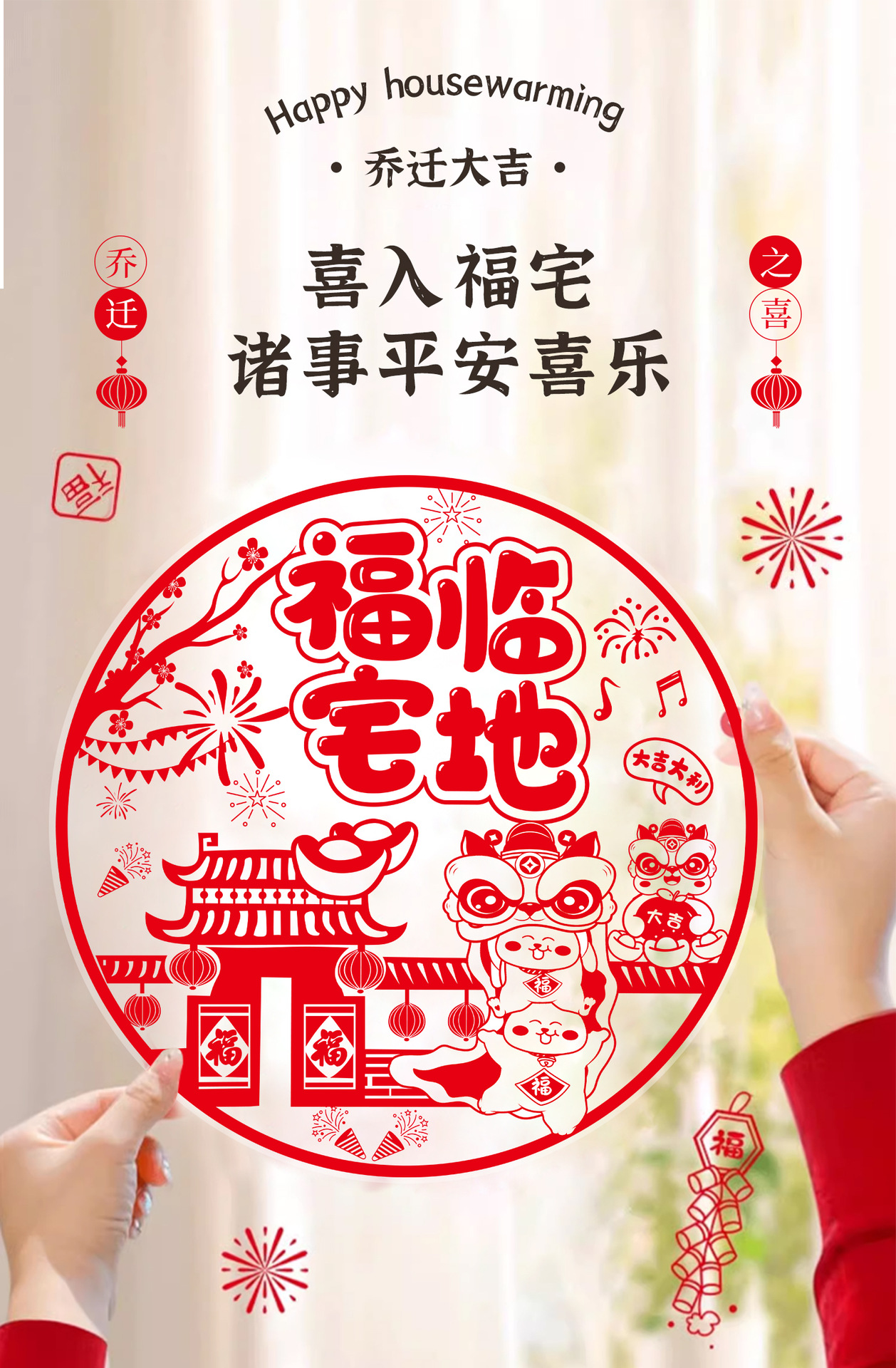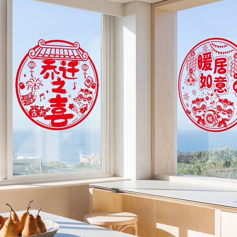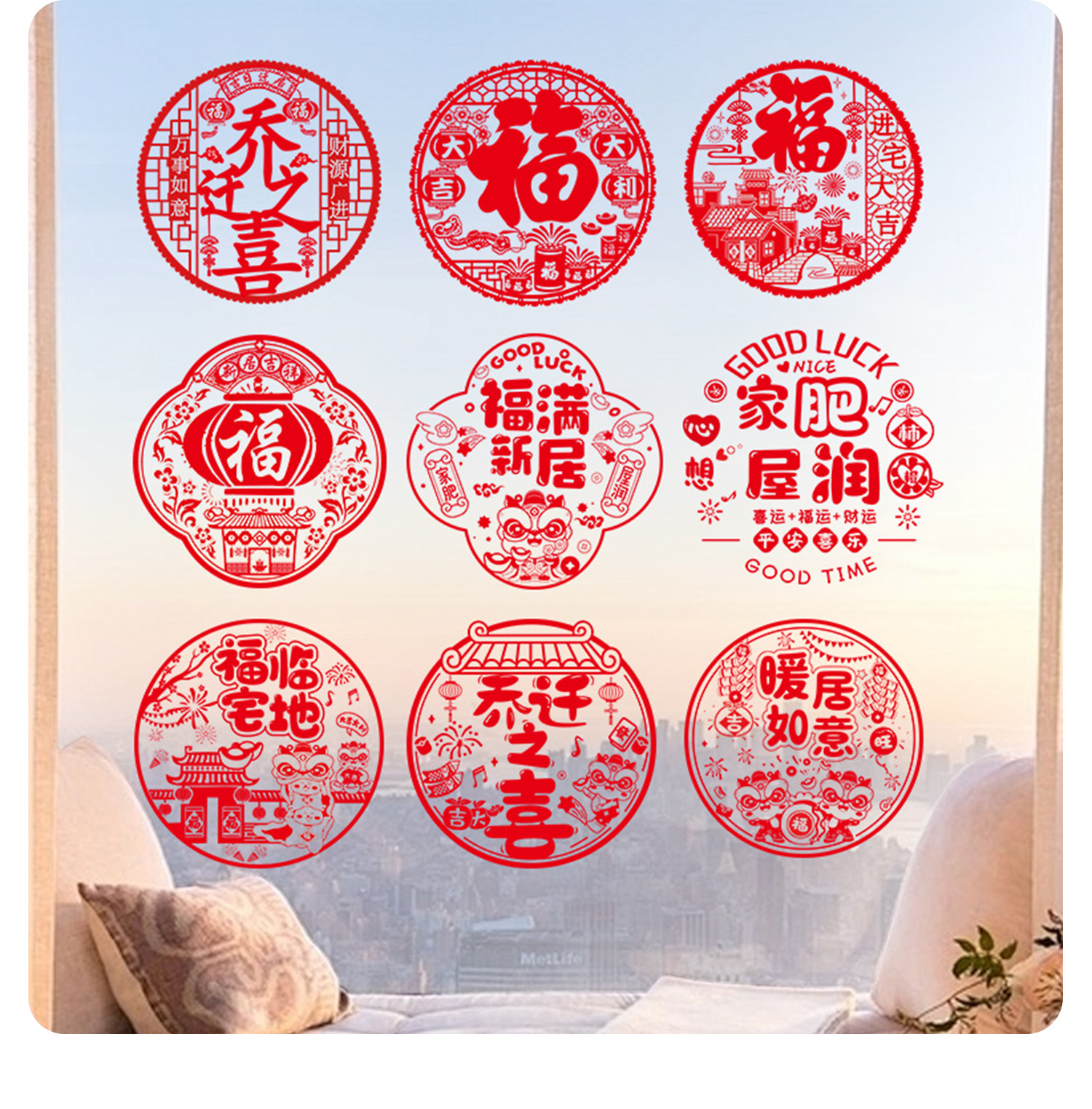 乔迁之喜装饰玻璃静电贴新居布置搬家入宅仪式用品窗花纸窗贴门贴