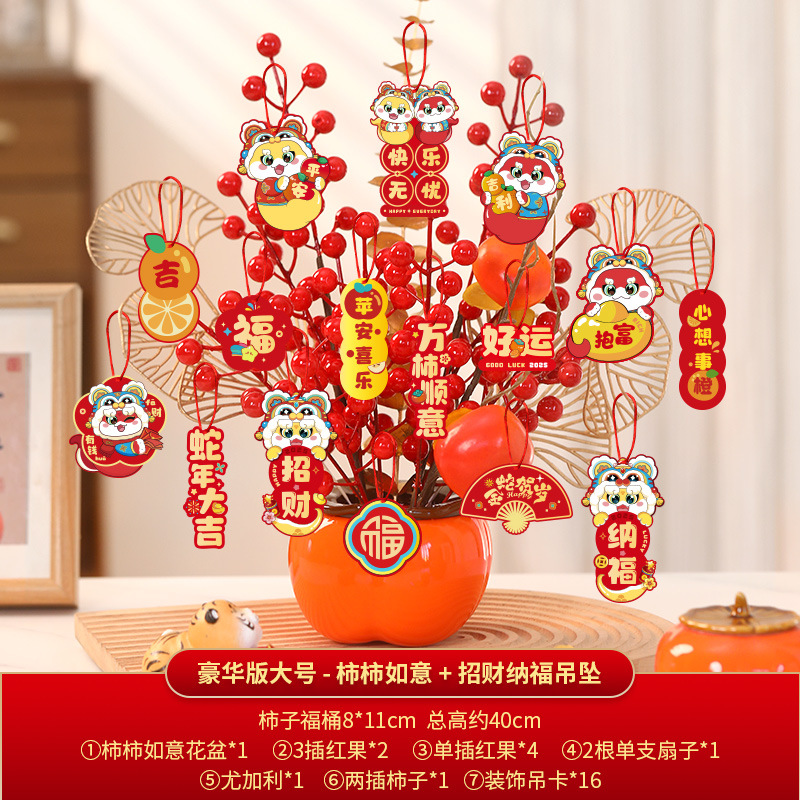 2025蛇年新款新年发财果装饰品玄关客厅桌面柿柿如意摆件春节用品