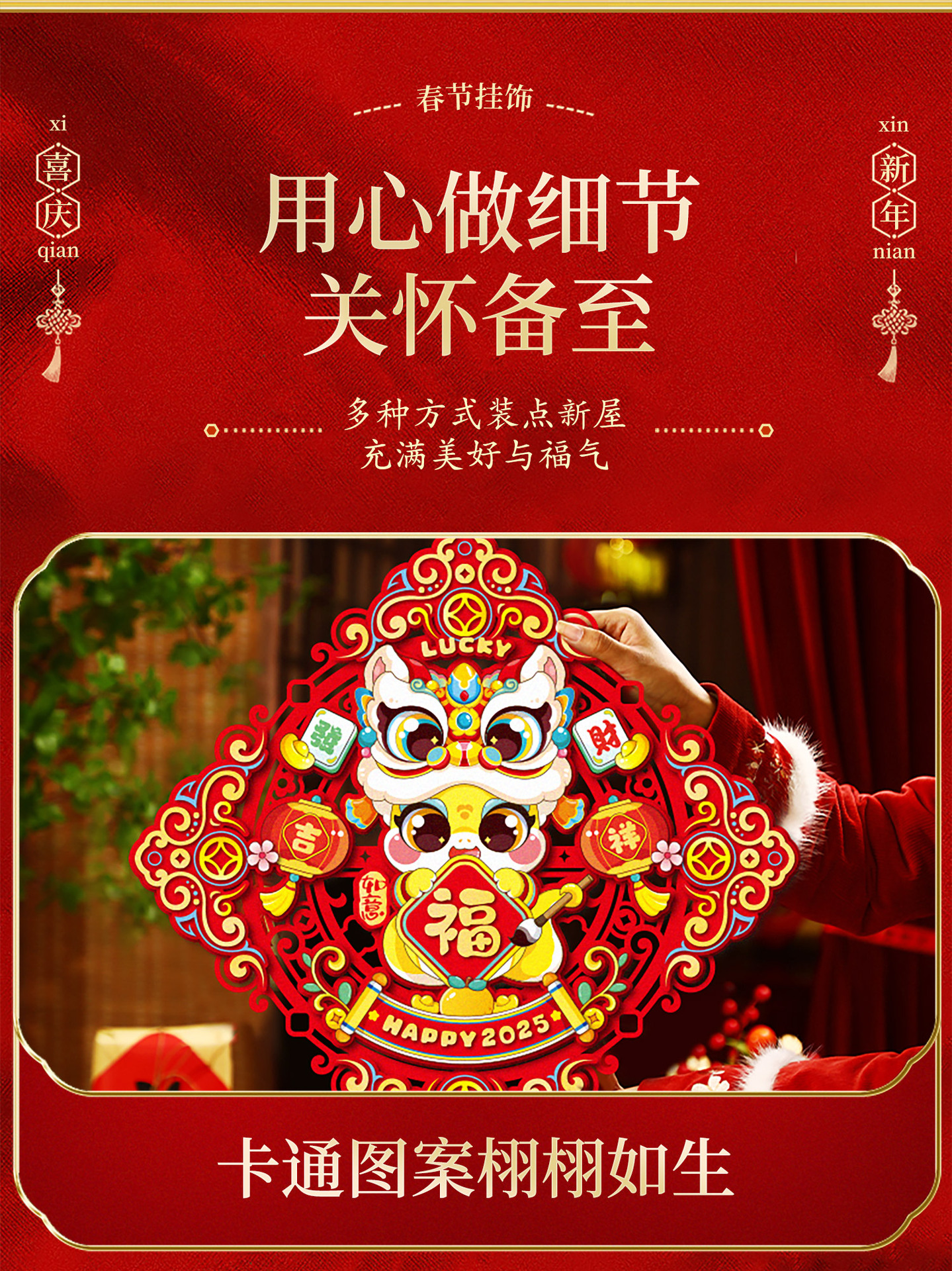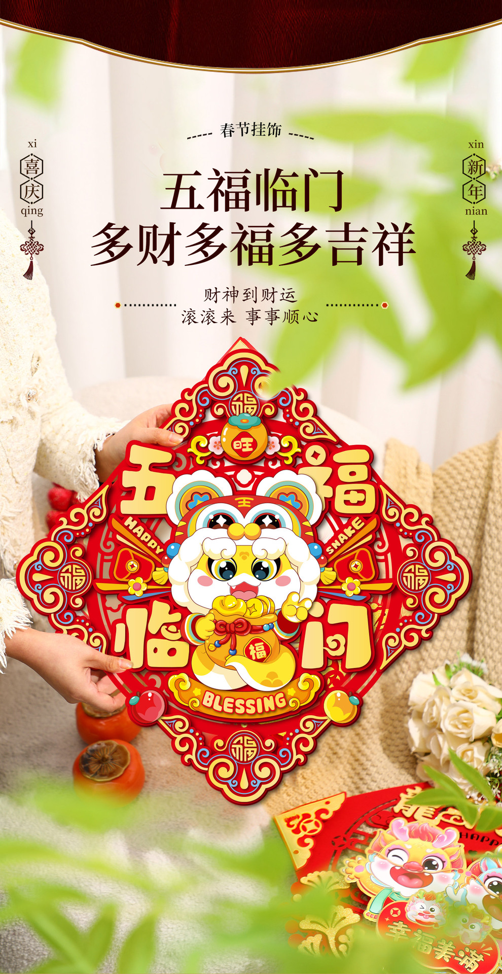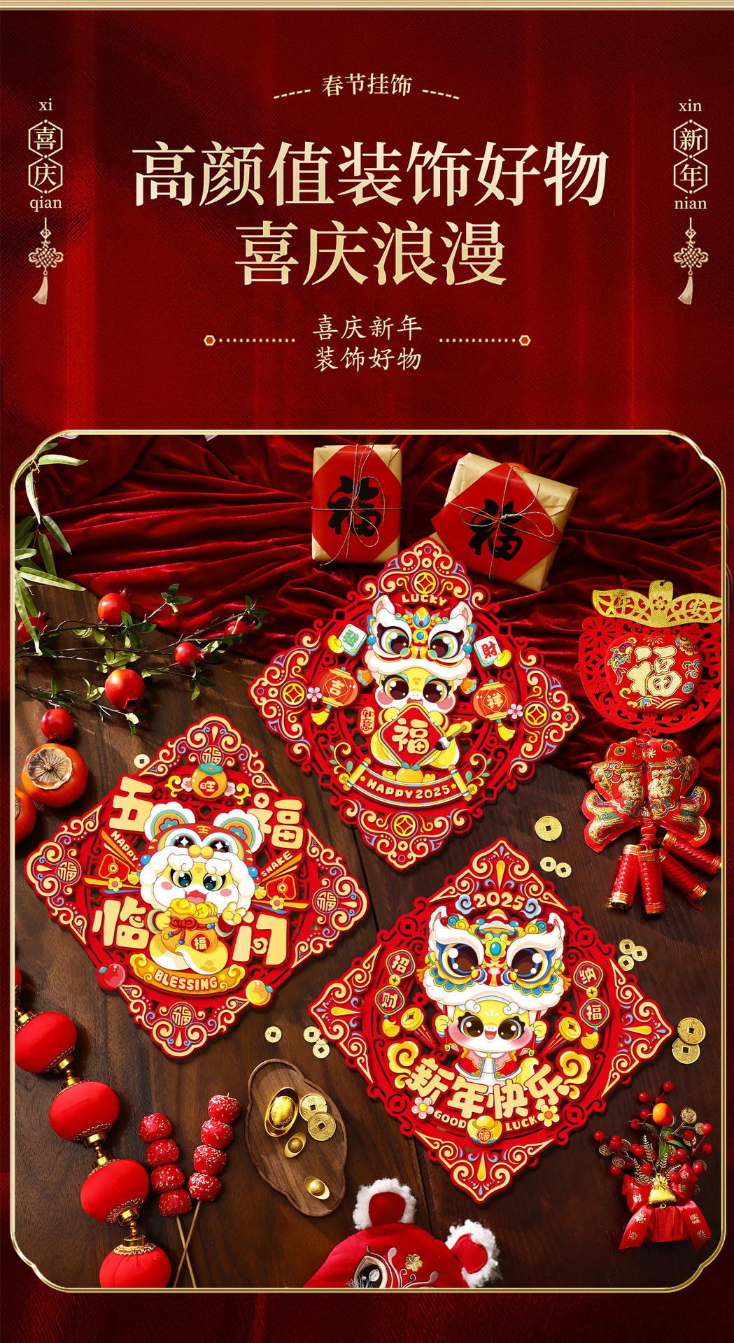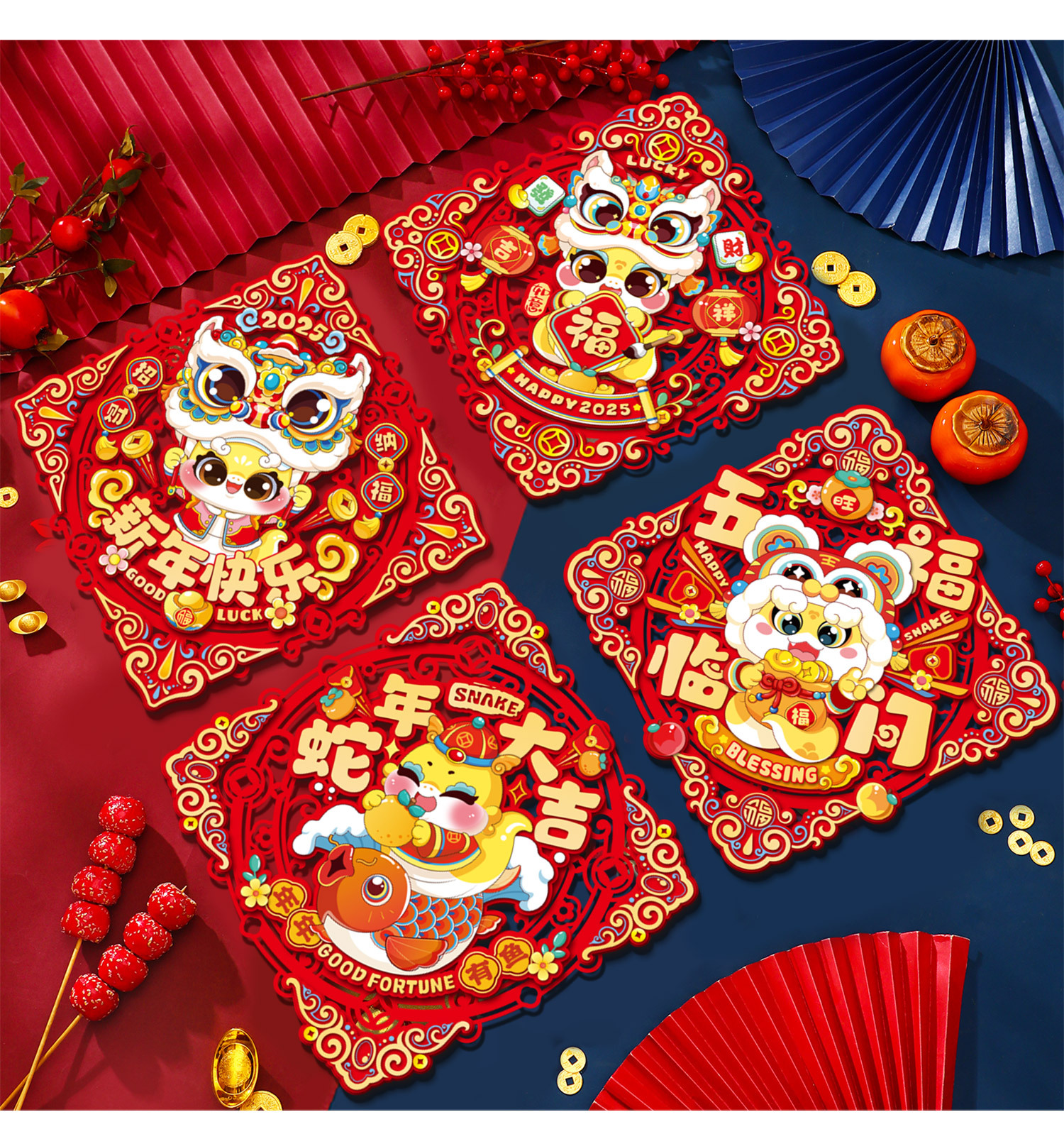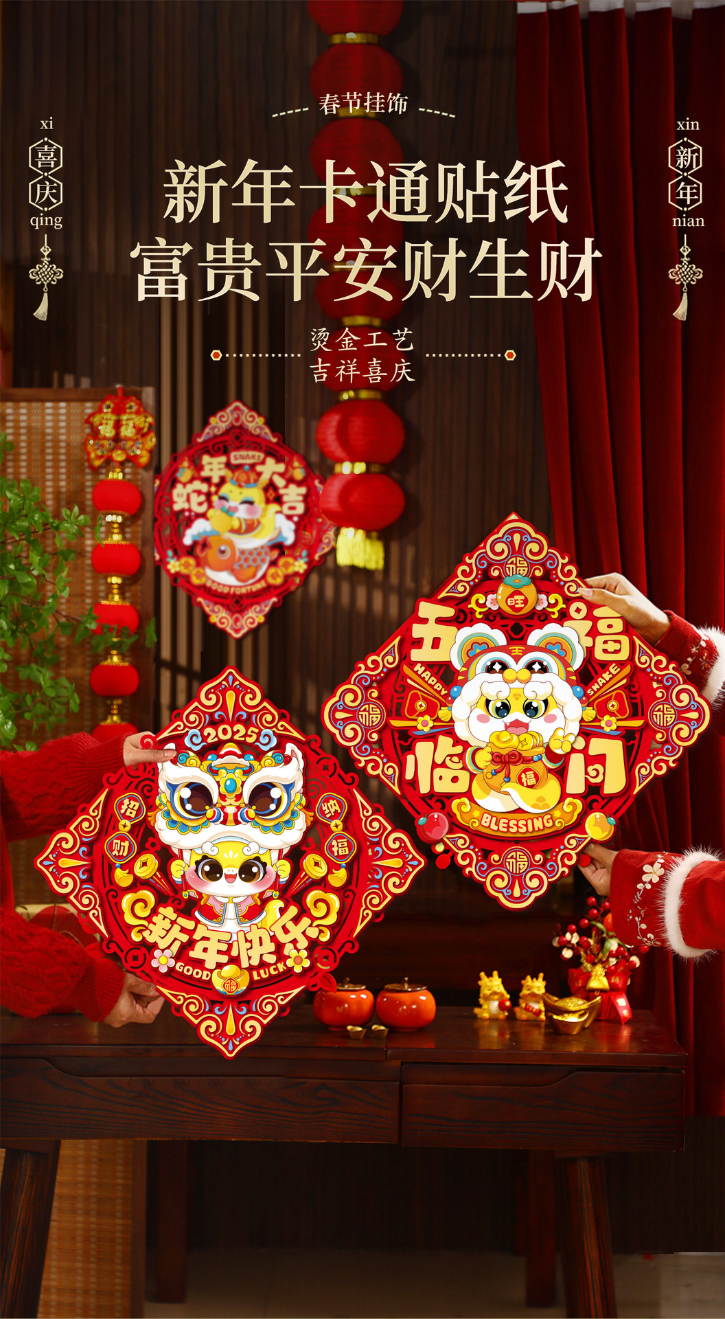 新年福贴2025新款蛇年卡通立体入户大门贴福字春节过年装饰品批发