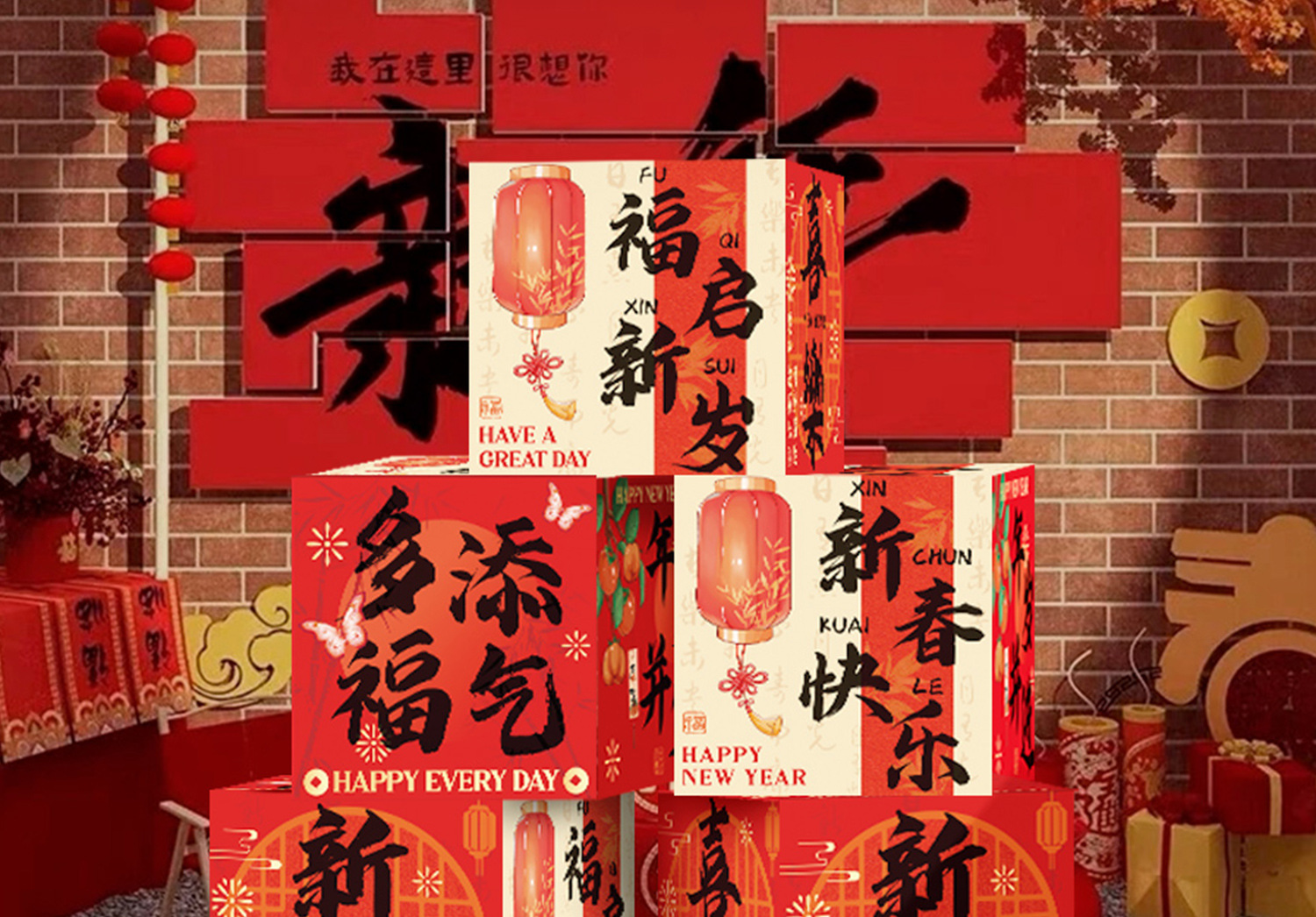 新年装饰品2025蛇年过年商场店铺场景气氛布置用品春节地堆盒摆件