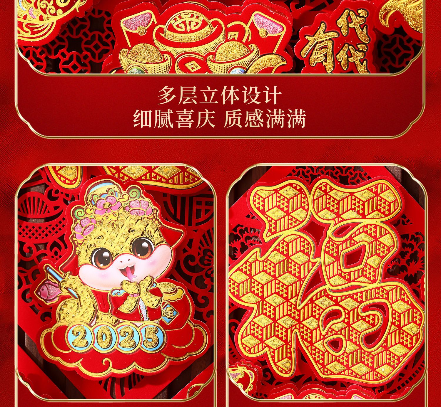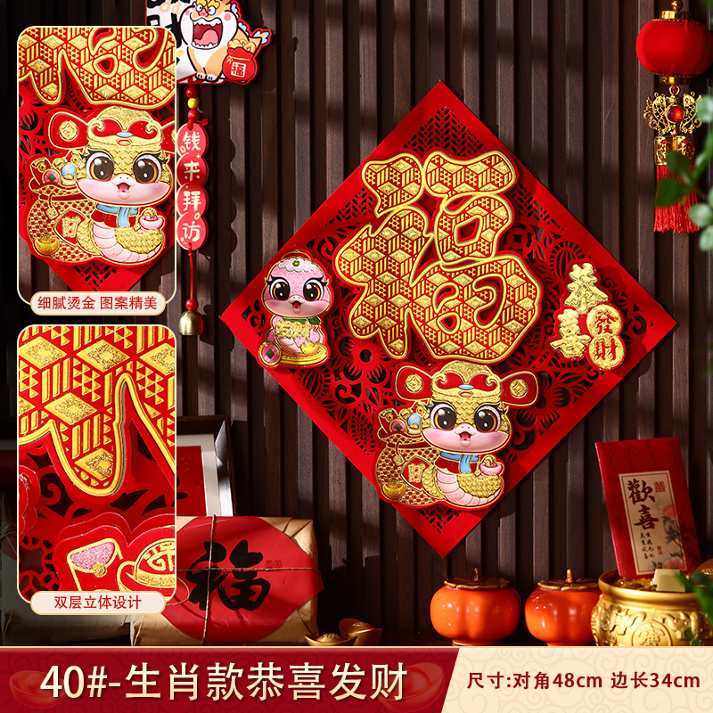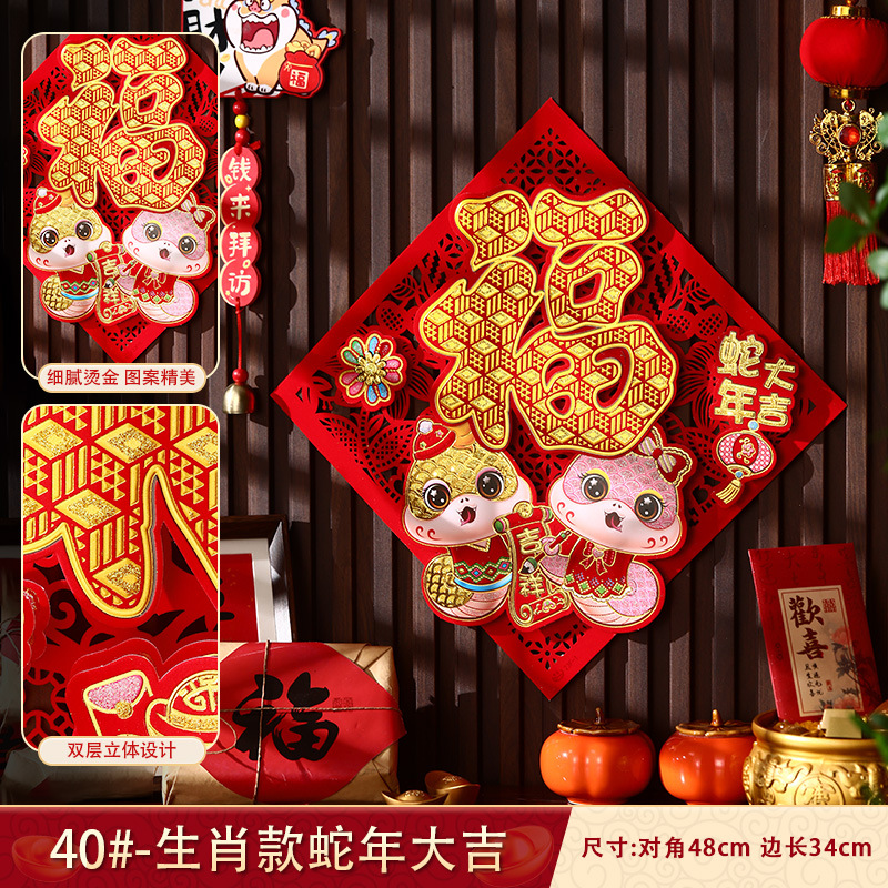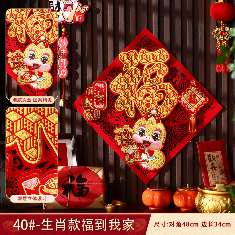 福字门贴2025新款蛇年生肖立体自粘福子新年春节装饰年画年货批发