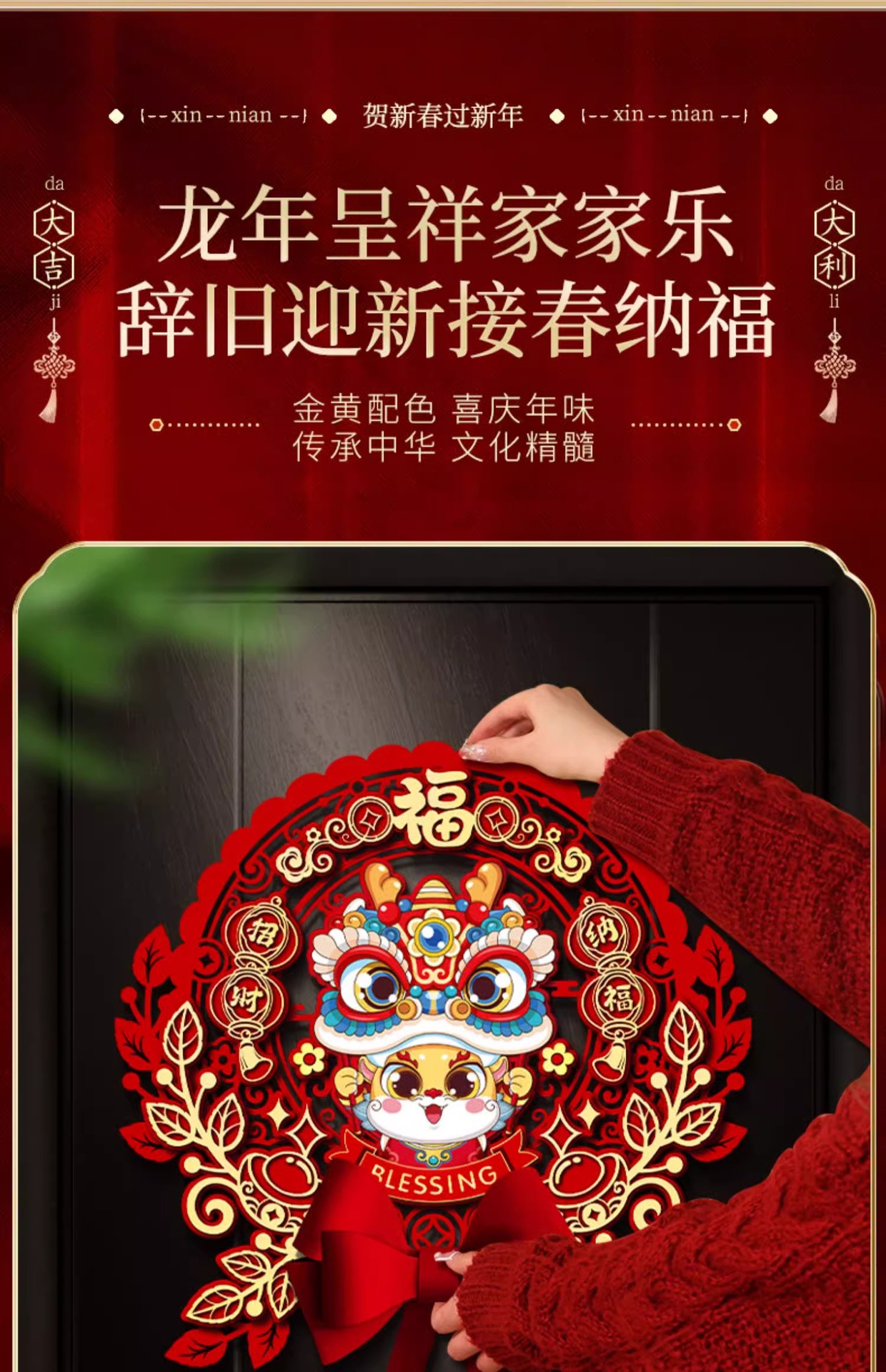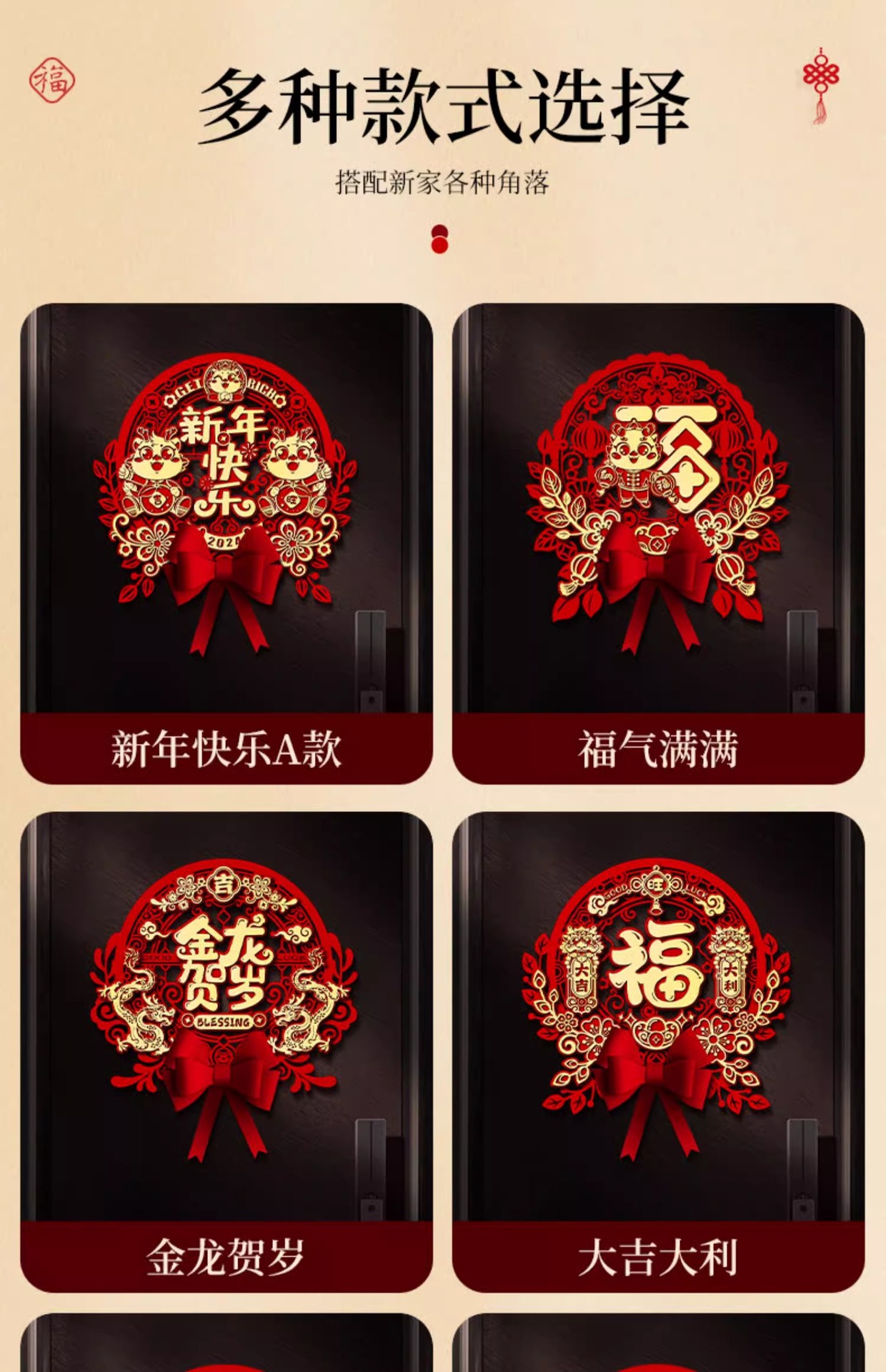 福字门贴2025蛇年新款春节立体大门窗花贴新年装饰品过年布置用品