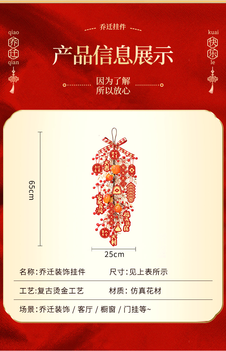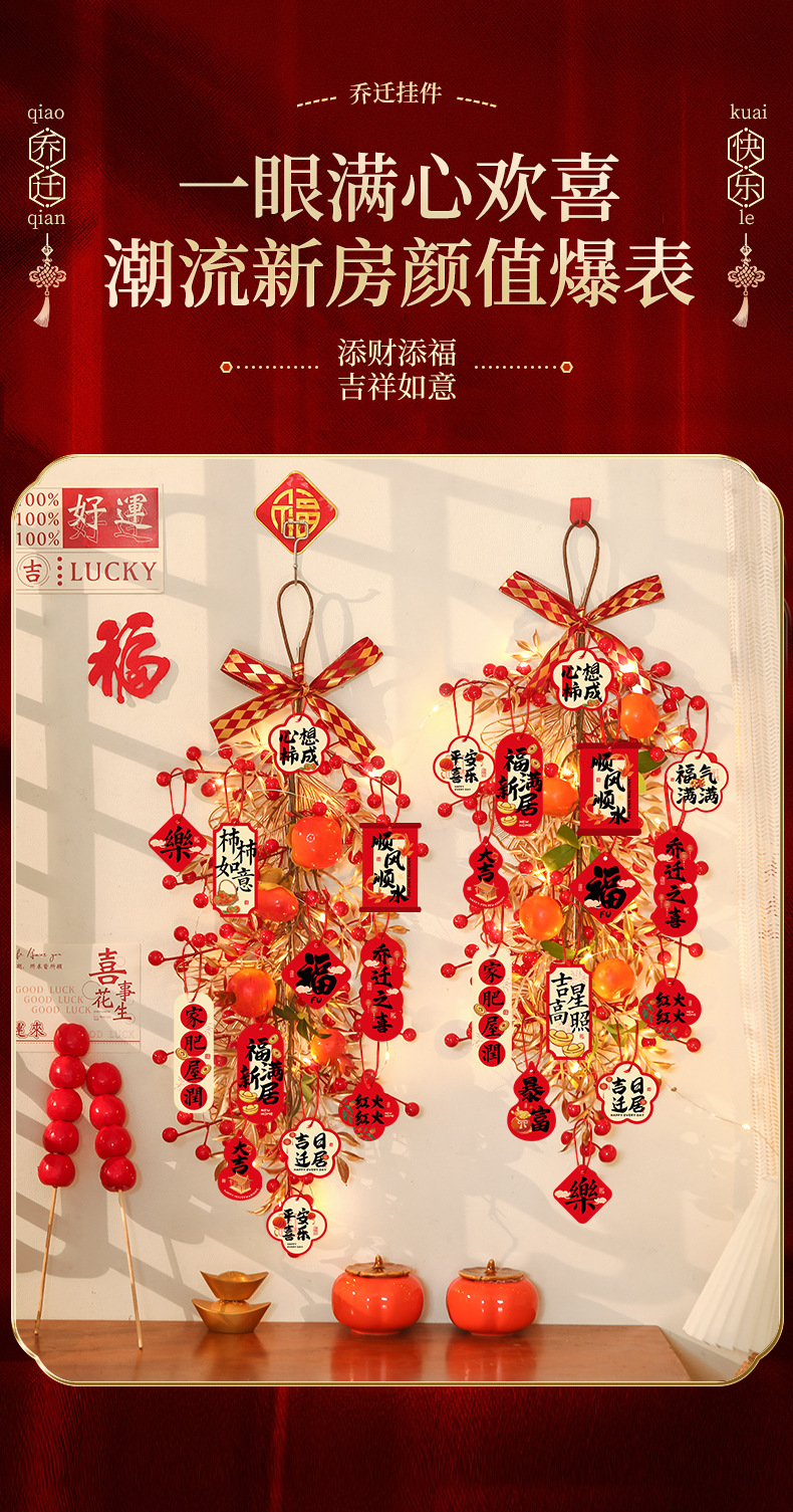 乔迁之喜挂件搬进新房装饰品新居客厅布置入宅仪式用品发财果挂饰