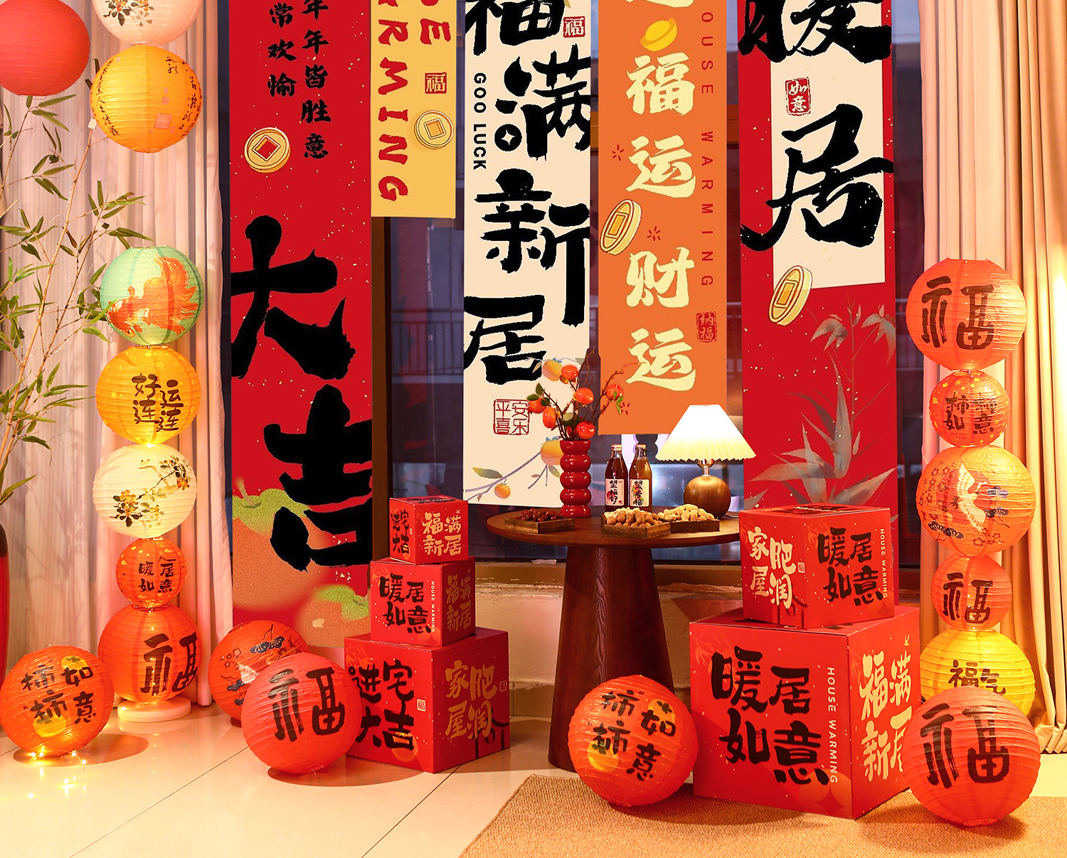 乔迁之喜搬进新房装饰新居布置挂布灯笼客厅搬家摆件入宅仪式用品