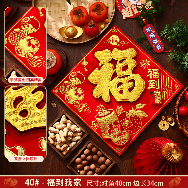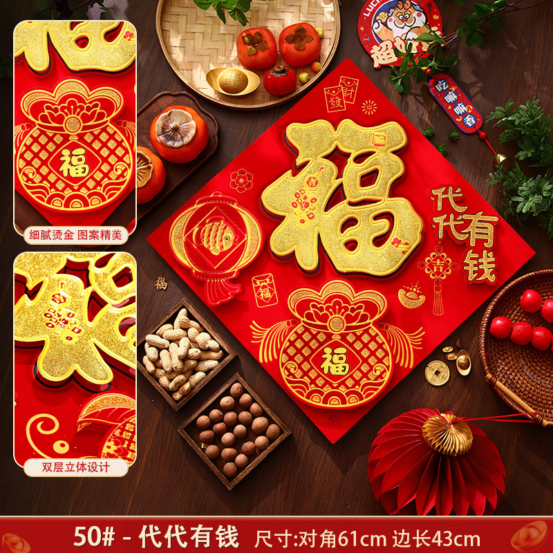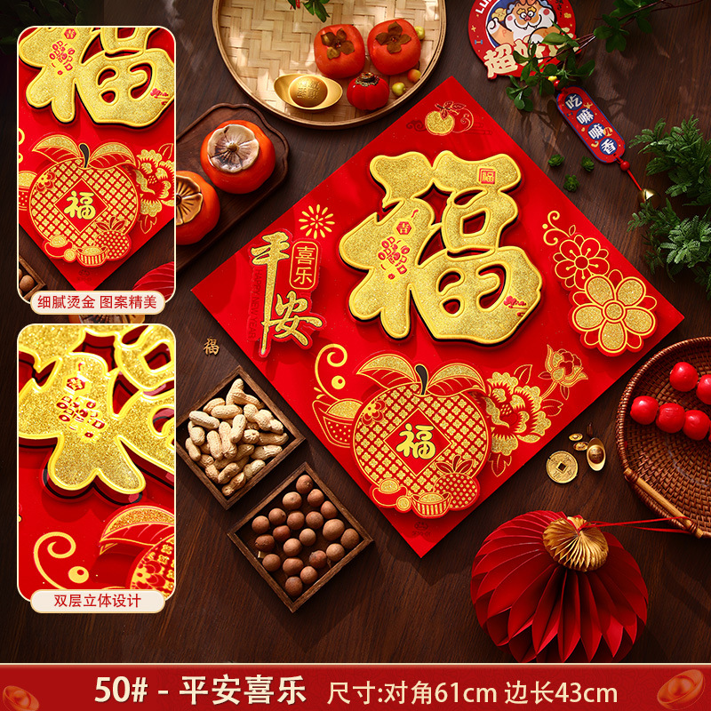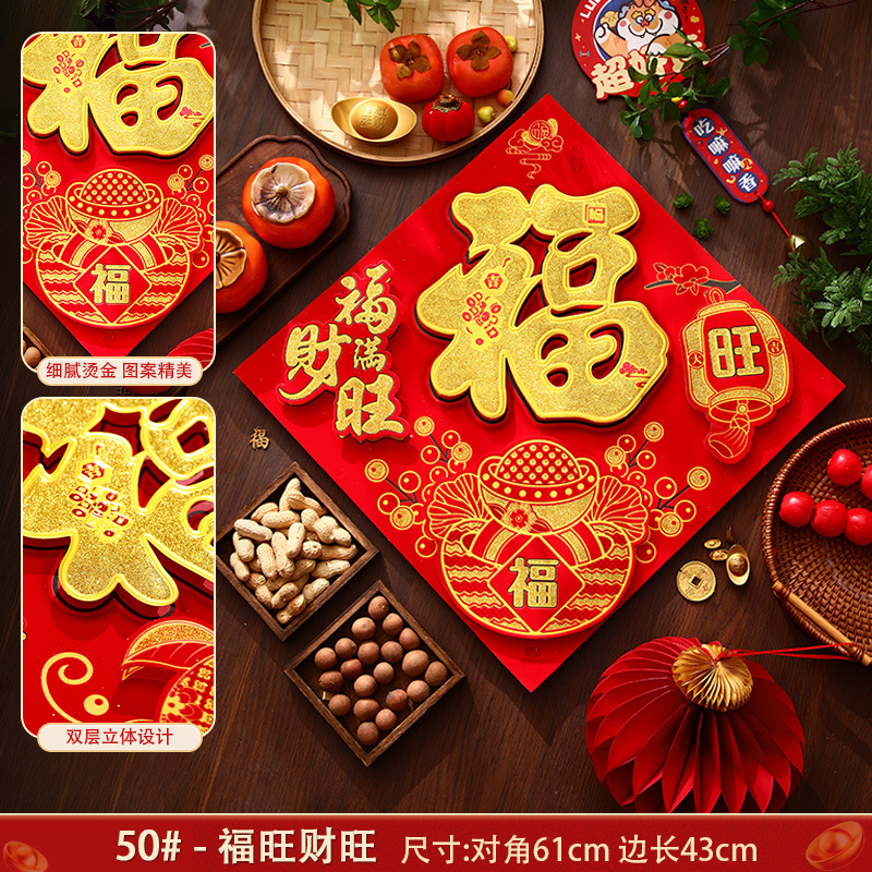 2025新款福字门贴蛇年新年窗花贴过年布置装饰品春节斗方年画批发