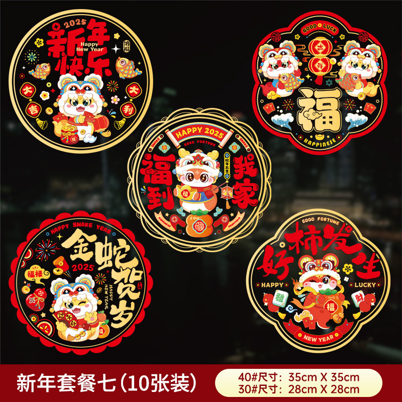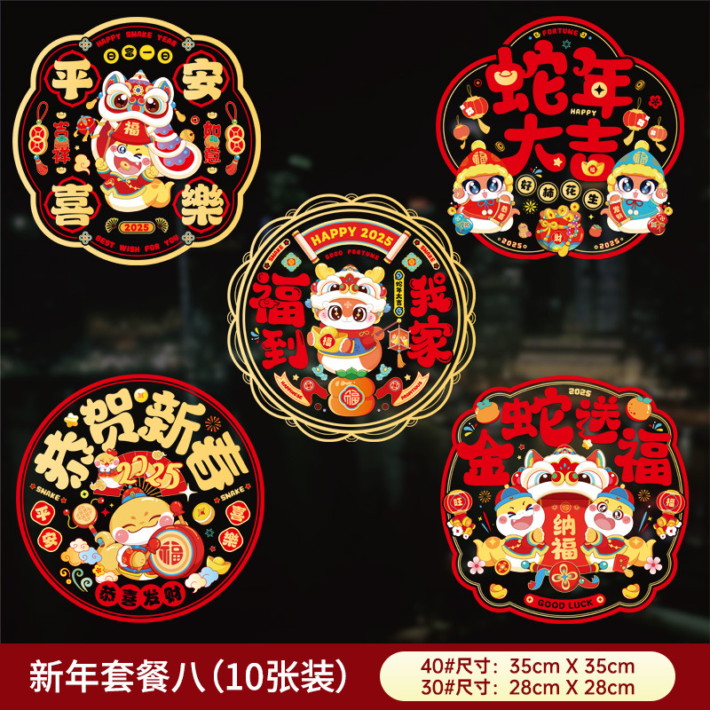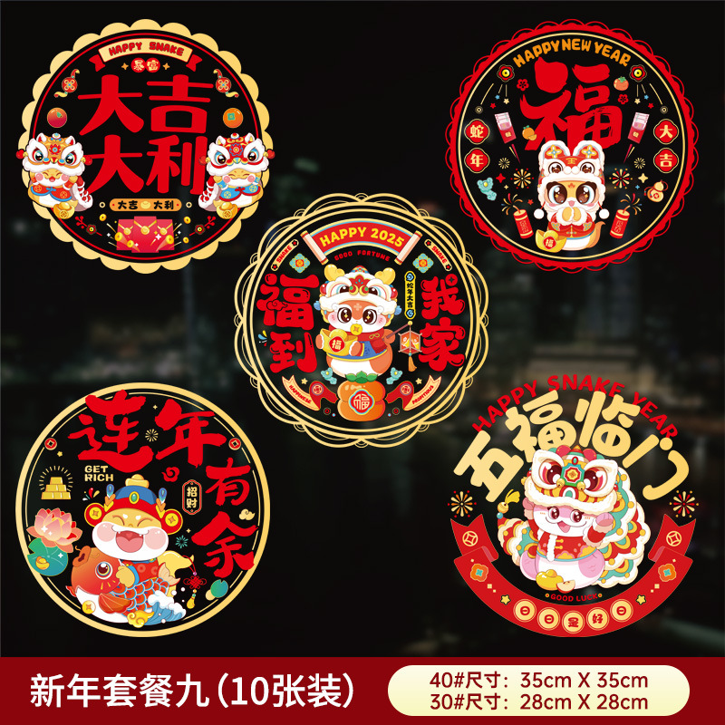 窗花2025新款春节贴纸新年静电贴新年窗贴蛇年窗户生肖福字贴批发