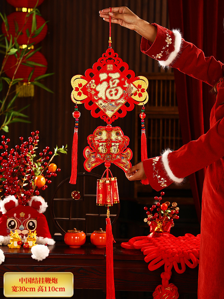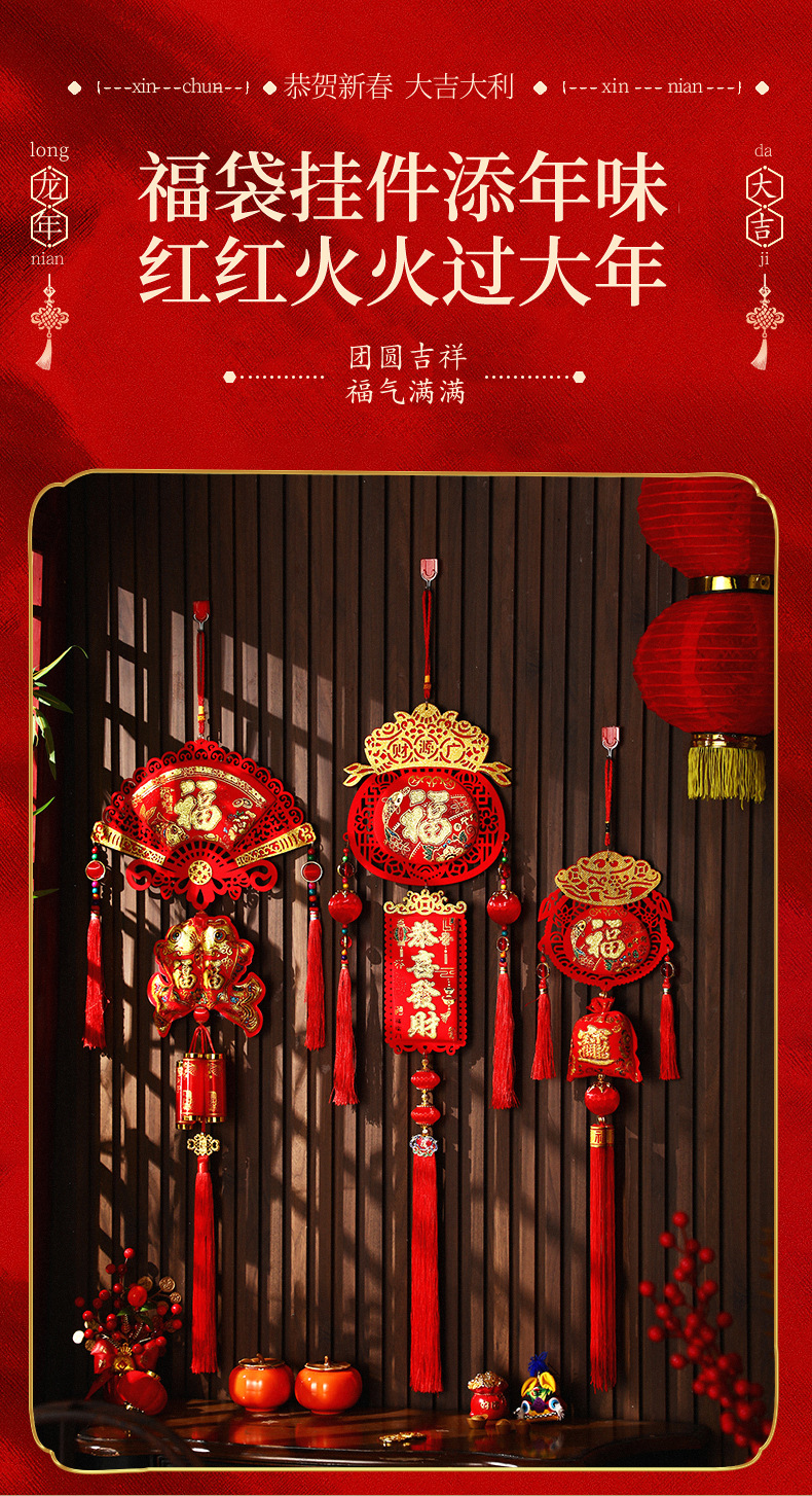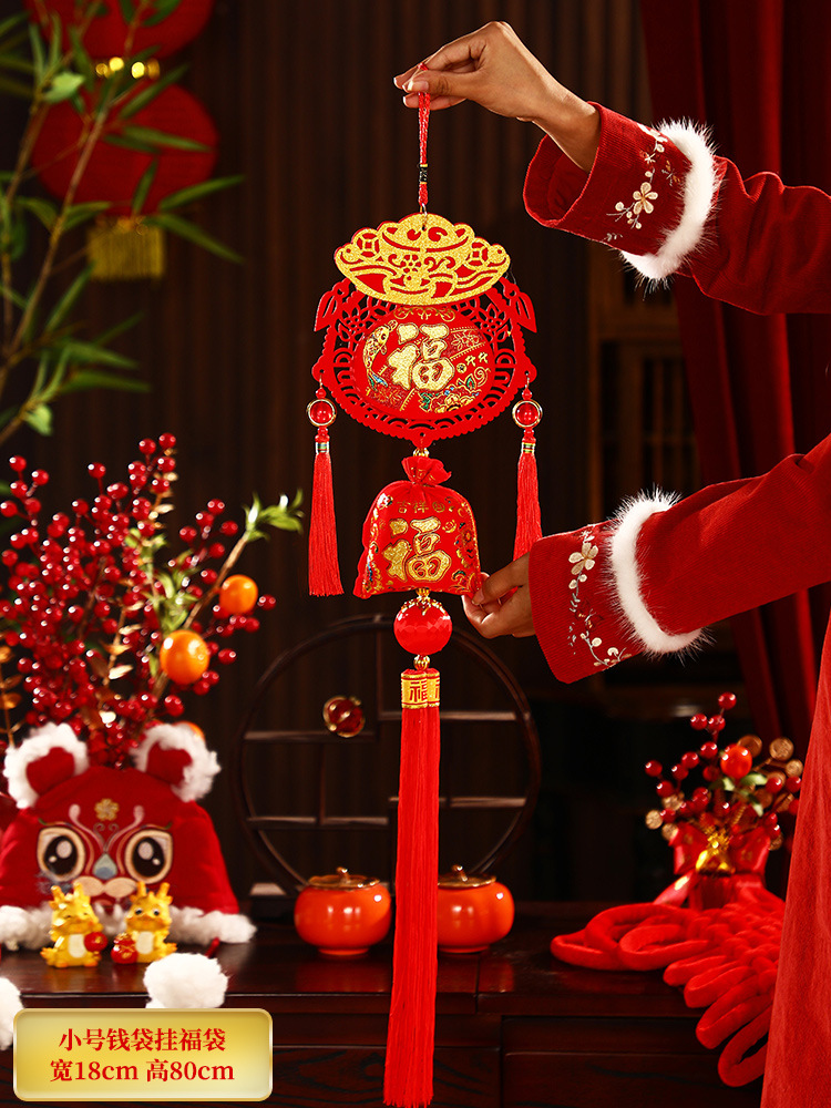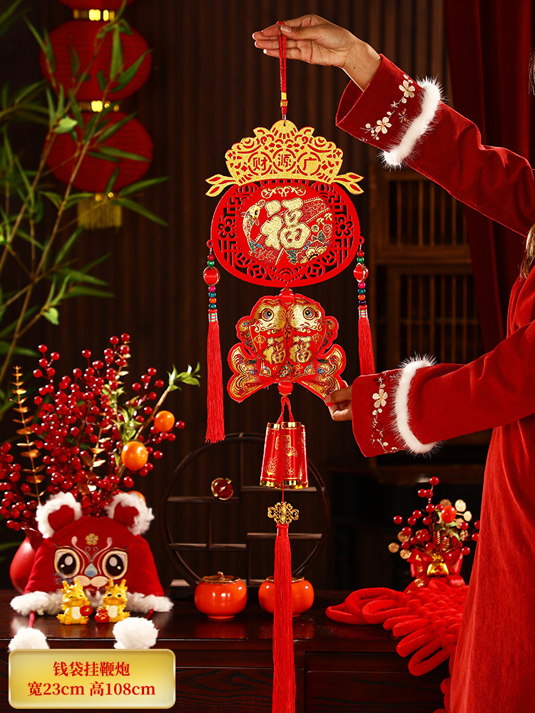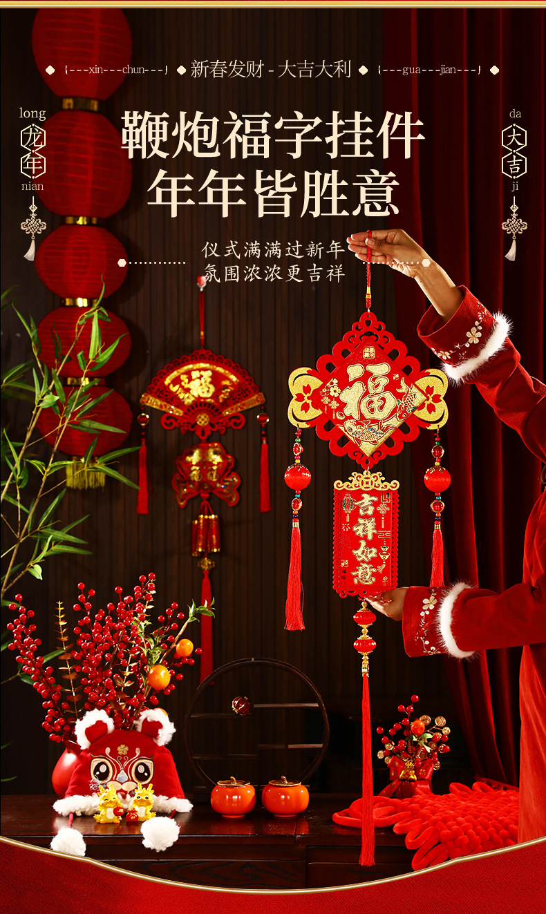 2025新年福字挂件蛇年春节装饰客厅大门布置用品过年福袋鞭炮挂饰