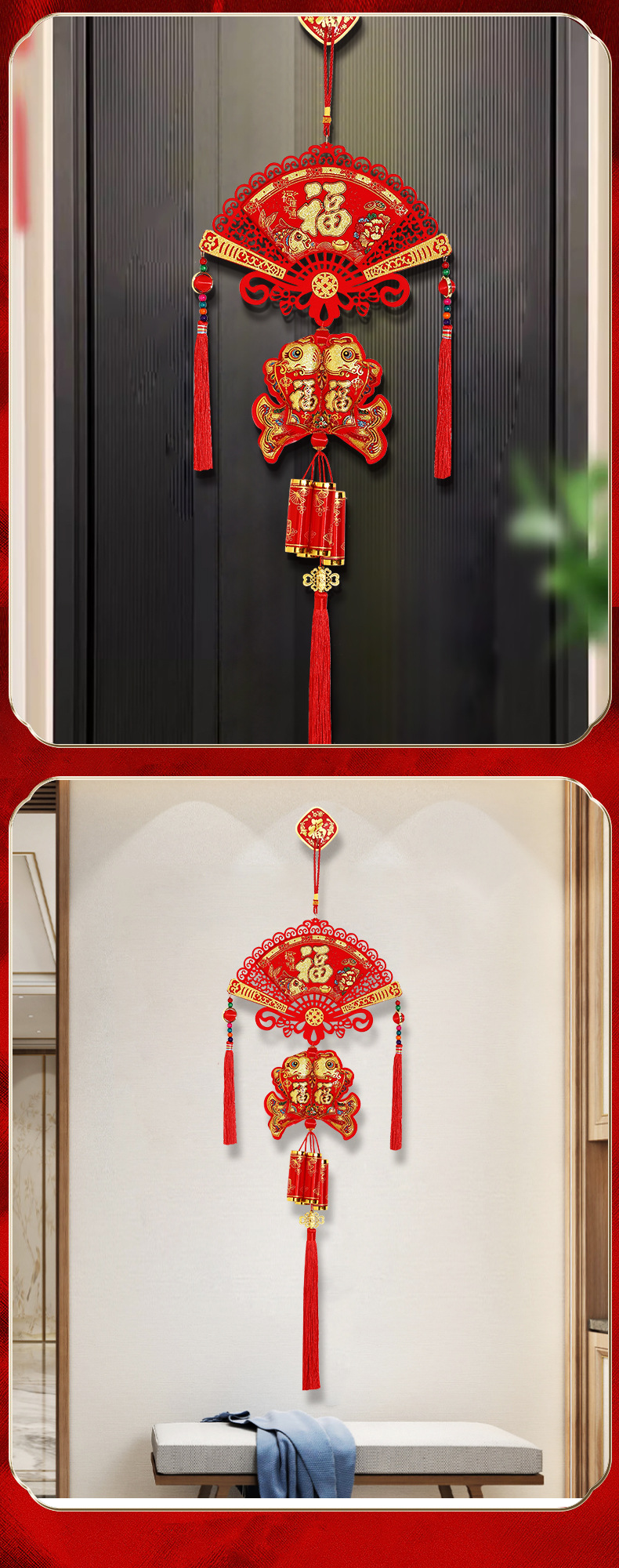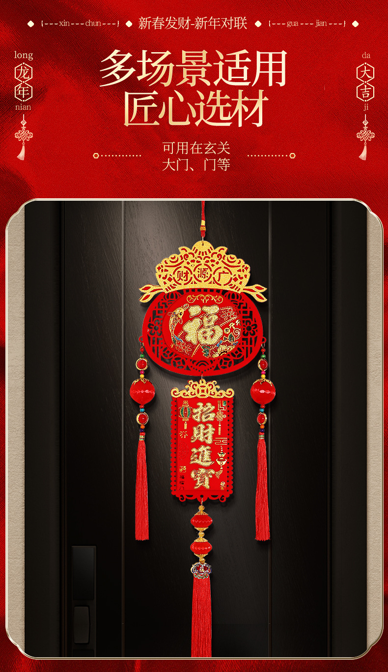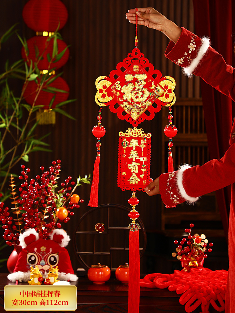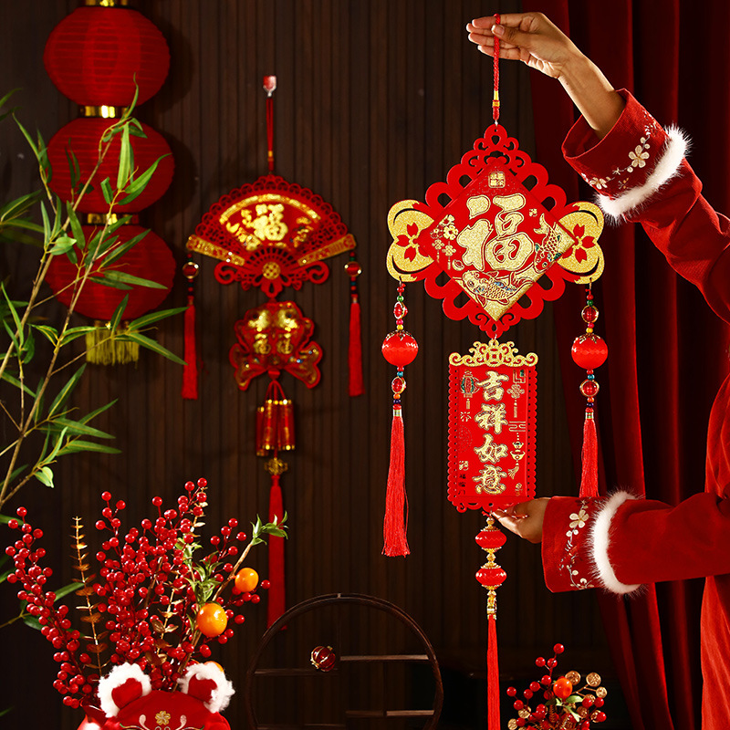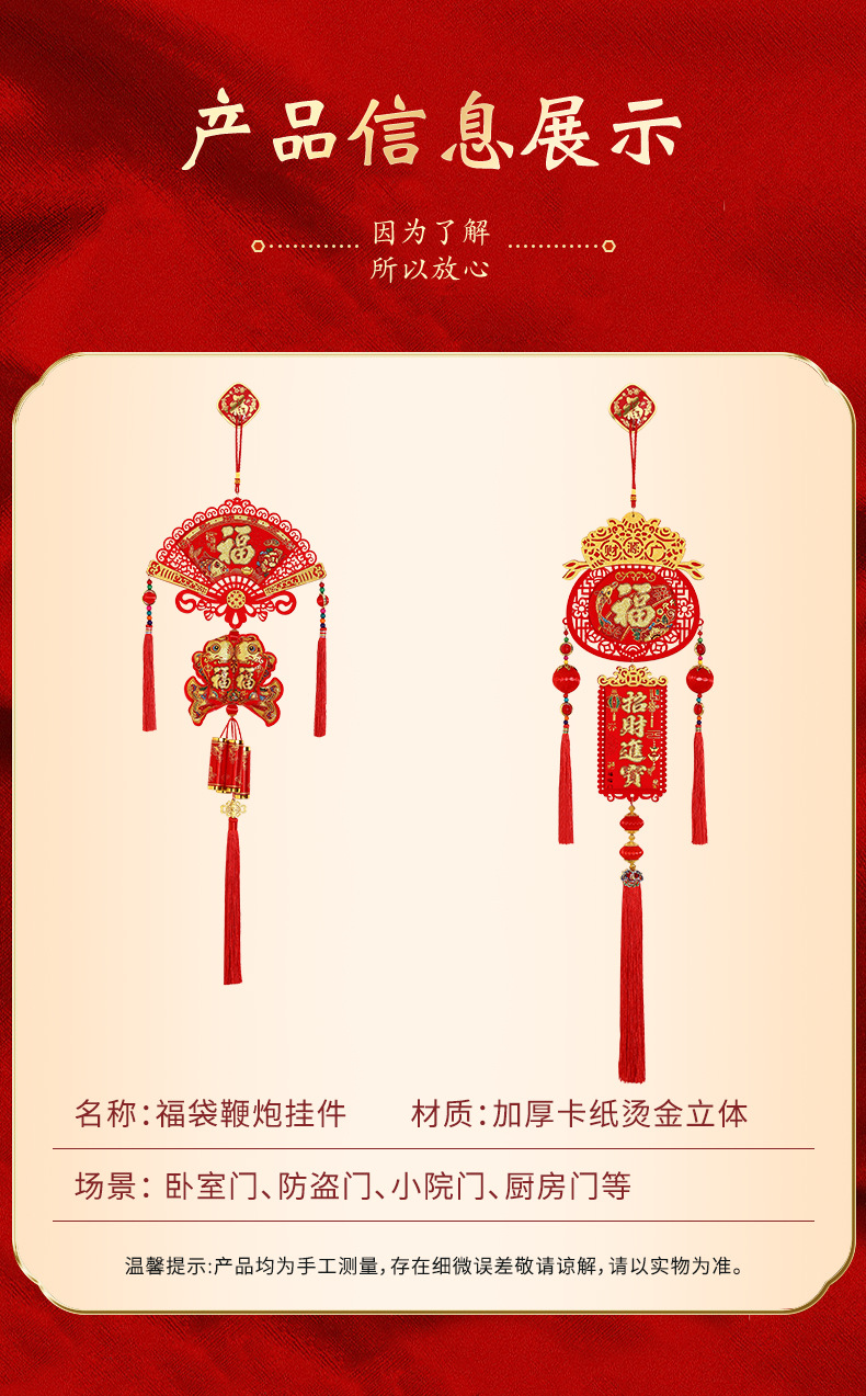 2025新年福字挂件蛇年春节装饰客厅大门布置用品过年福袋鞭炮挂饰
