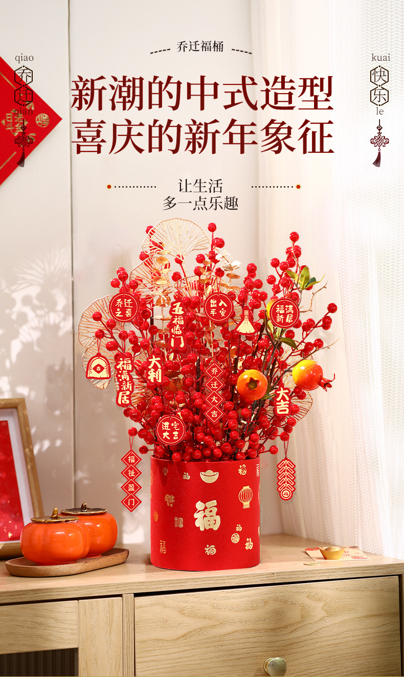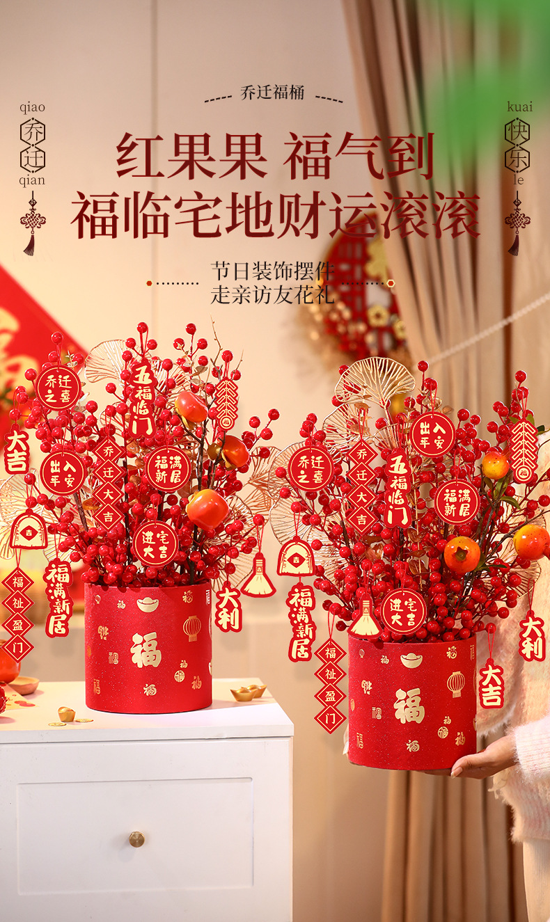 乔迁之喜福桶装饰搬新家礼物入宅仪式布置用品发财果客厅摆件批发