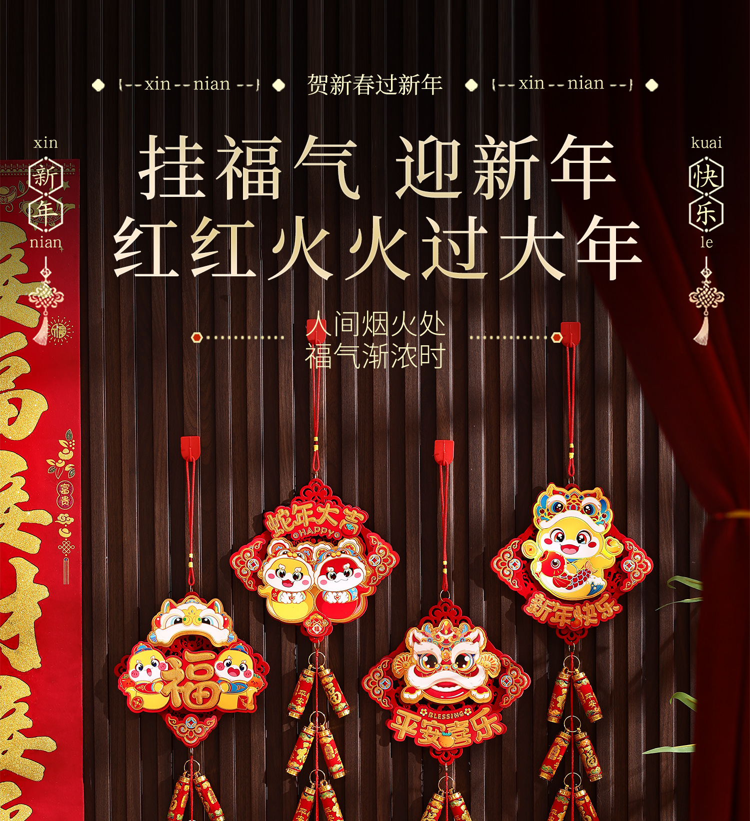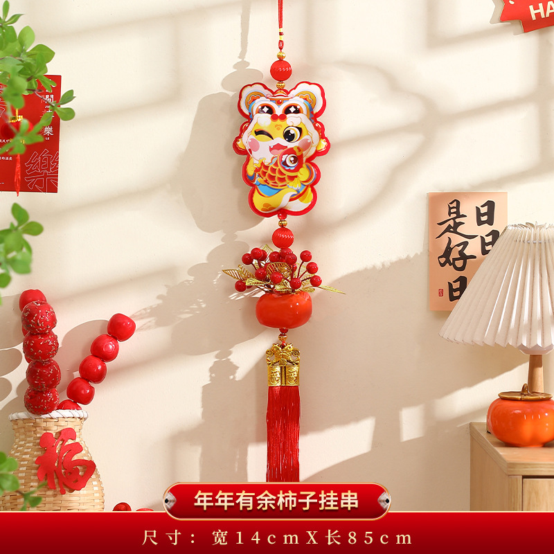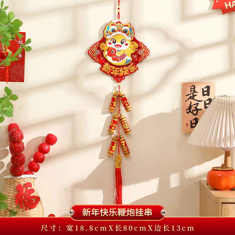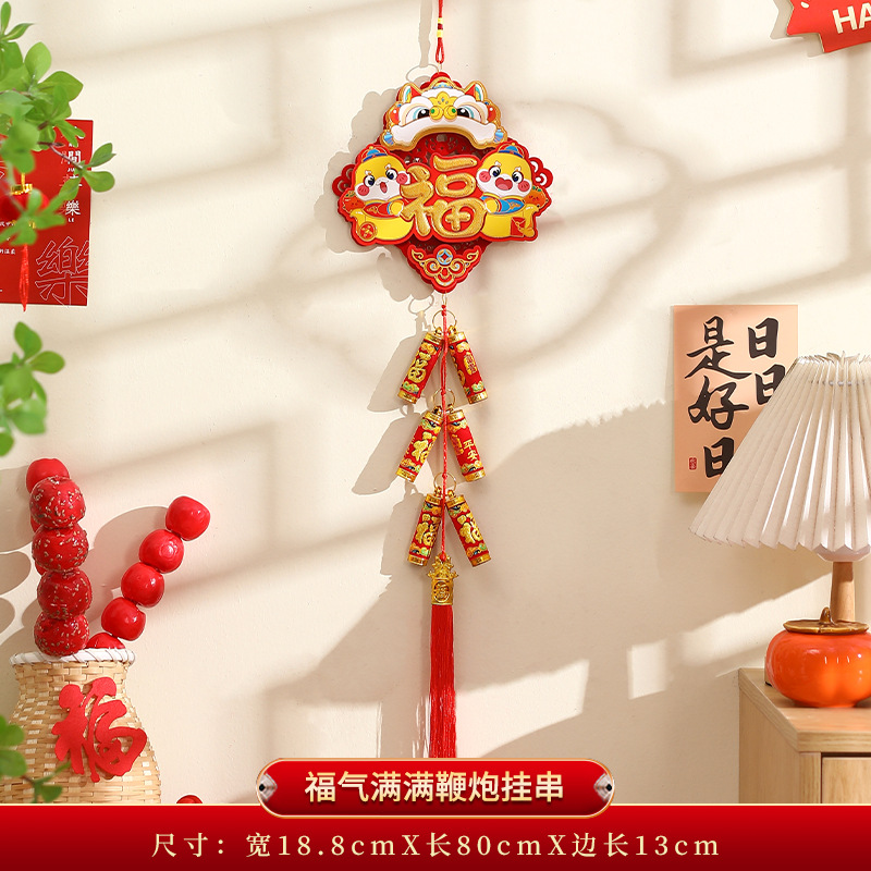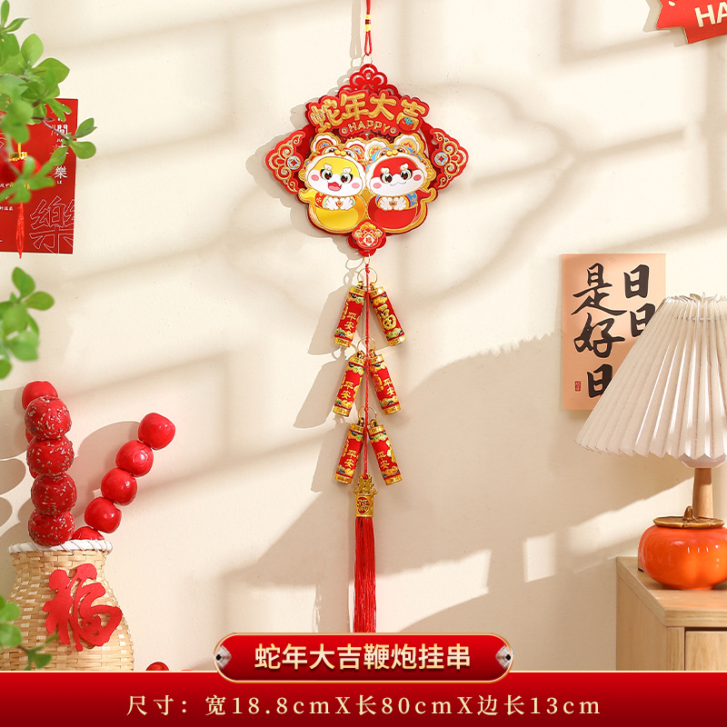 新年鞭炮挂饰2025新款蛇年毛绒生肖红果挂件春节过年客厅布置装饰
