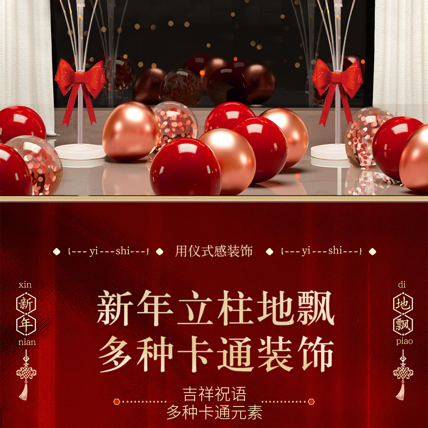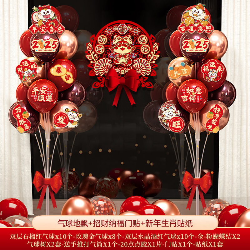 新年气球地飘立柱2025元旦氛围装饰蛇年客厅商场公司场景布置用品