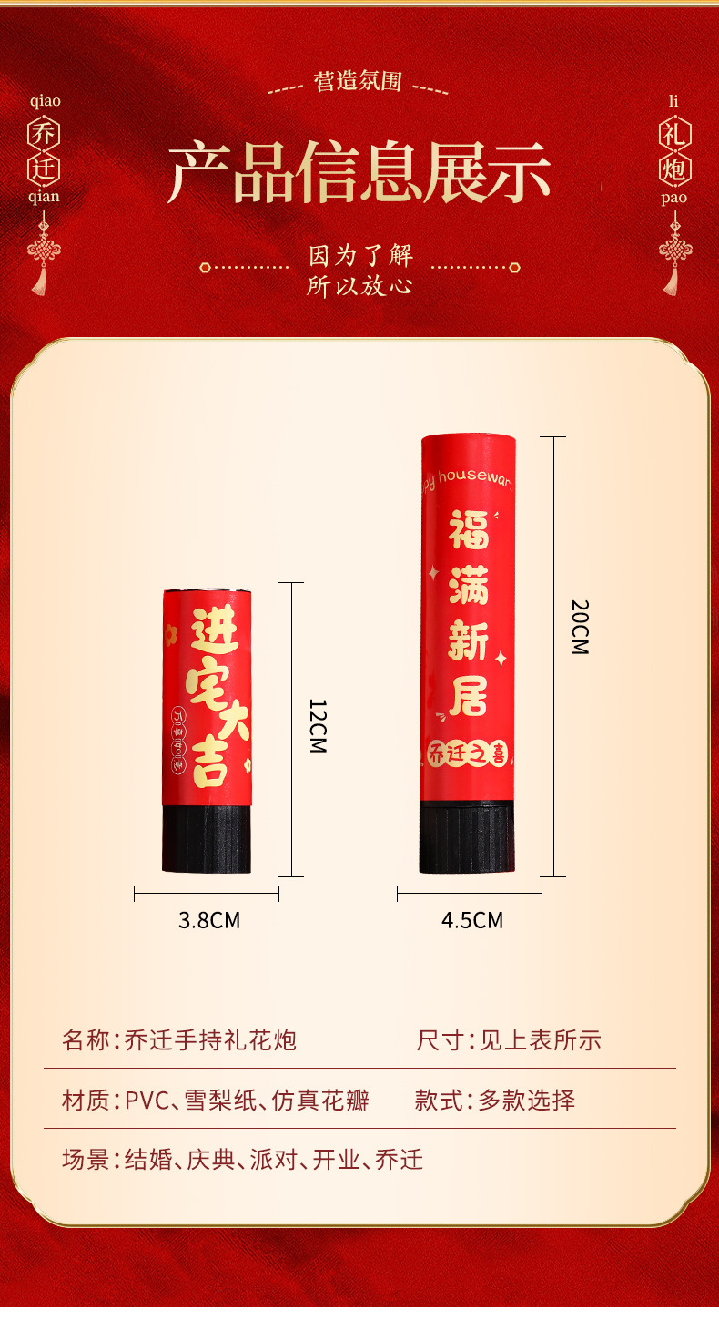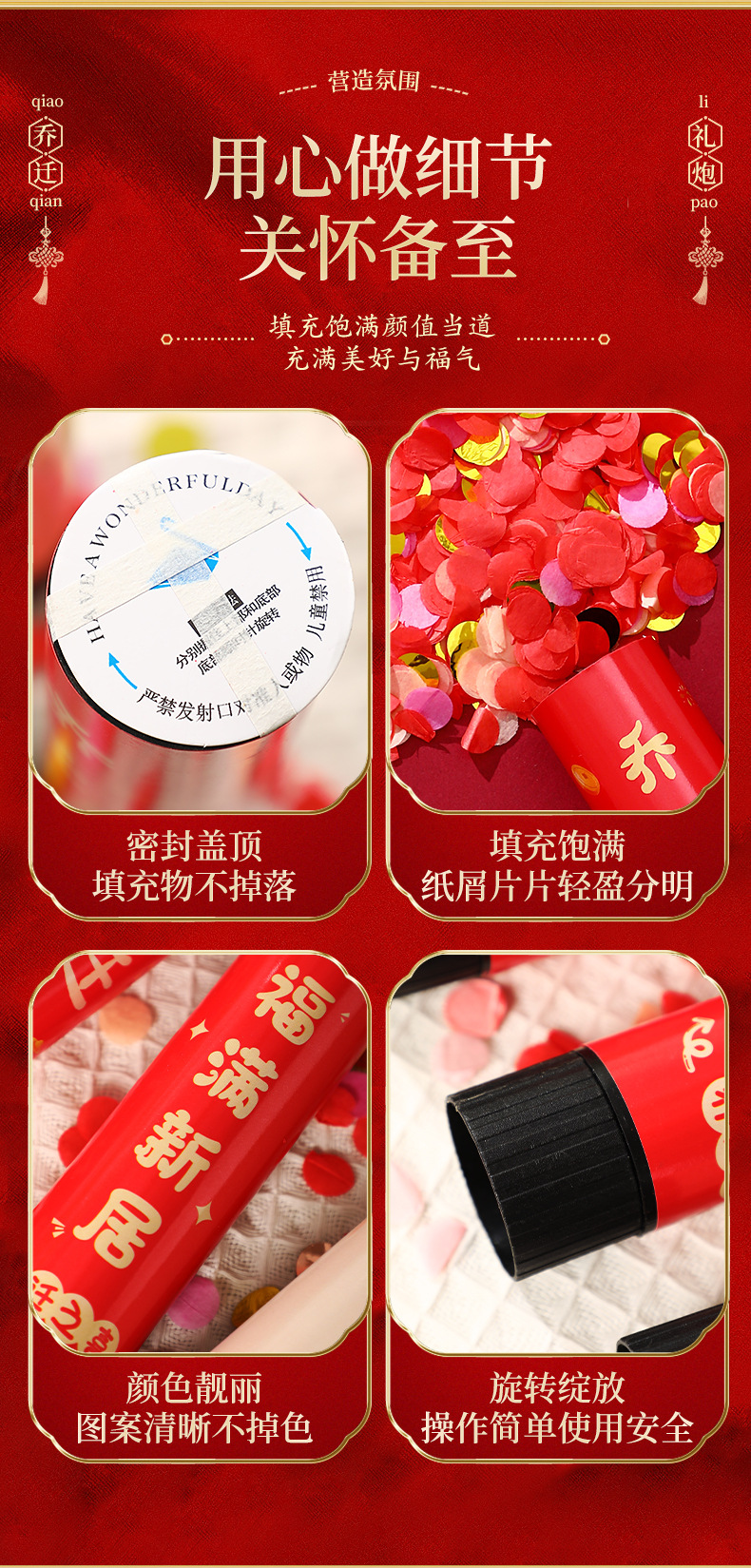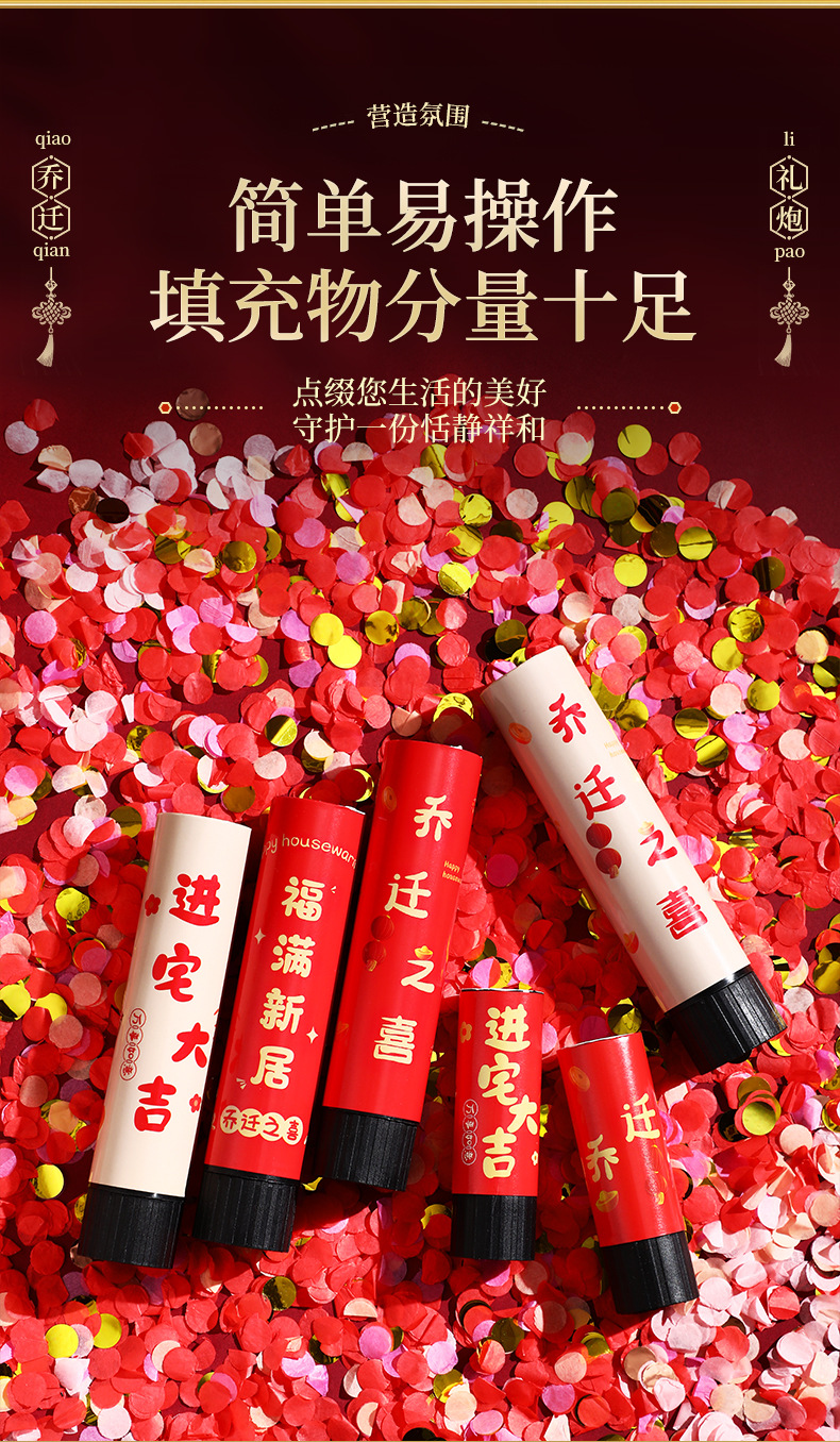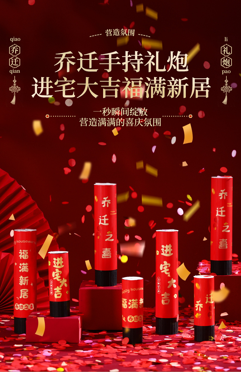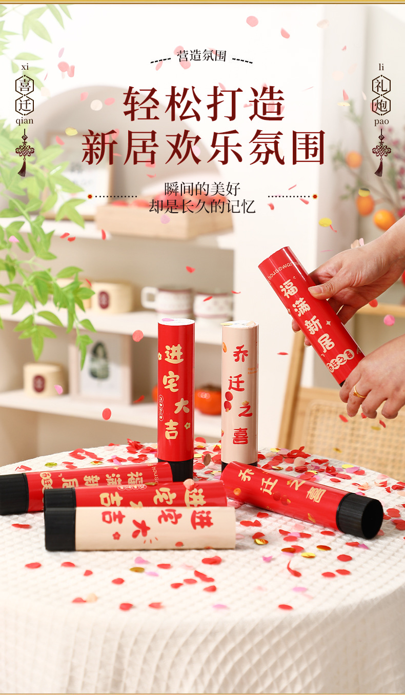 乔迁之喜礼炮新居搬家入伙进宅仪式迷你小礼花筒新房装饰布置用品