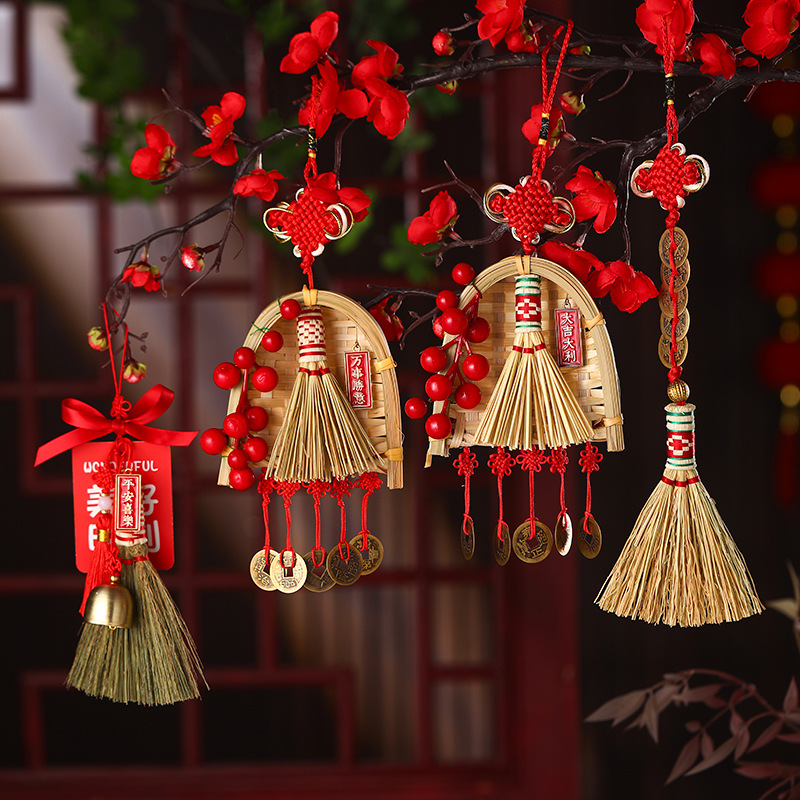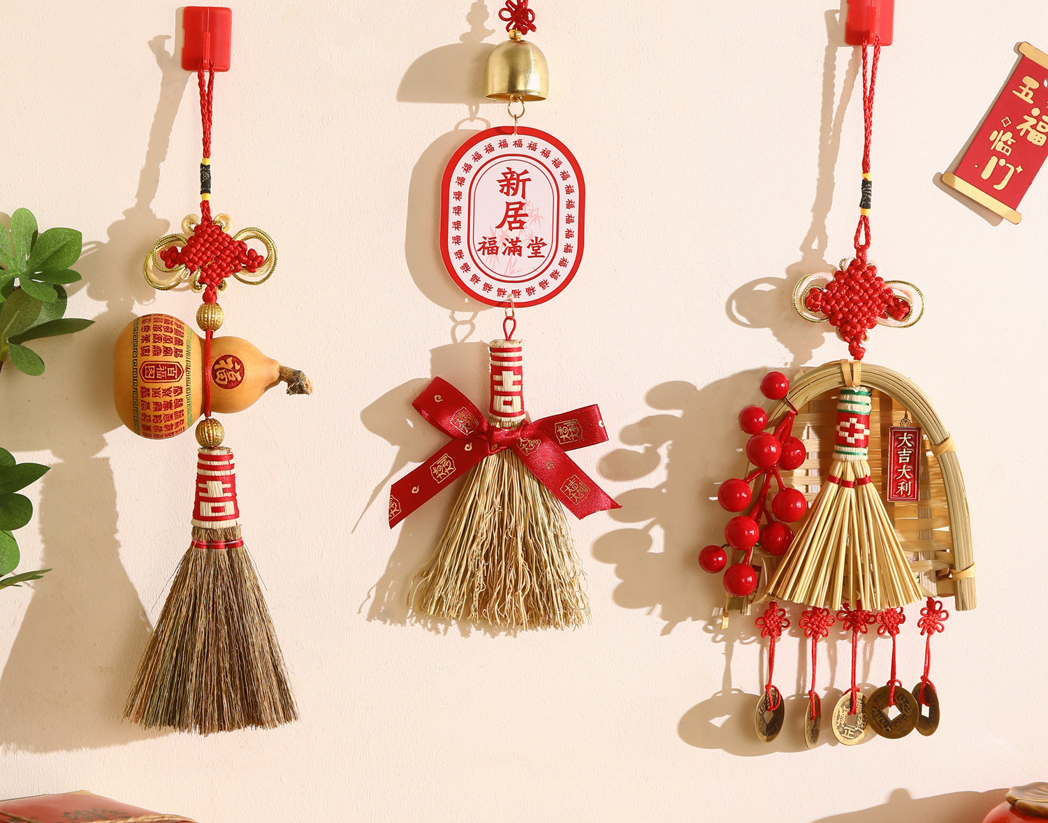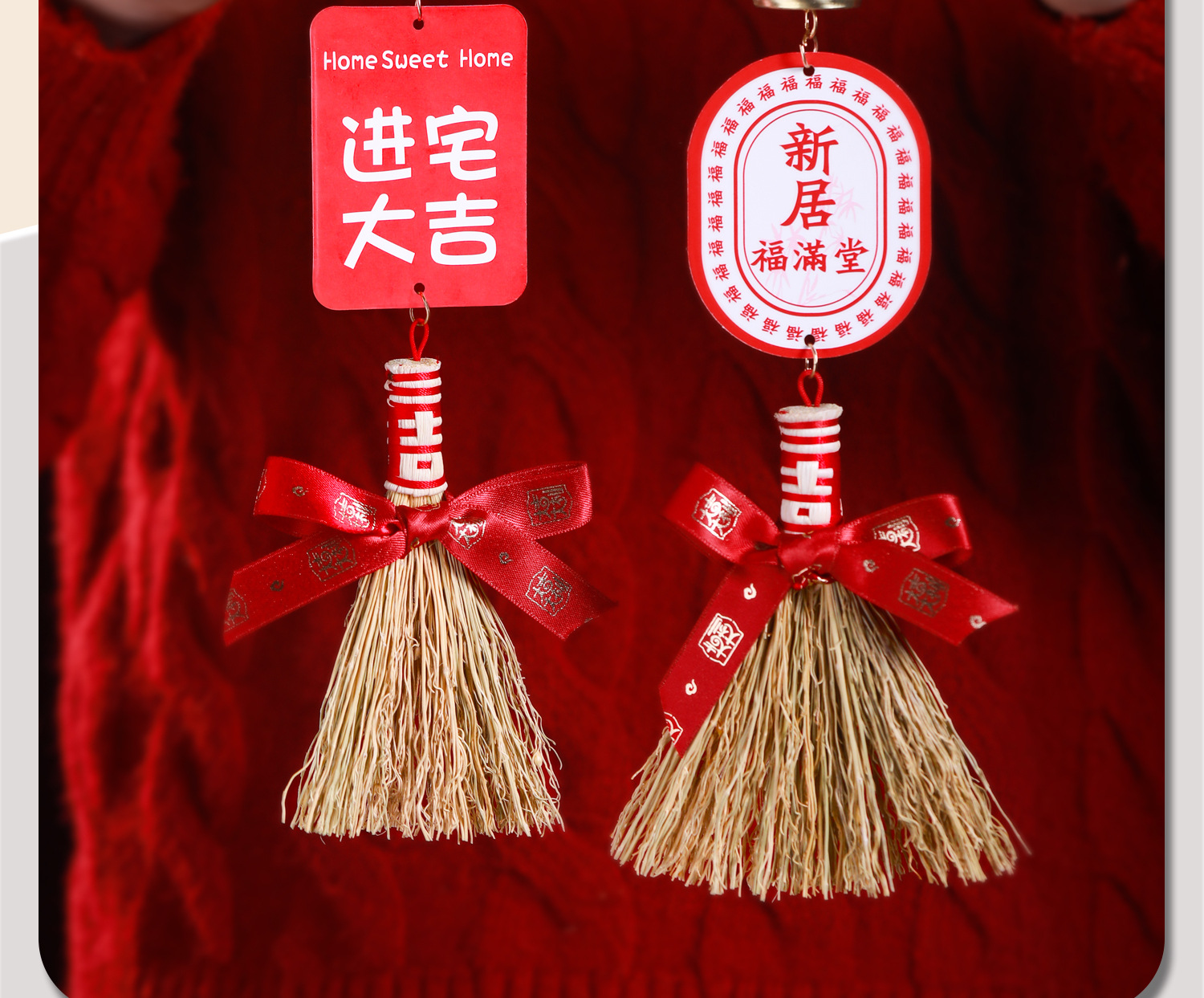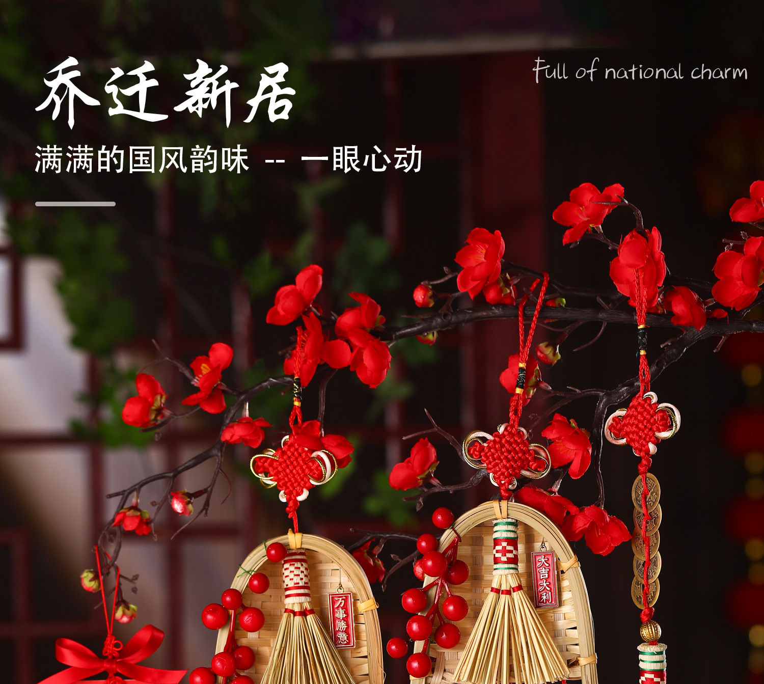 乔迁之喜装饰新居入宅小扫帚搬新家挂饰新房进宅大吉簸箕挂件批发