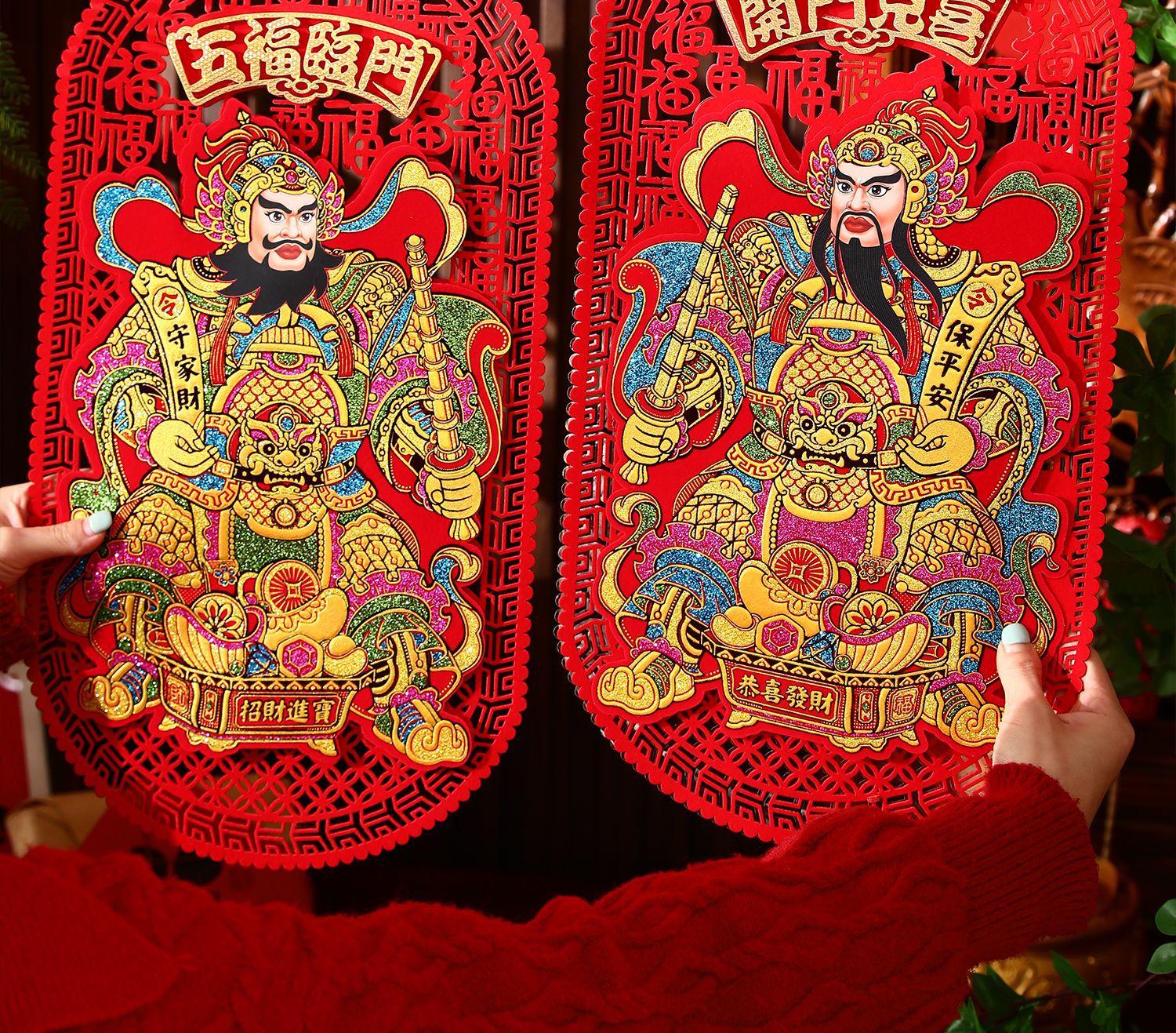 新年门神门贴2025蛇年烫金贴画过年大门年画装饰春节用品年货批发