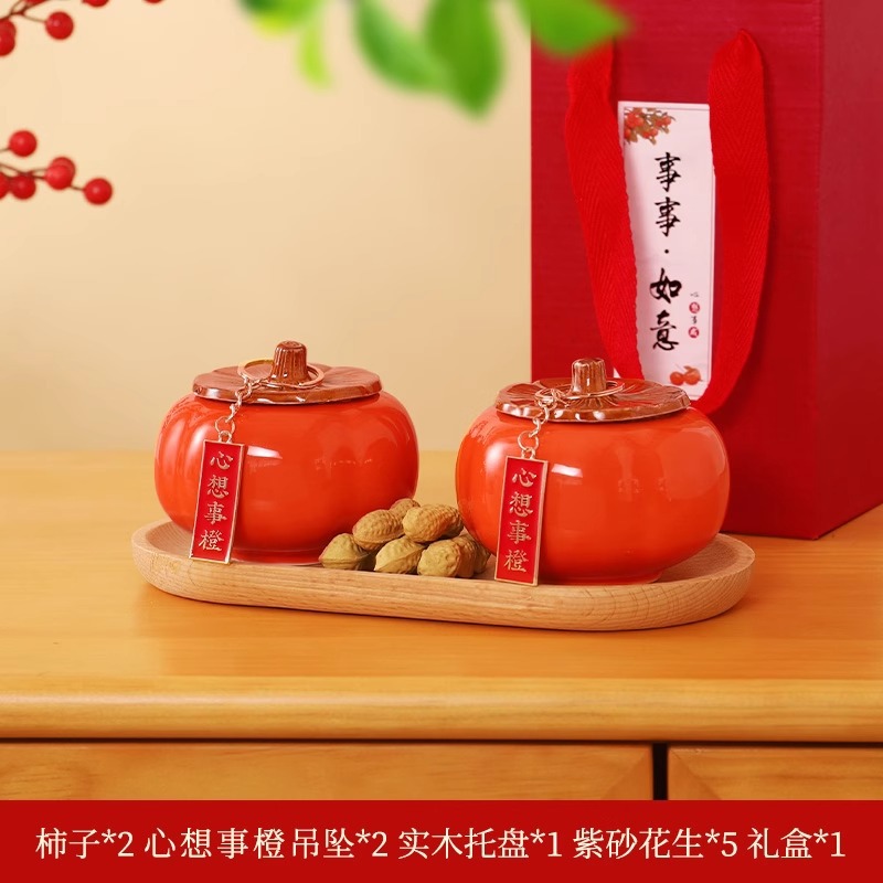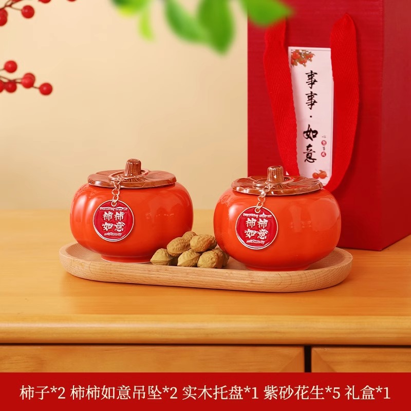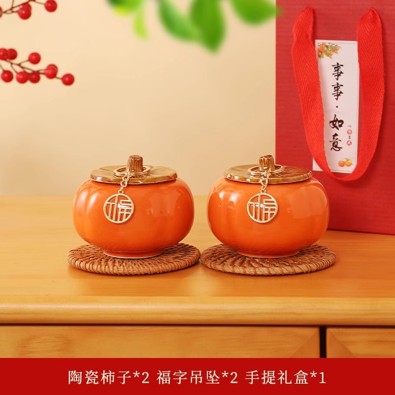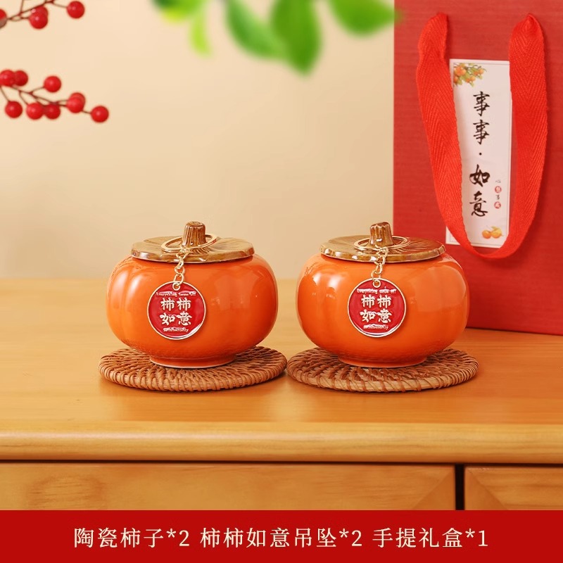乔迁之喜柿柿如意陶瓷摆件客厅入宅礼品新居布置装饰用品柿子礼盒