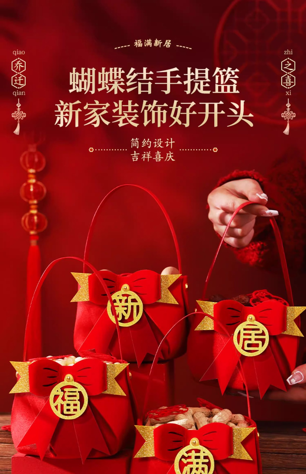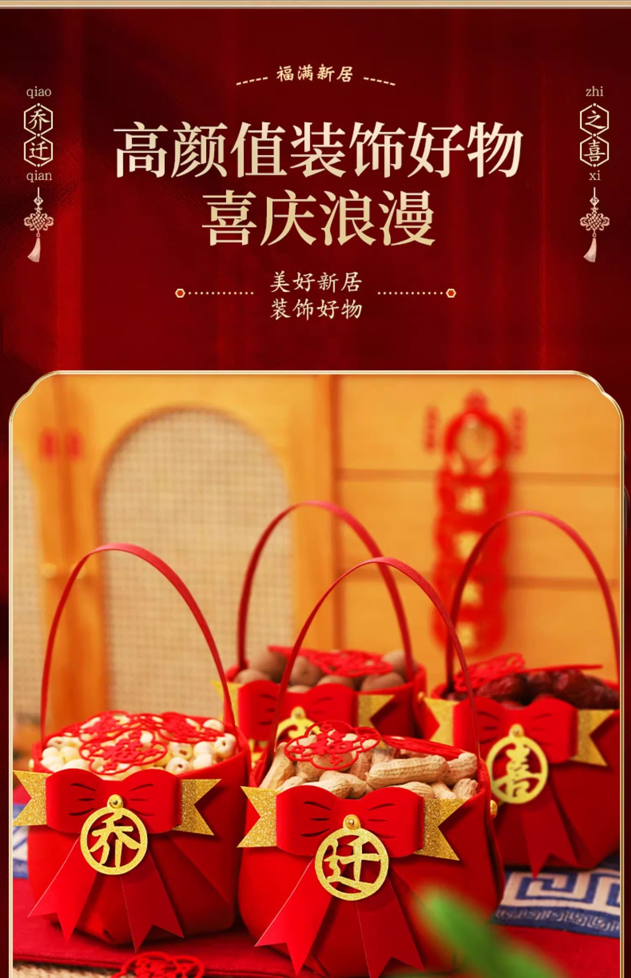 厂家批发乔迁之喜果篮装饰用品新居布置礼品搬家礼物乔迁新房摆件