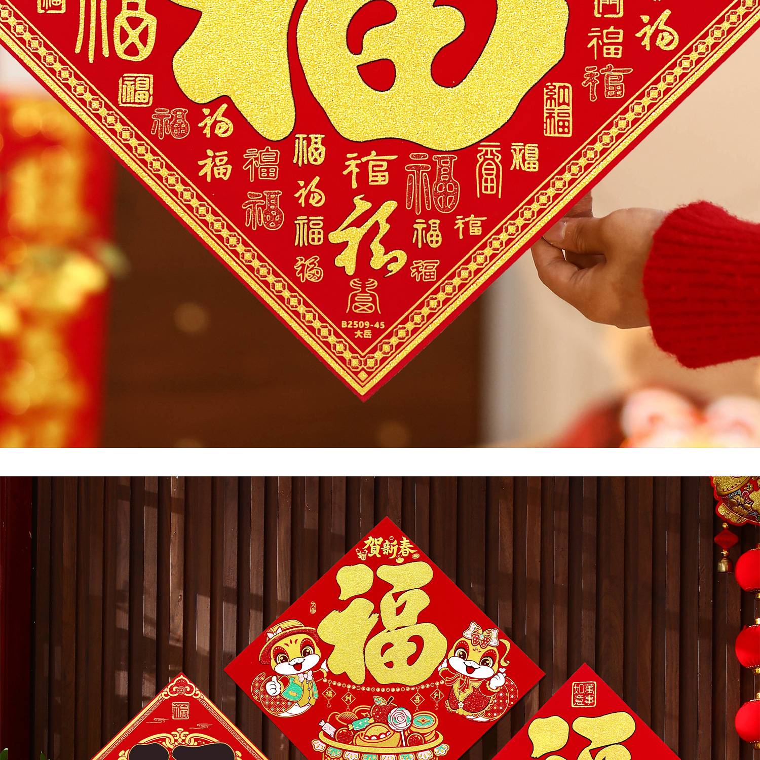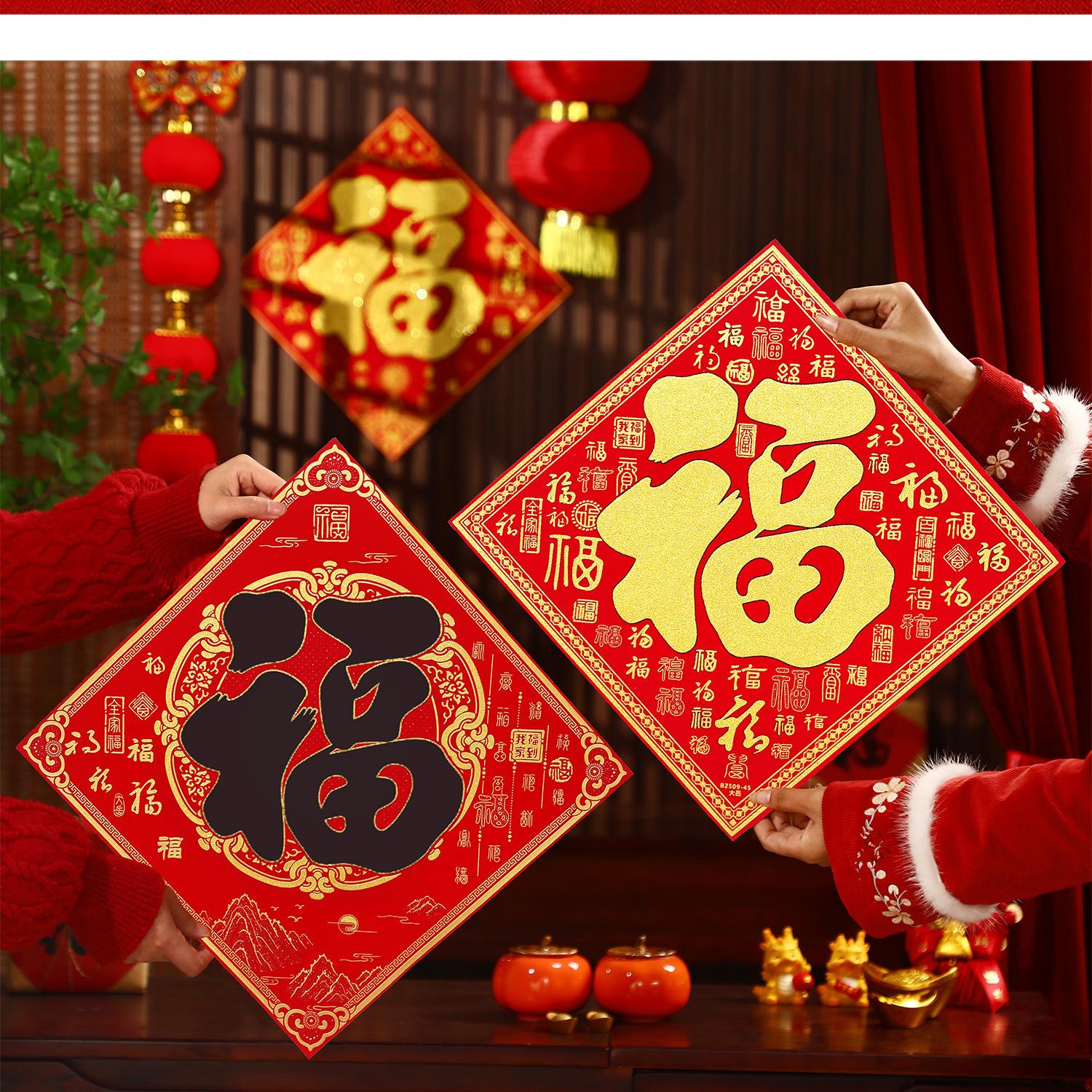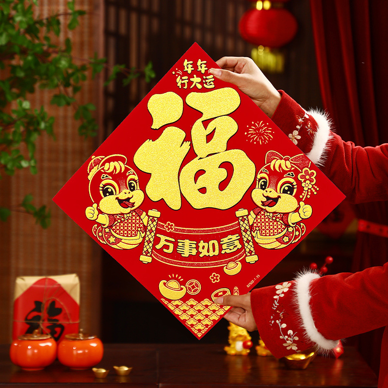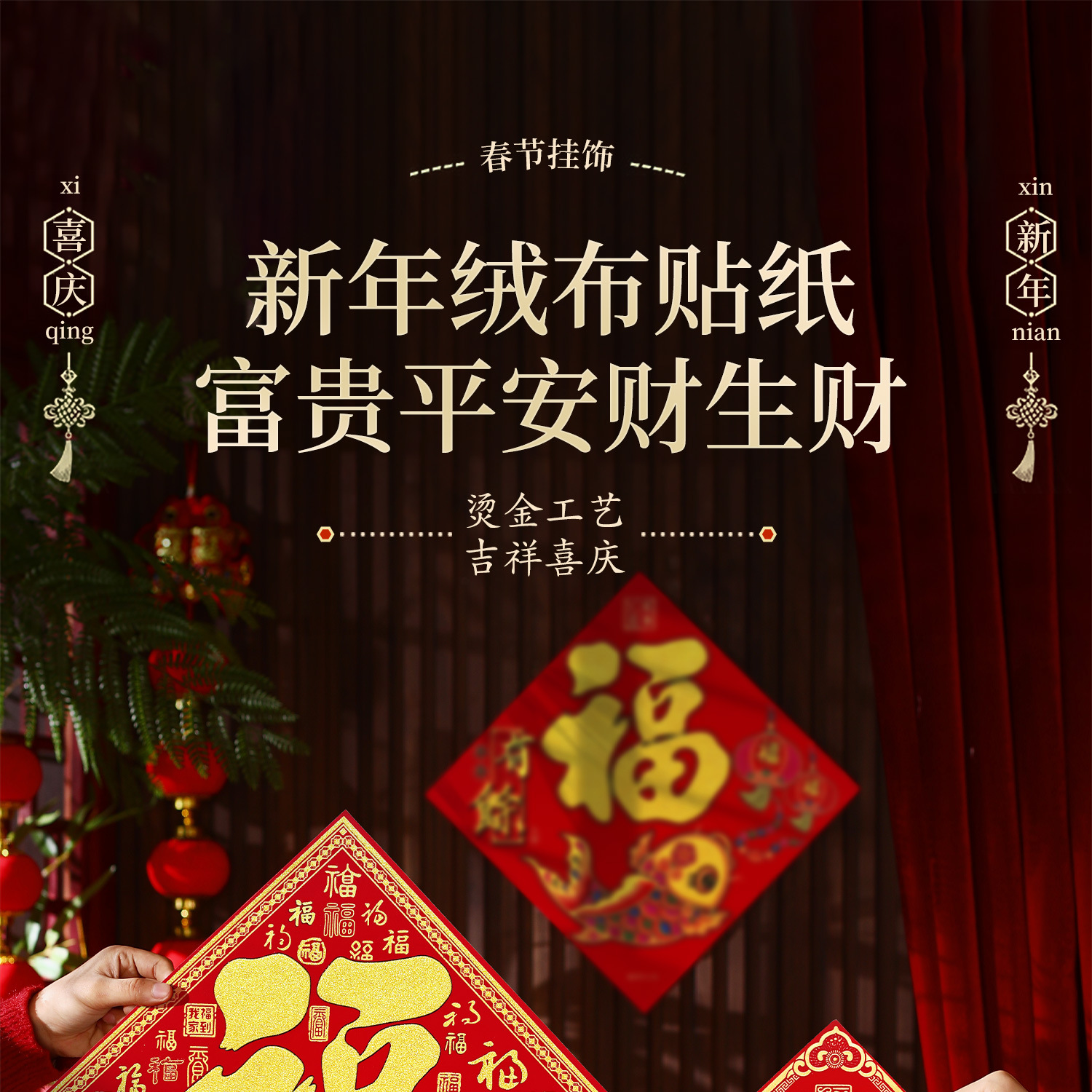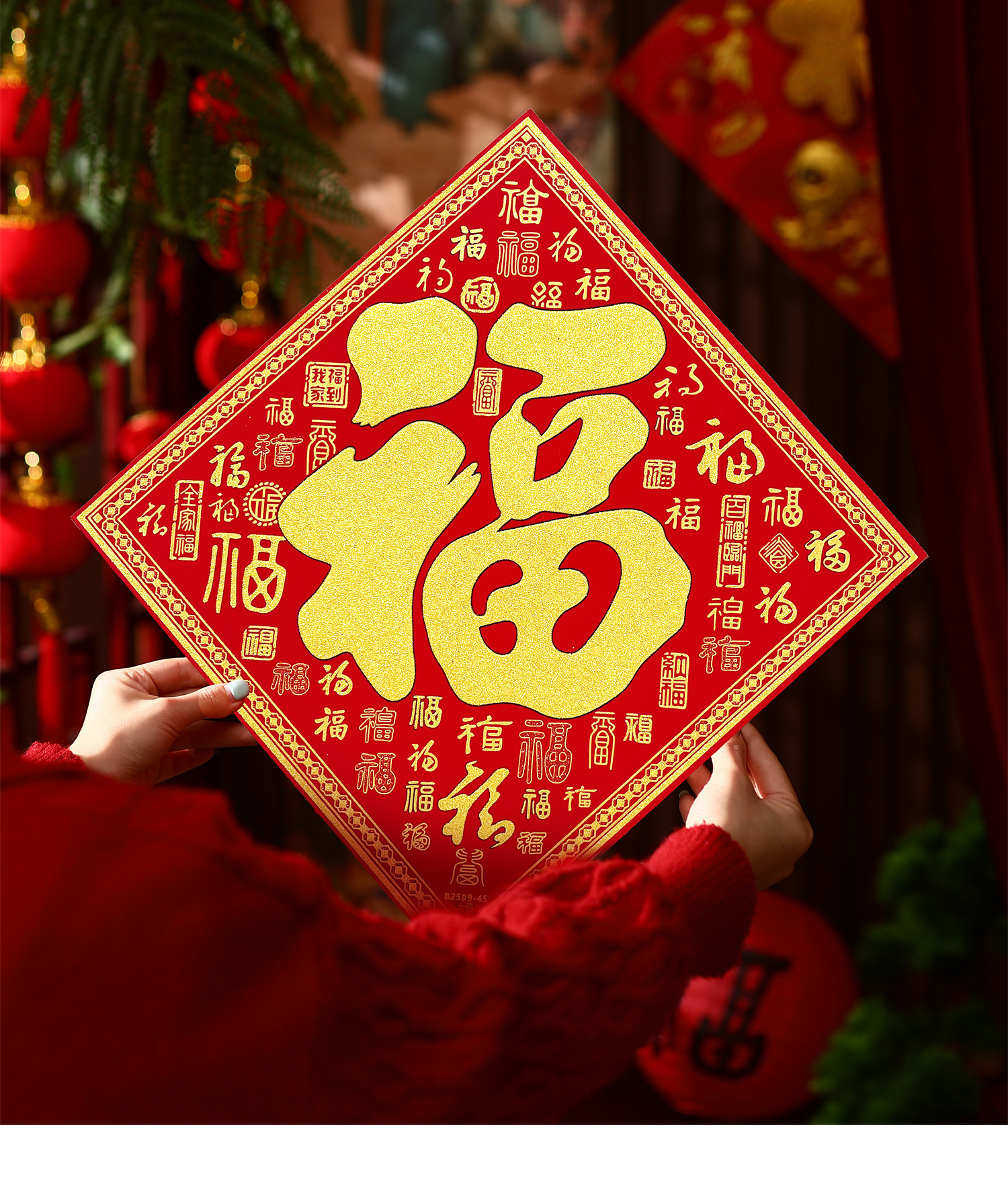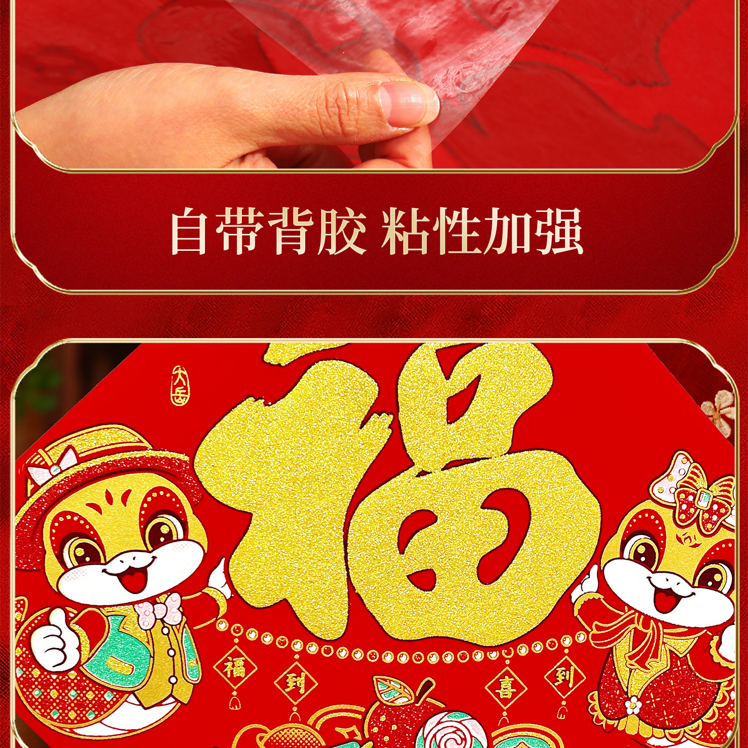 2025新款福字门贴蛇年春节绒布自粘入户门贴新年装饰品福字贴批发