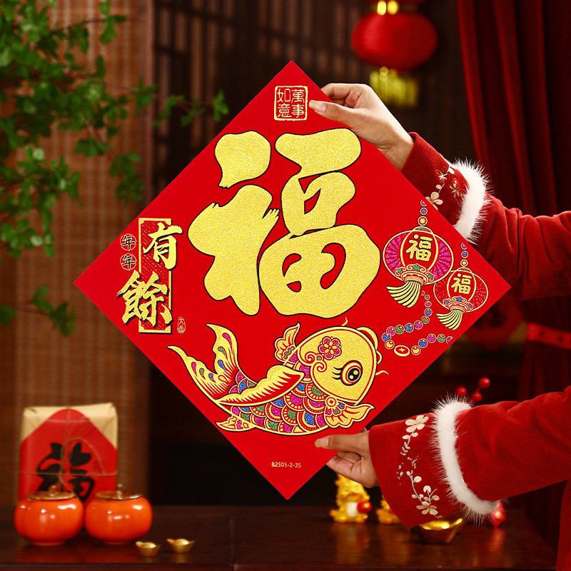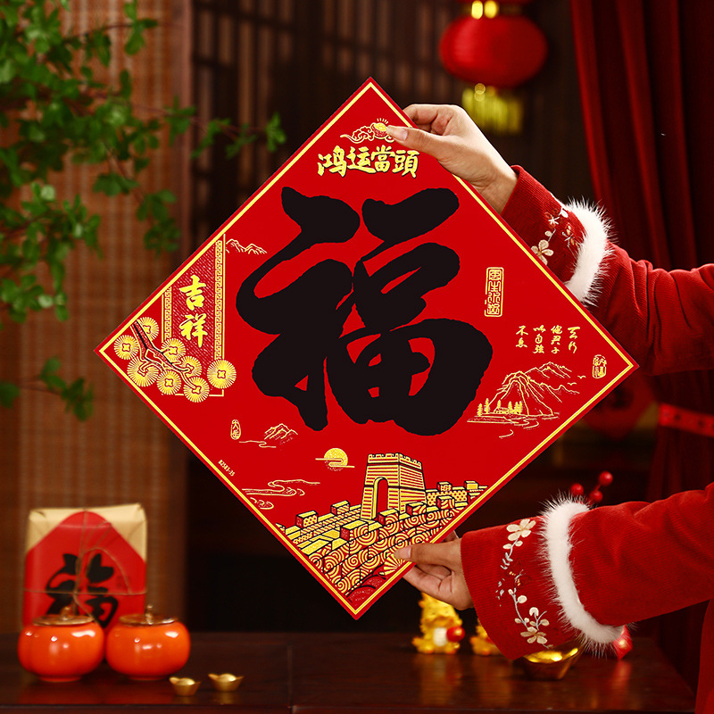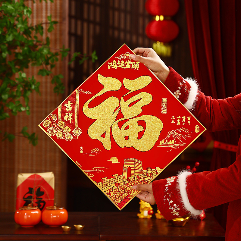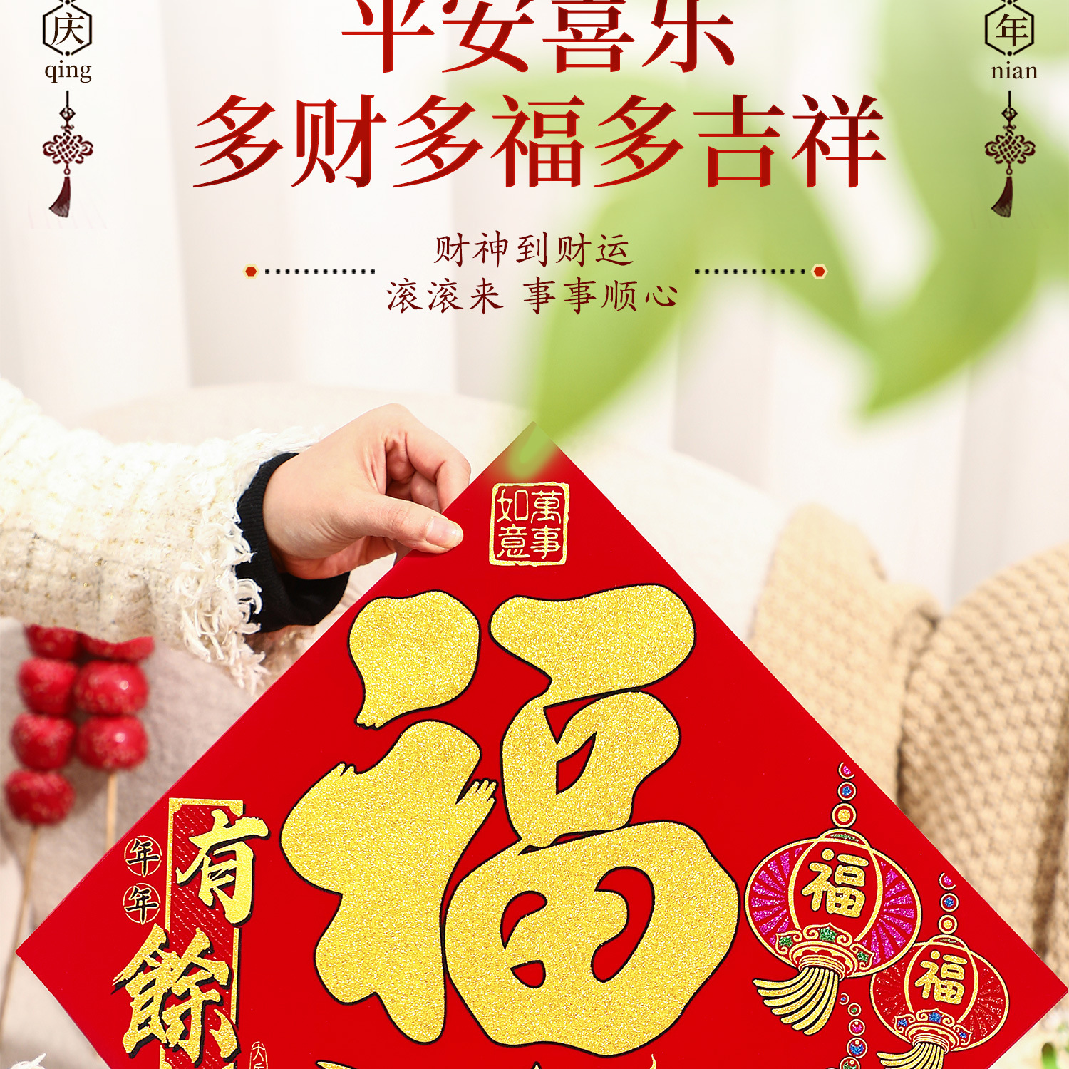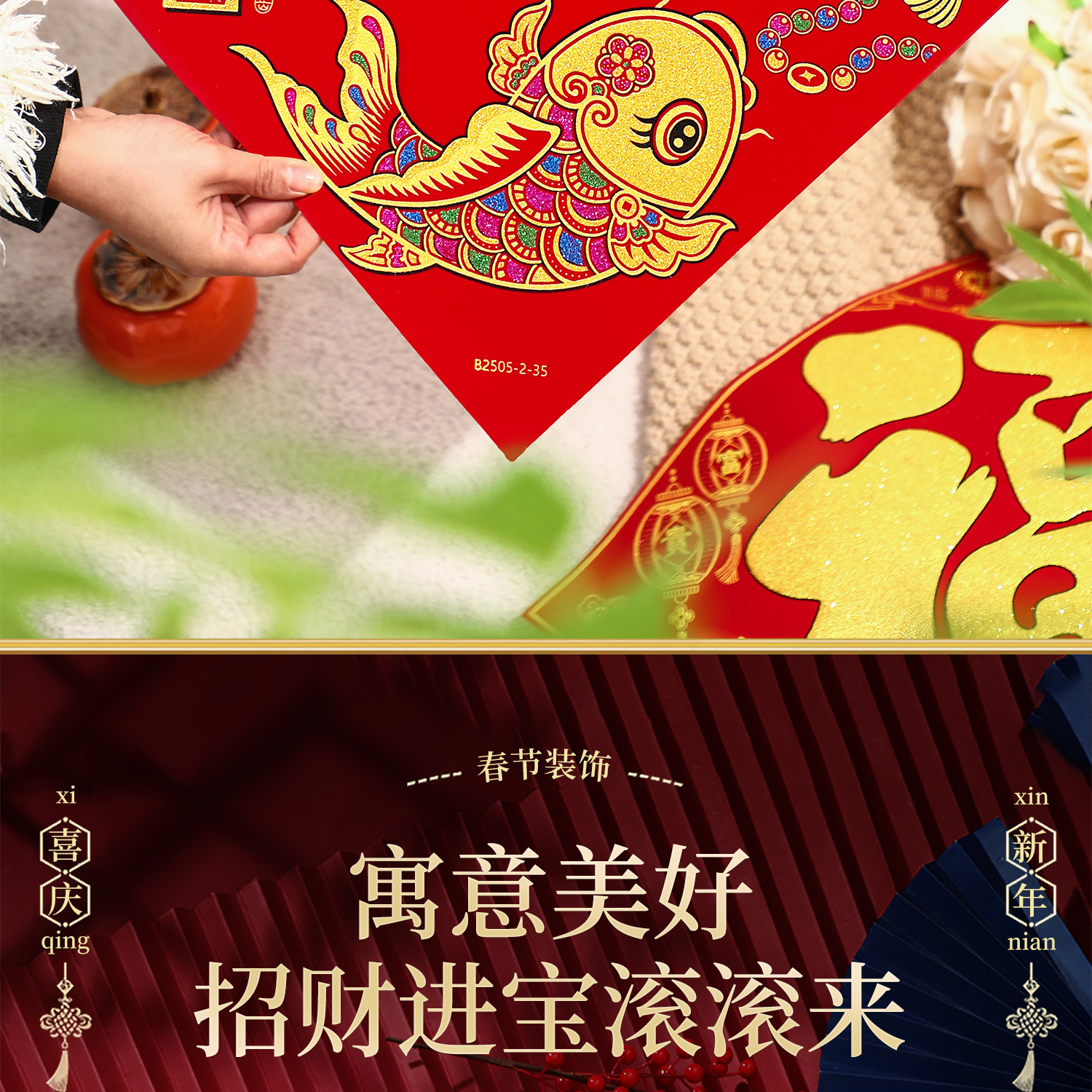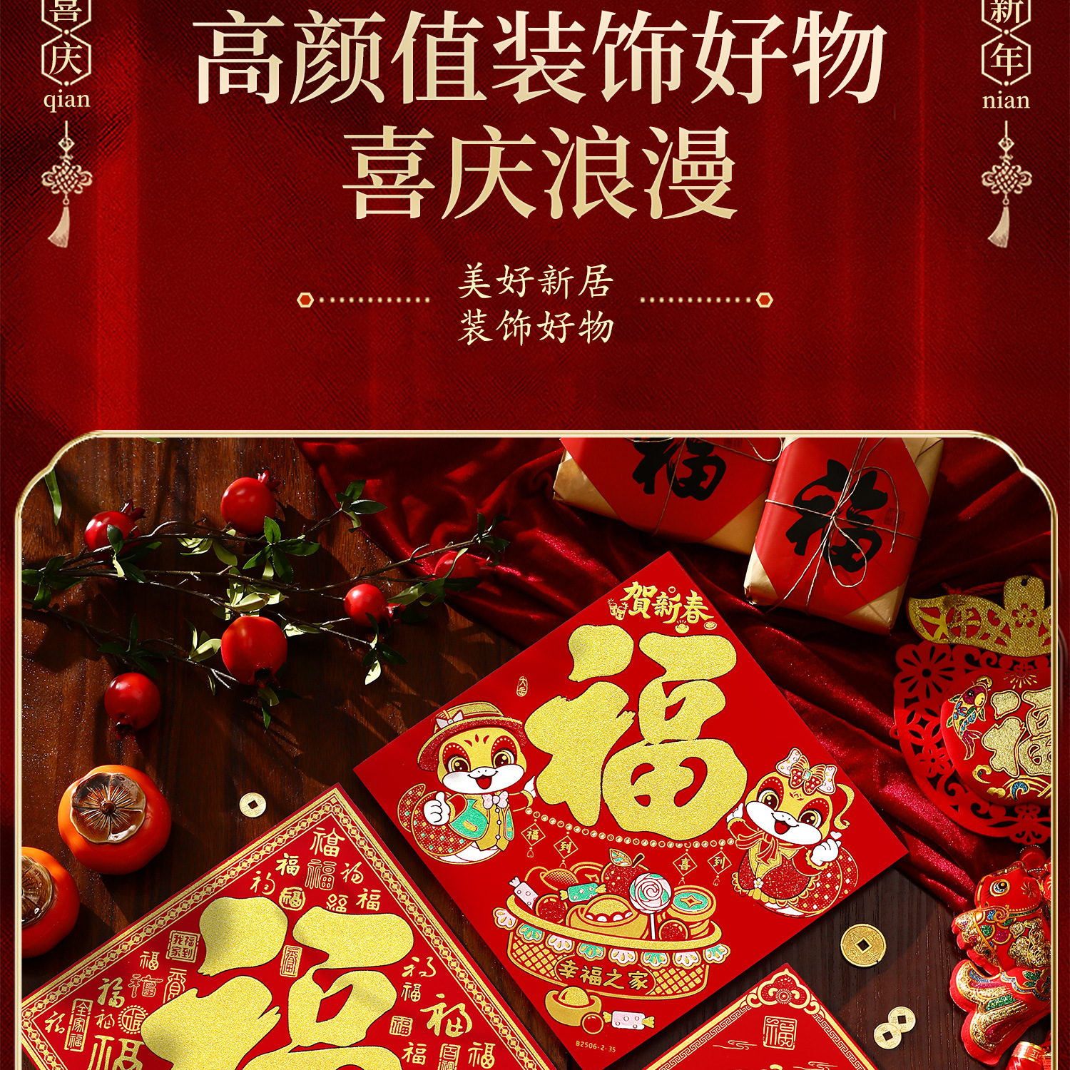 2025新款福字门贴蛇年春节绒布自粘入户门贴新年装饰品福字贴批发