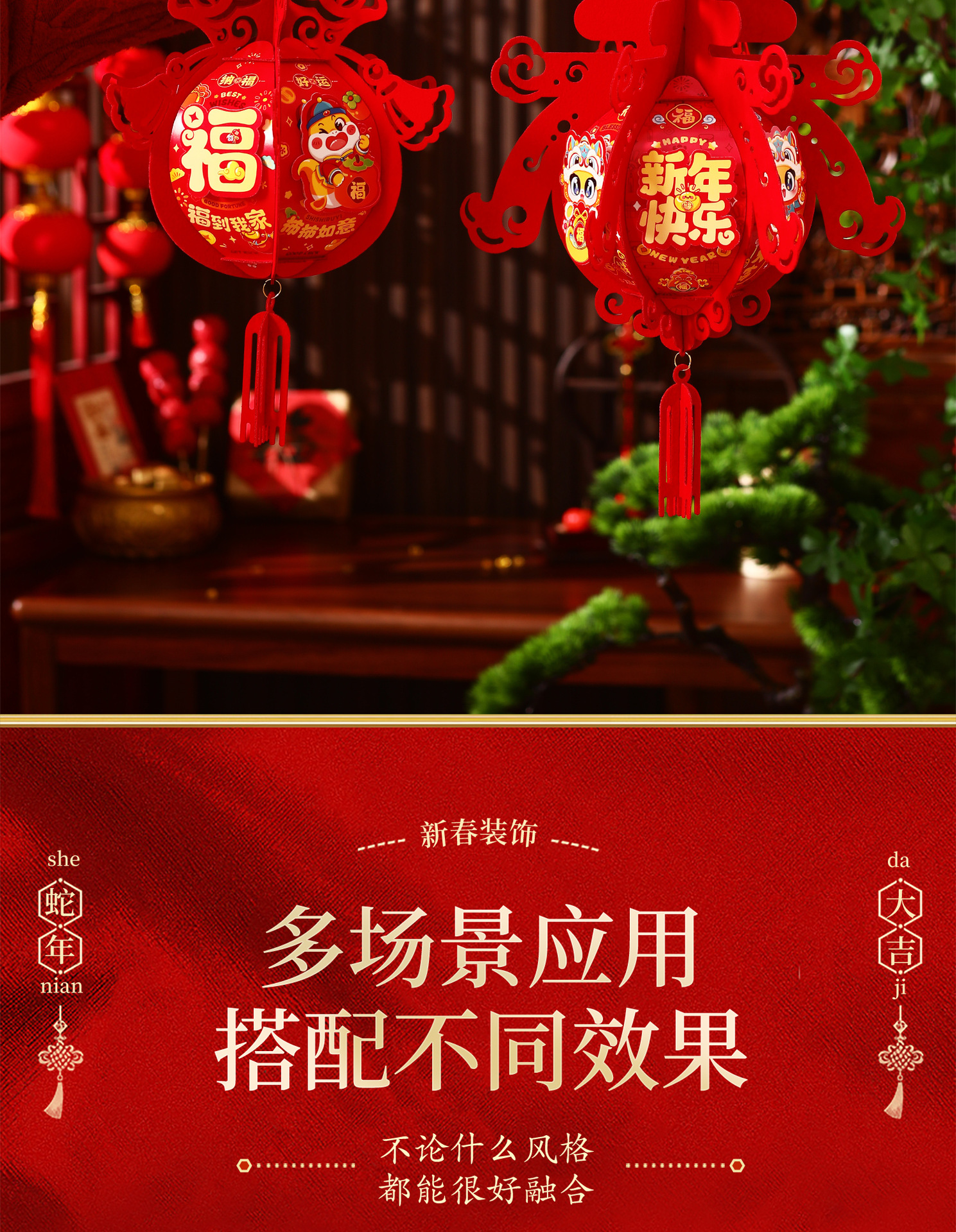 新年生肖灯笼挂饰2025新款蛇年大门氛围布置装饰春节过年福字花灯
