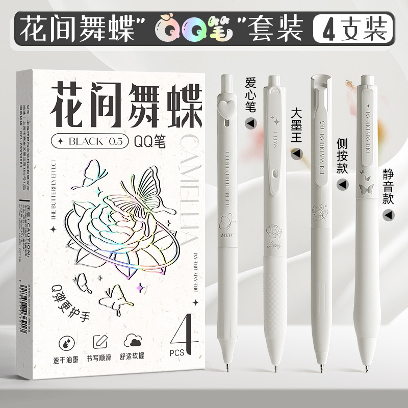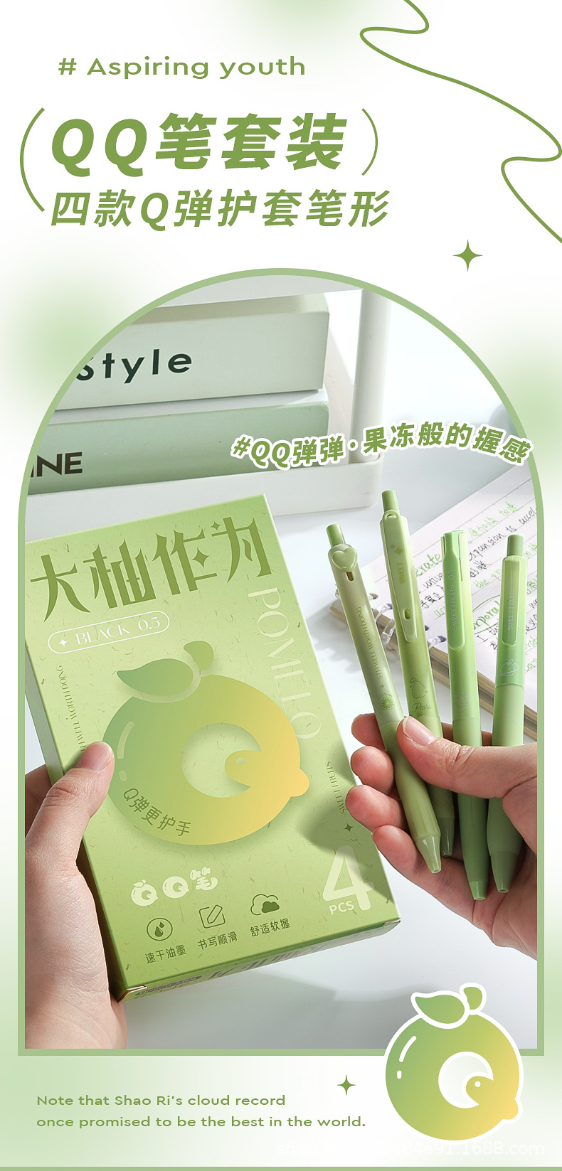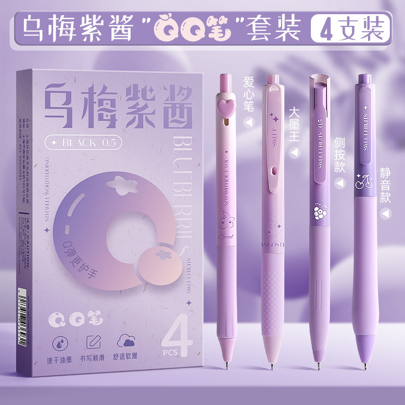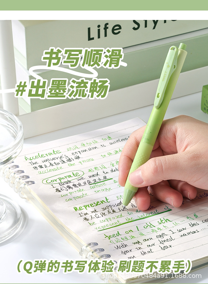 咔巴熊QQ软握舒适解压中性黑色速干圆润水笔ins风学生练习刷题笔