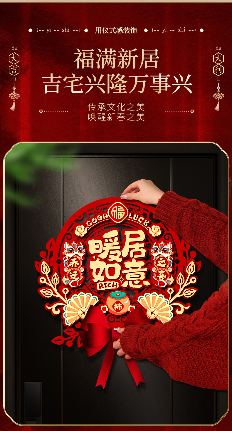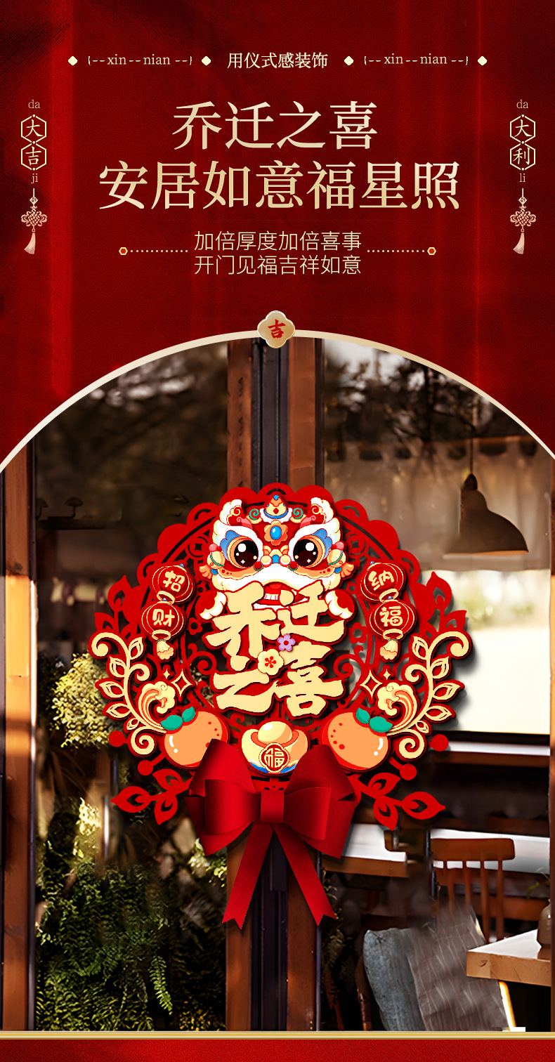 乔迁之喜装饰福字挂件新居布置搬家入宅仪式客厅挂福门贴厂家批发