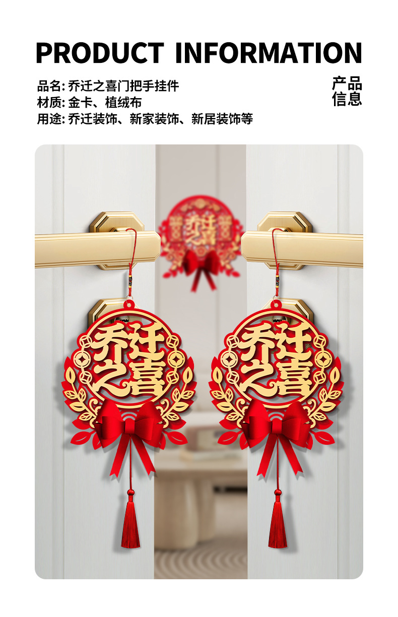 乔迁之喜新居装饰布置新房搬新家门把手挂件搬家入宅仪式用品大全