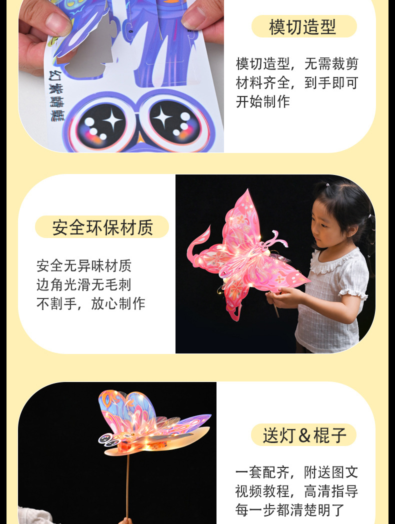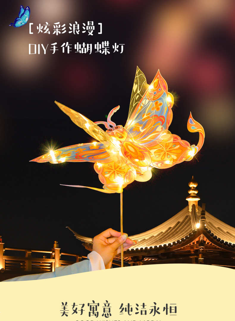 中秋节2024新款蝴蝶灯笼手工diy材料包儿童手提花灯古风宫灯挂饰