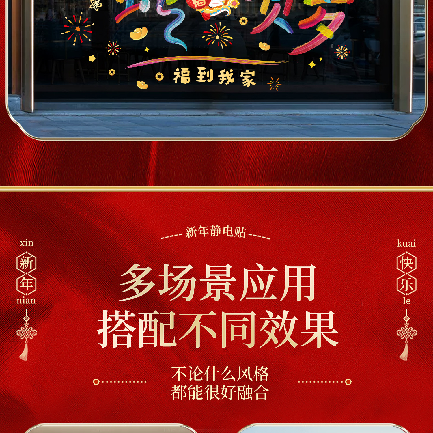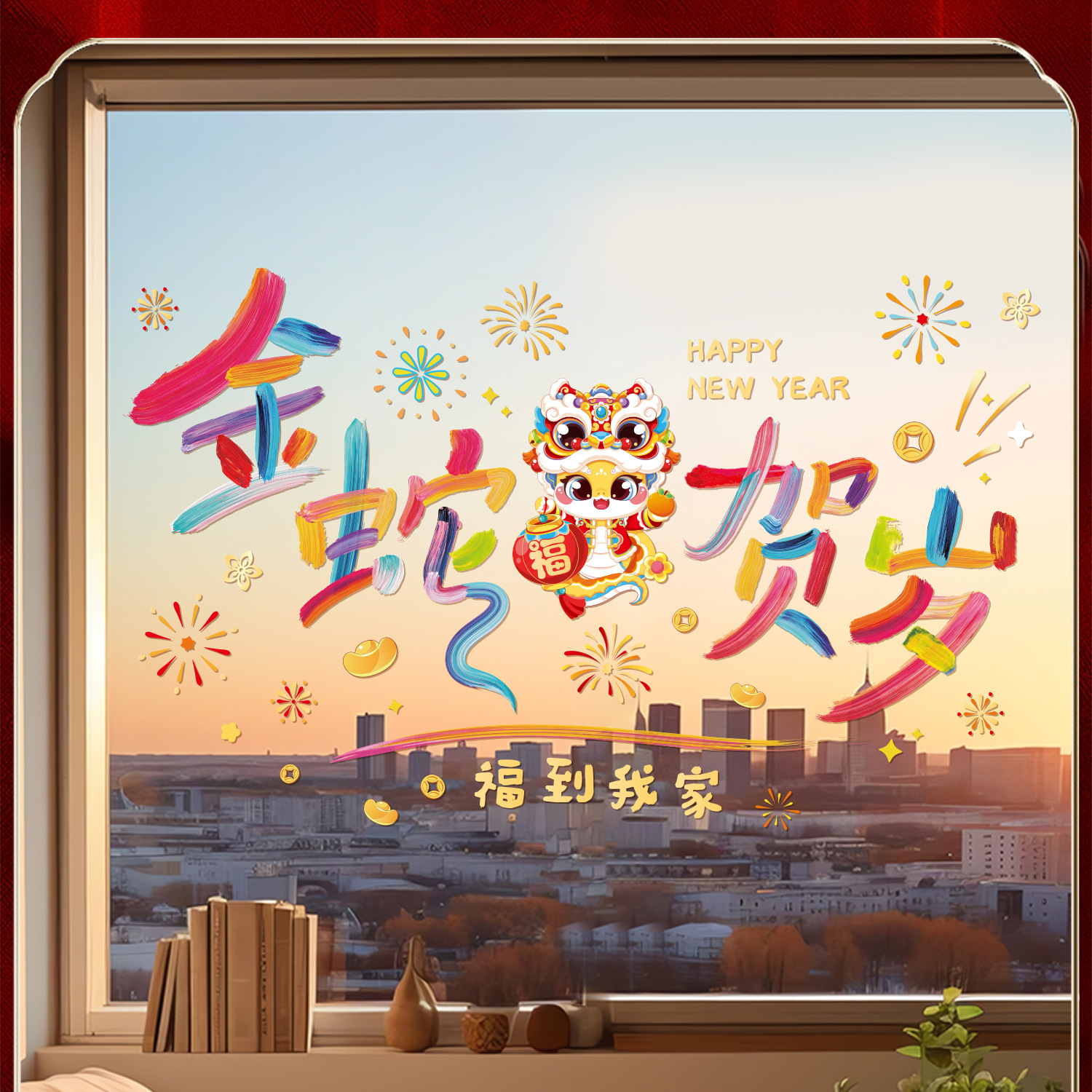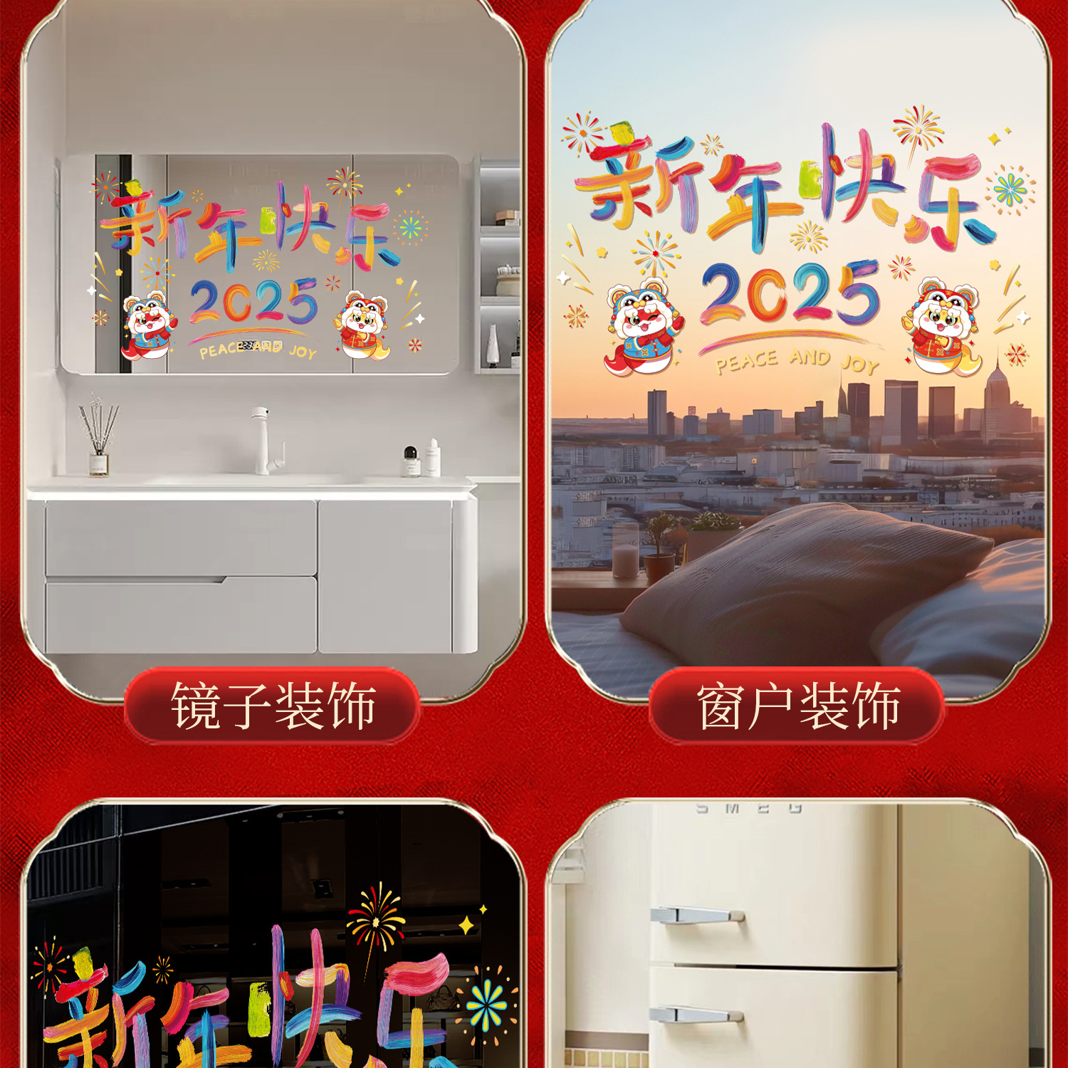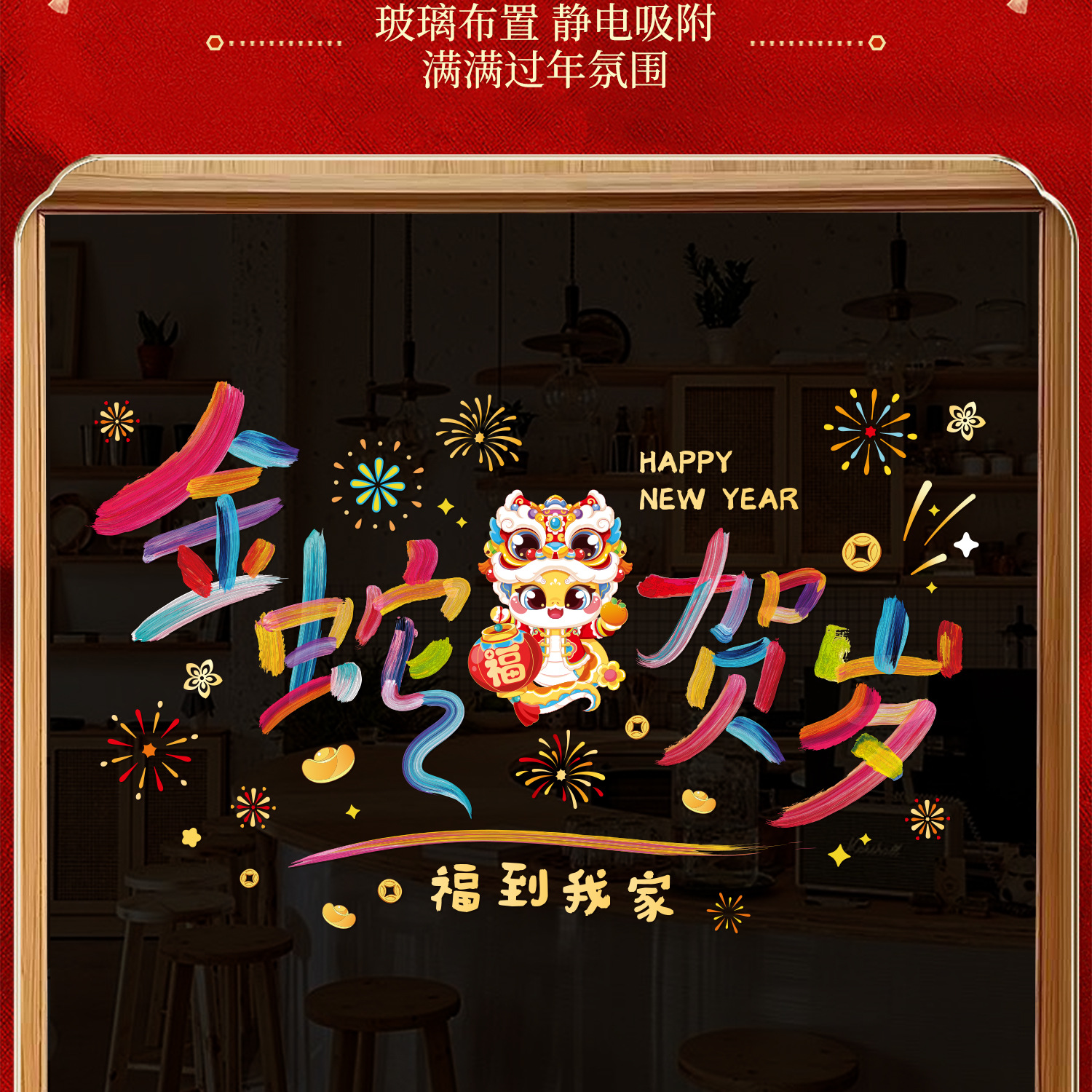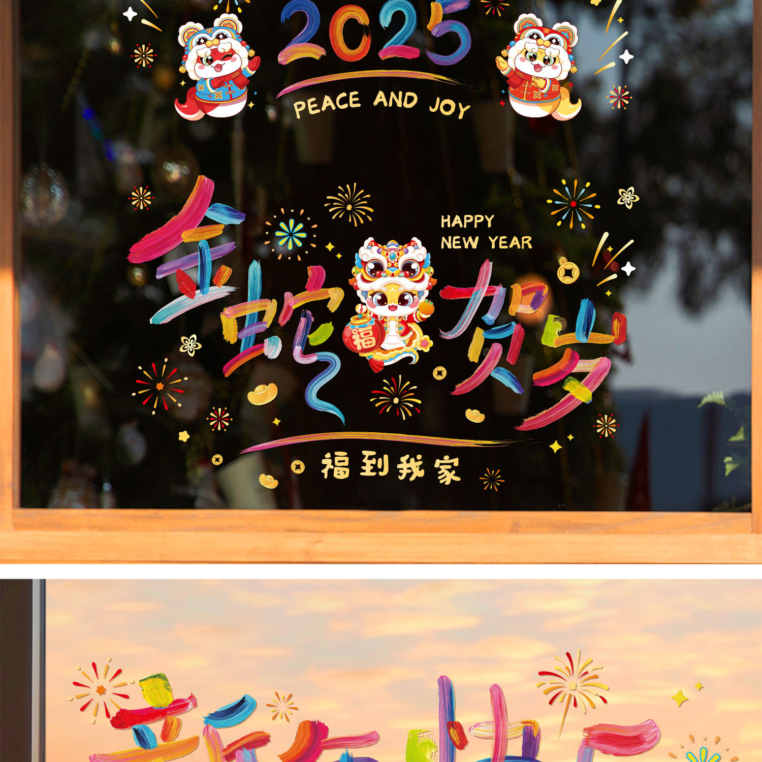 静电贴2025新年蛇年窗花过年橱窗装饰品福字门贴春节玻璃窗贴批发