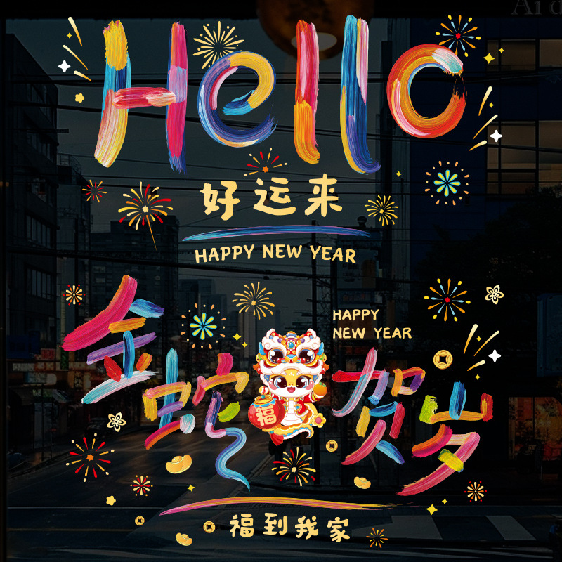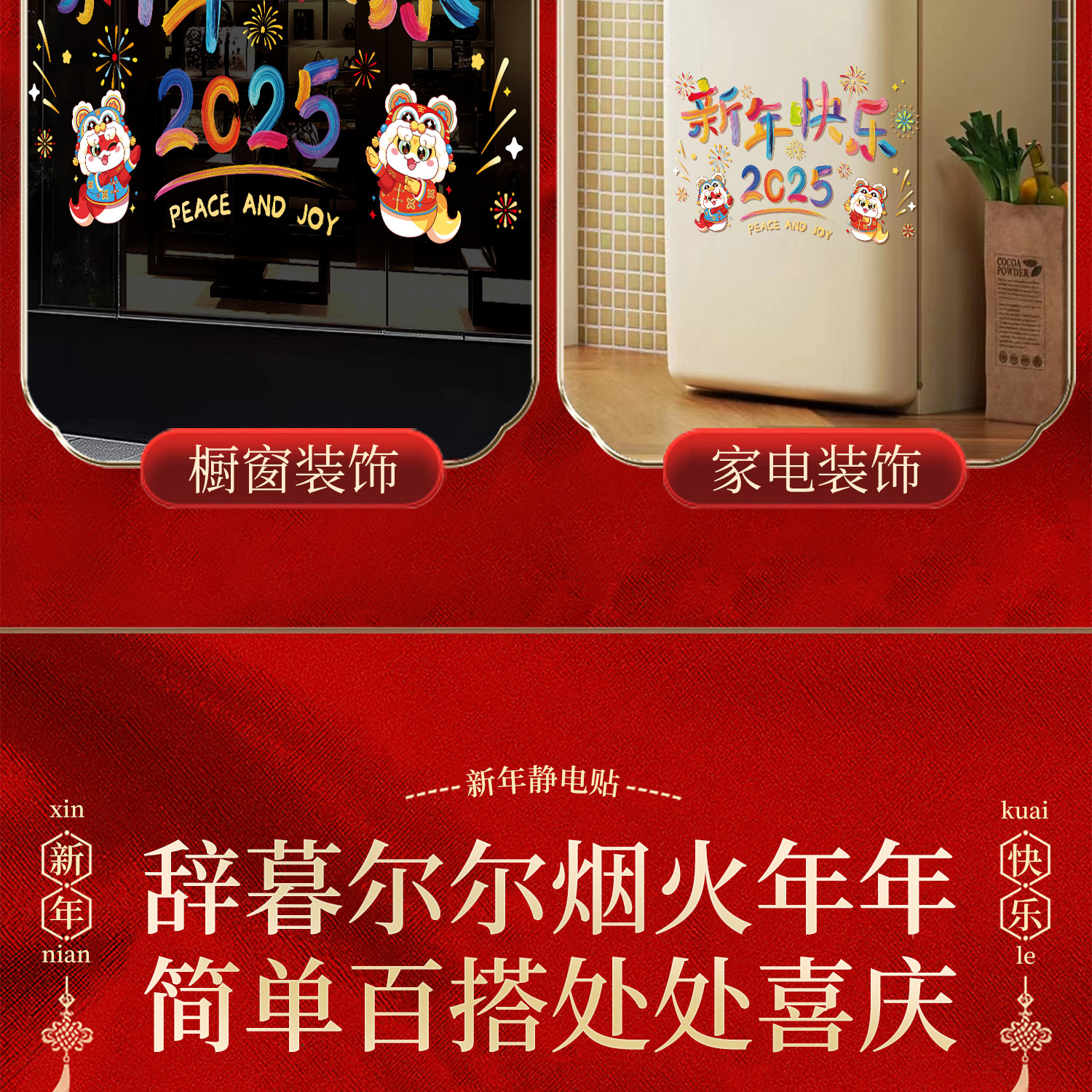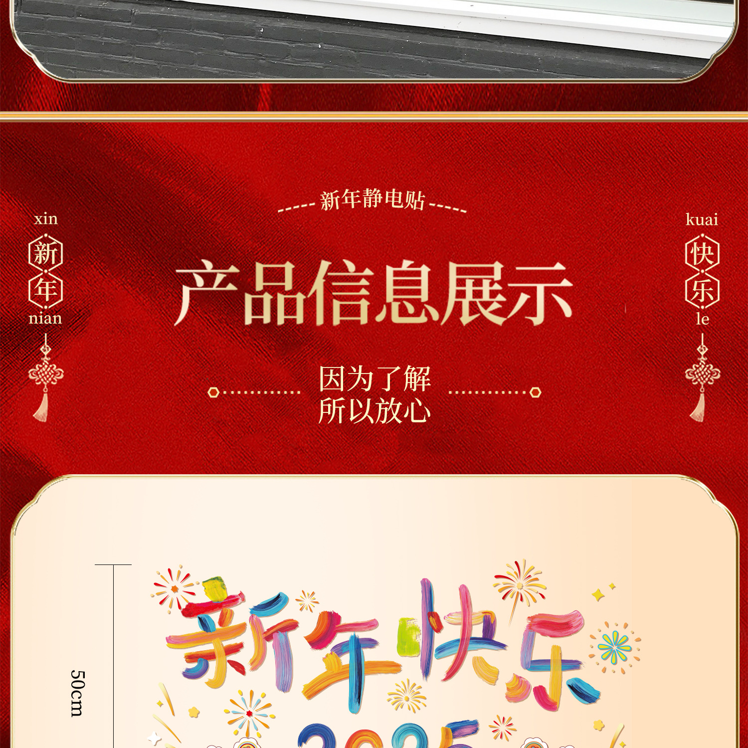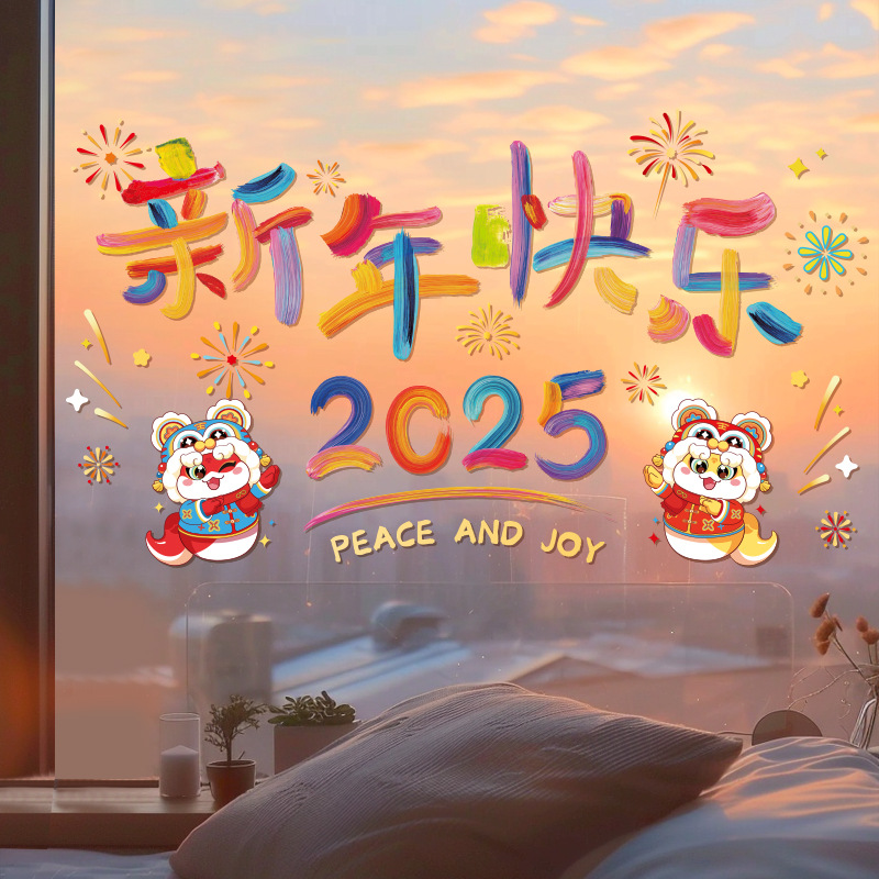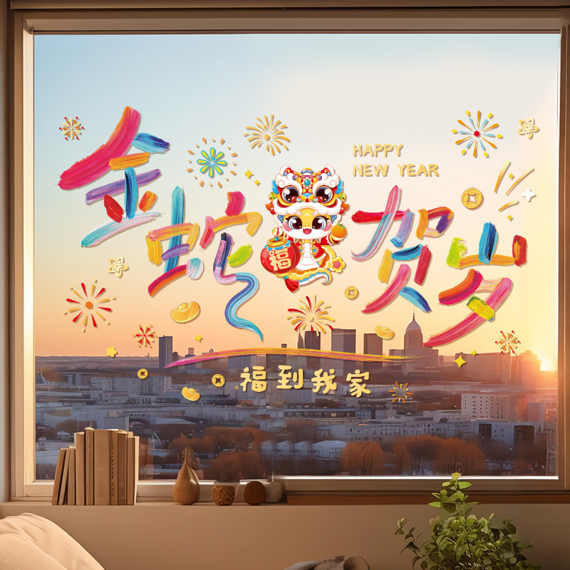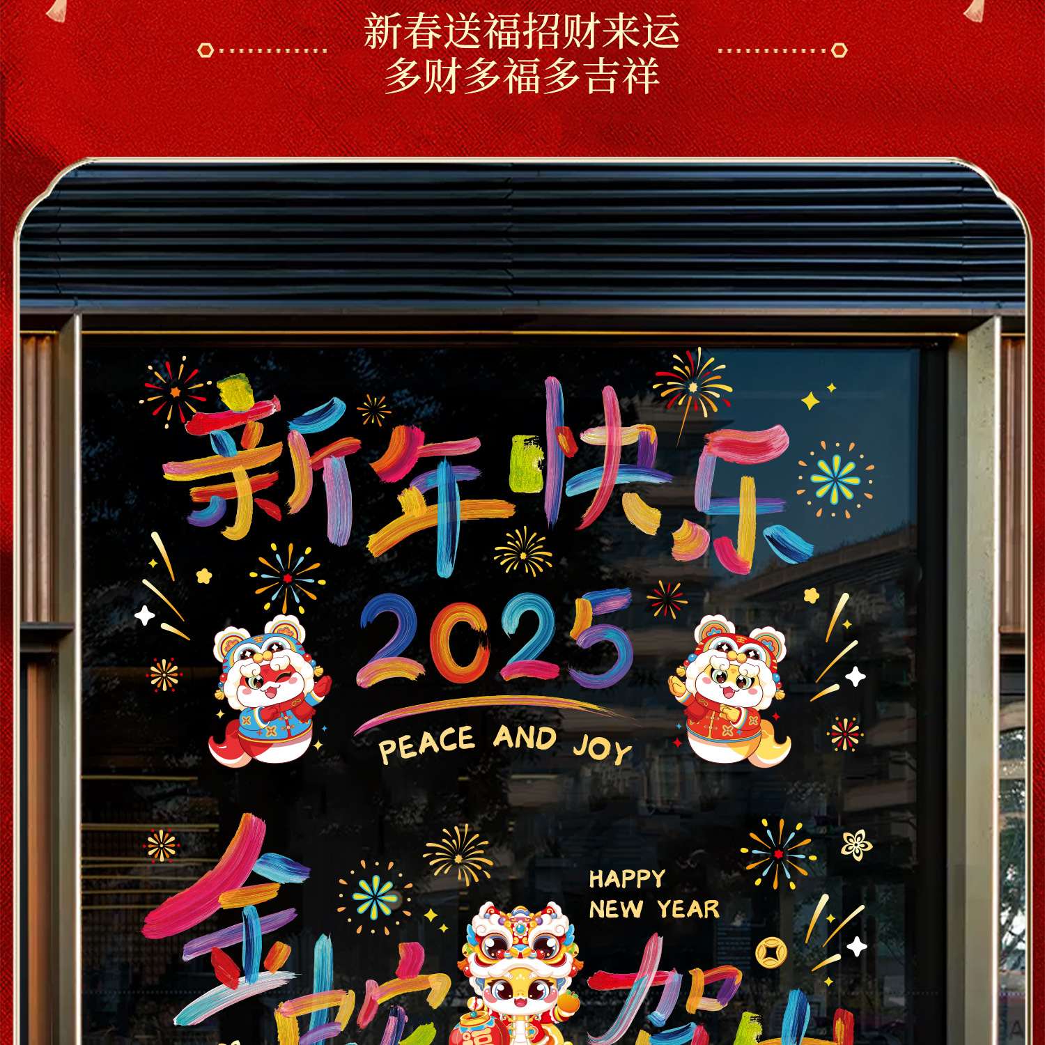 静电贴2025新年蛇年窗花过年橱窗装饰品福字门贴春节玻璃窗贴批发