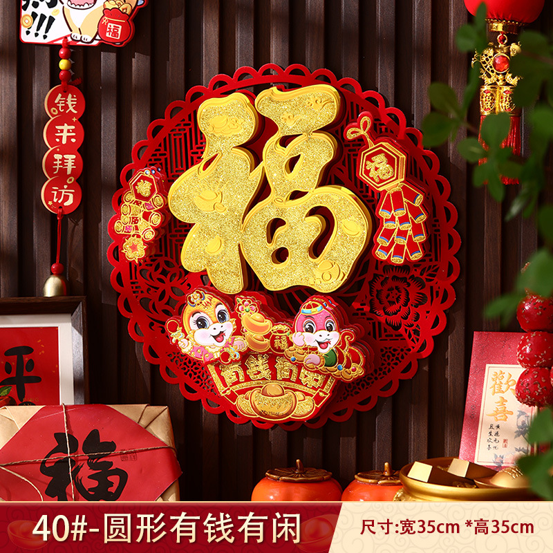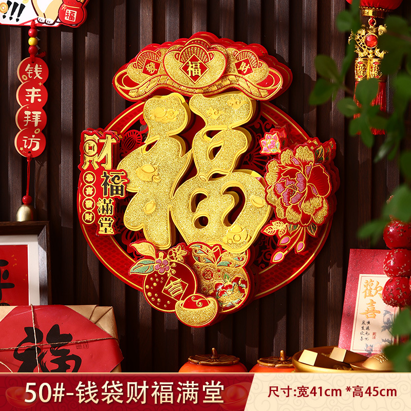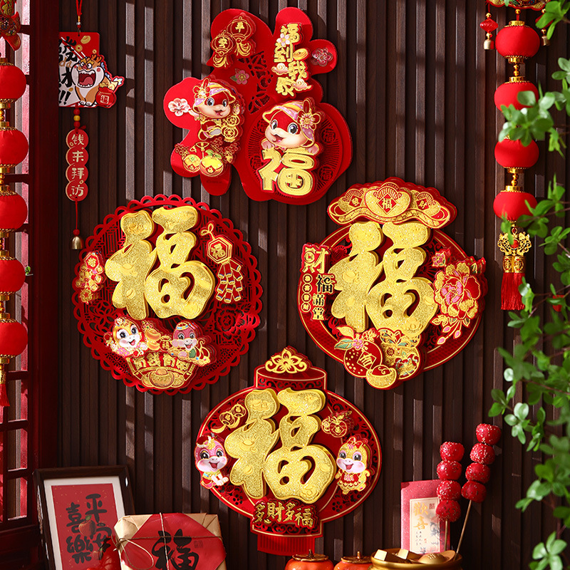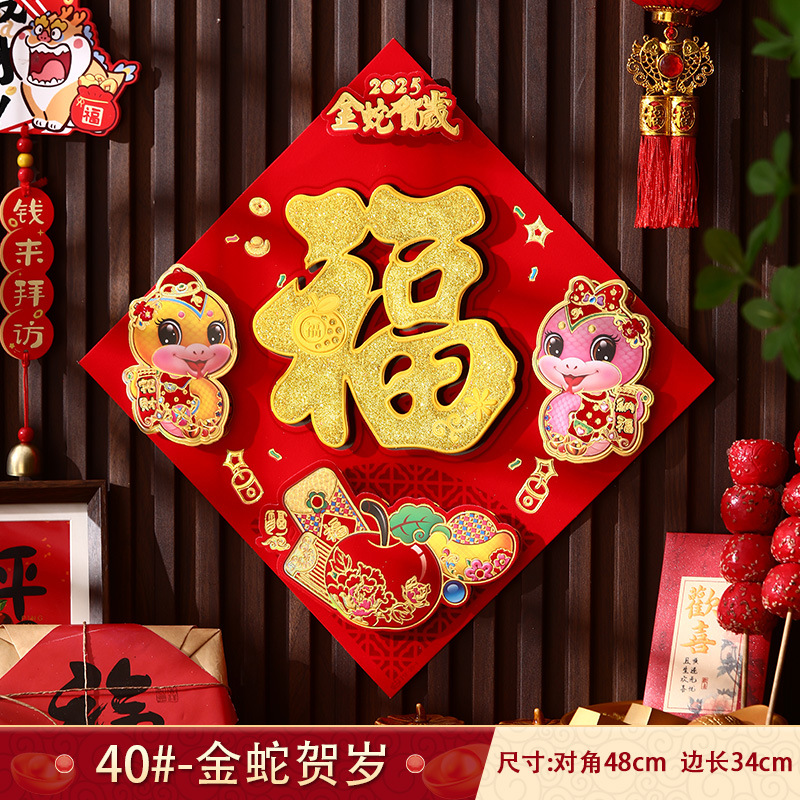 福字2025蛇年新年门贴立体入户门福贴过年布置墙贴春节装饰品批发