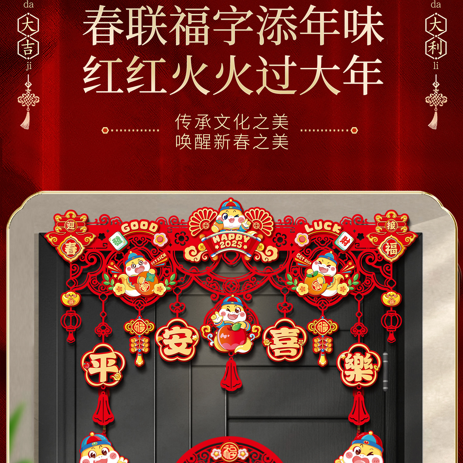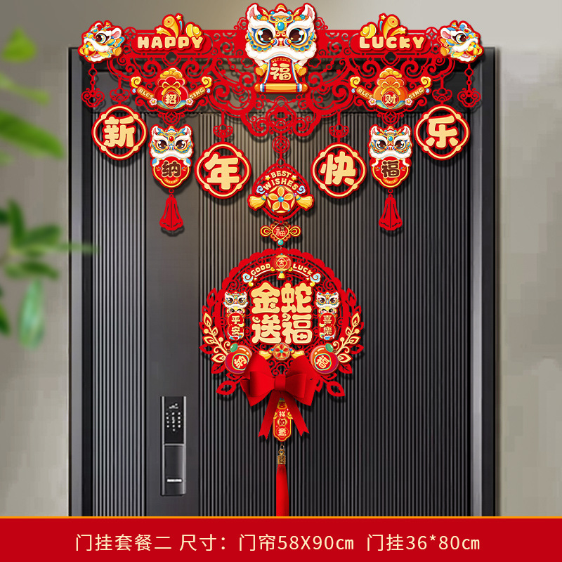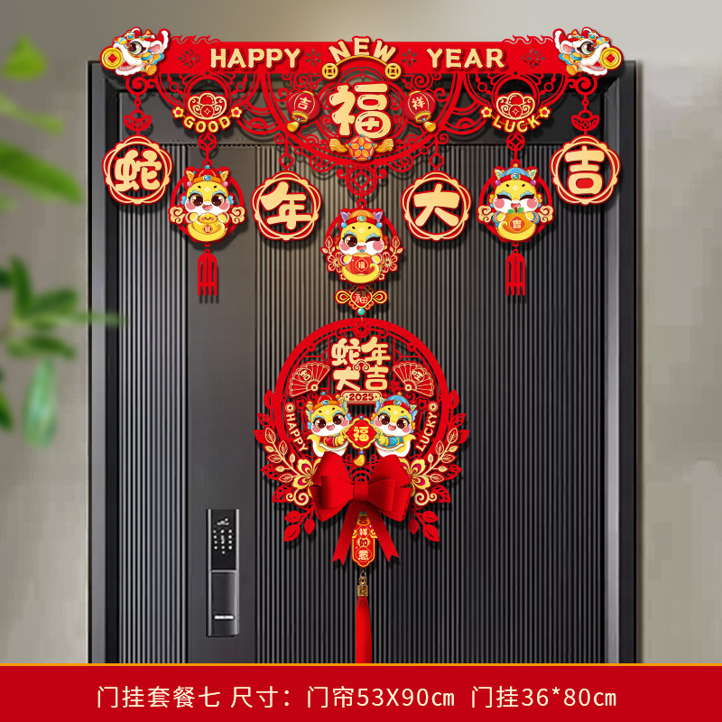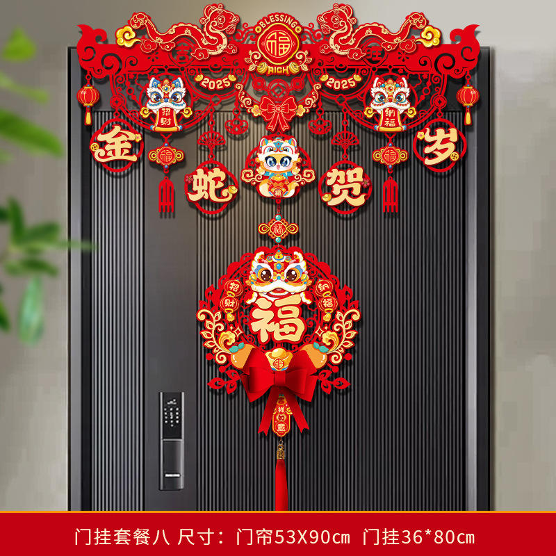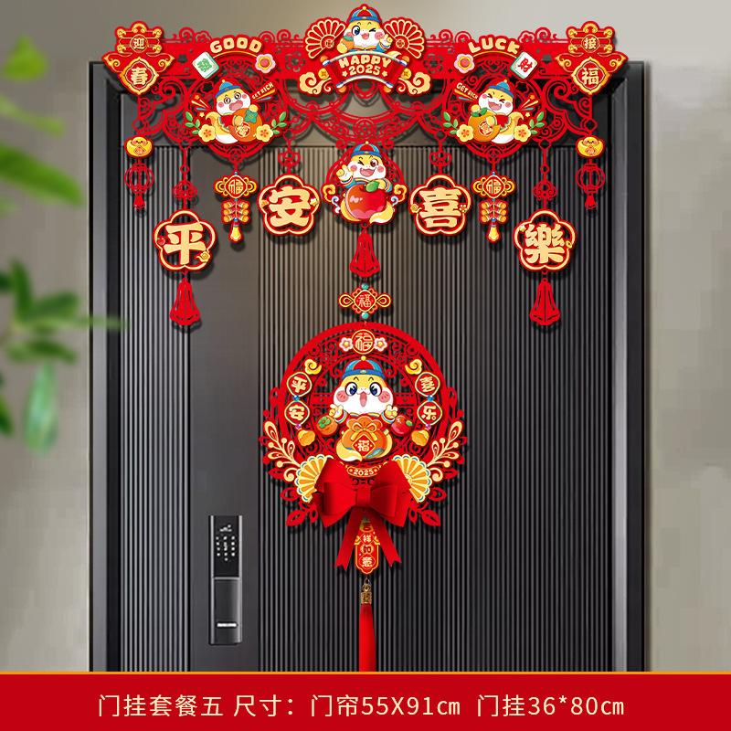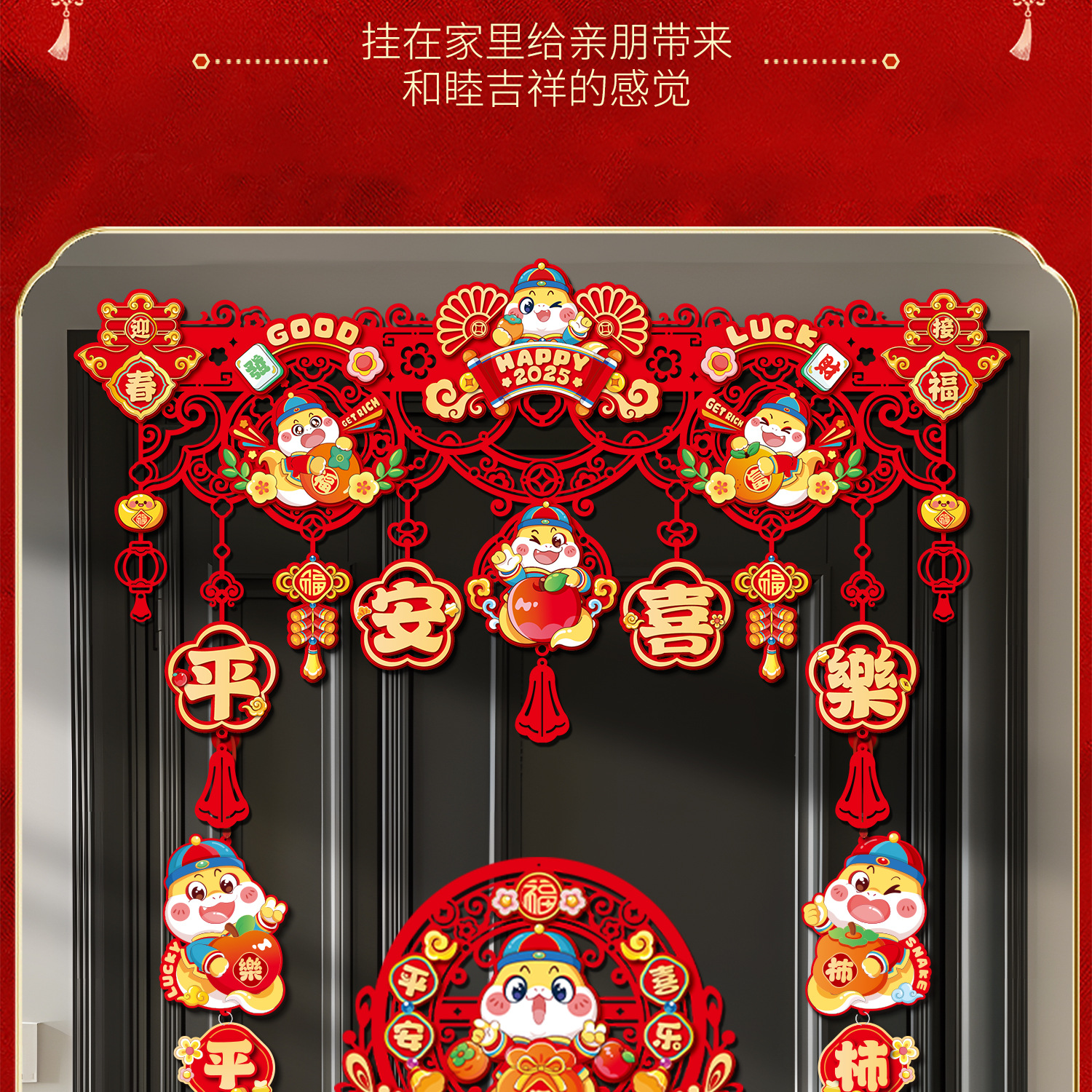 2025新款新年挂件入户门贴春节门帘拉花场景布置房门福字挂饰批发