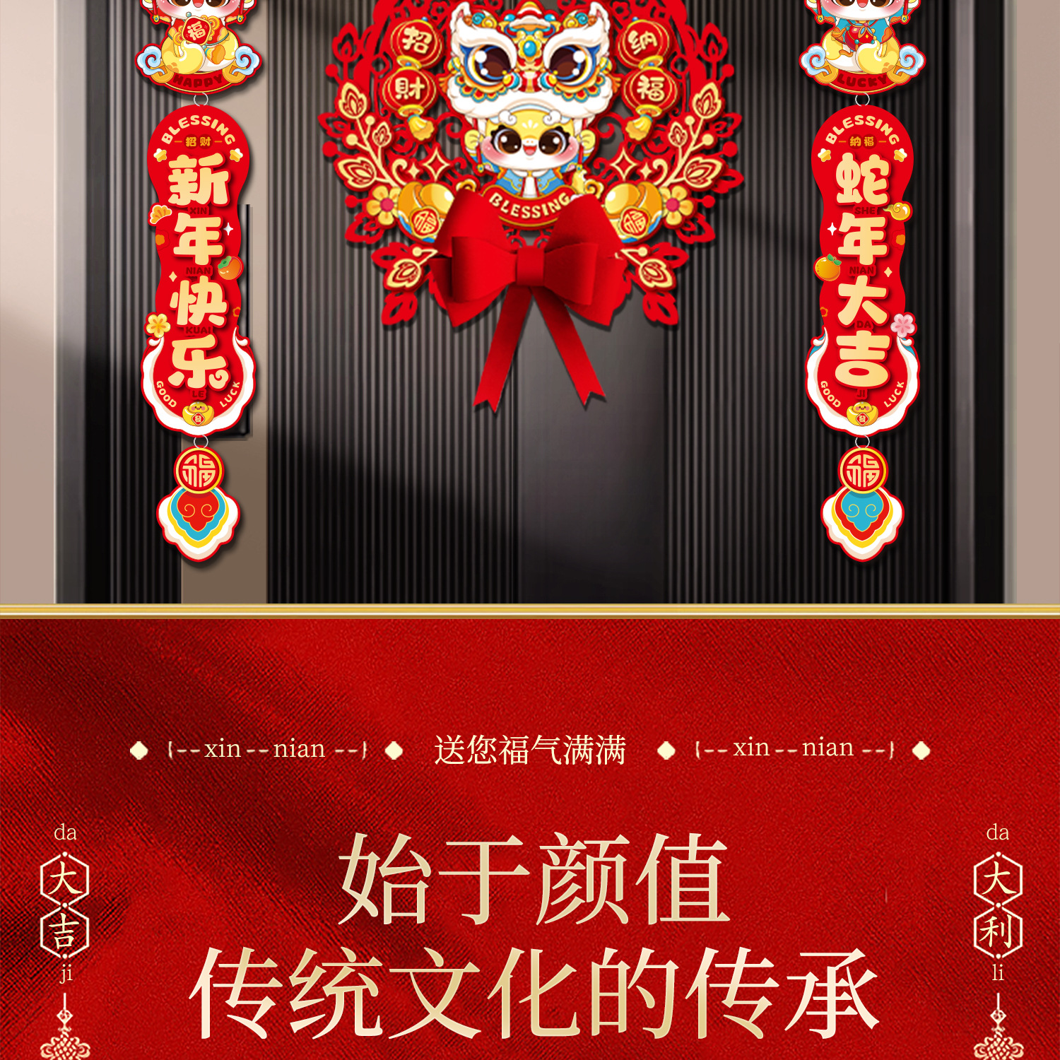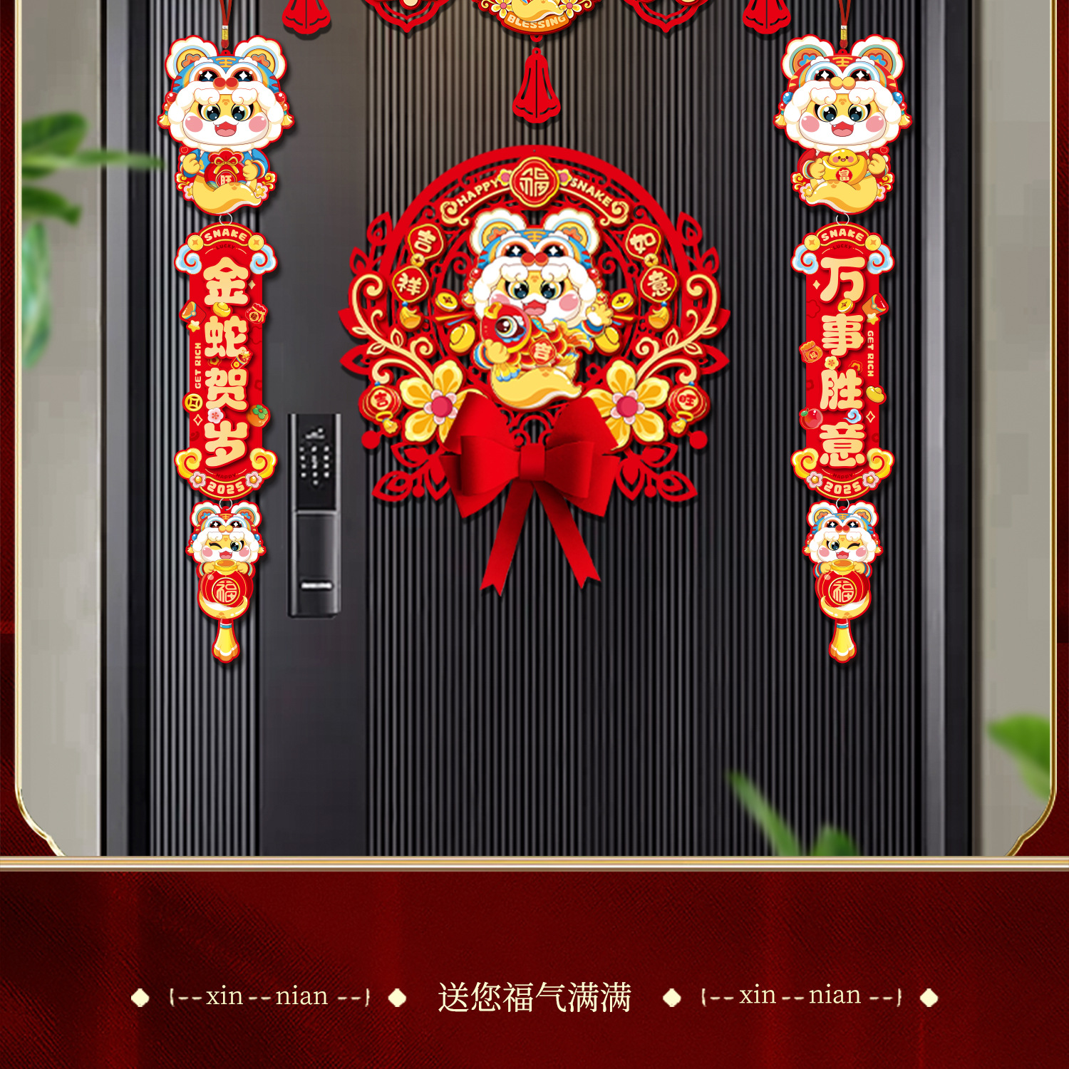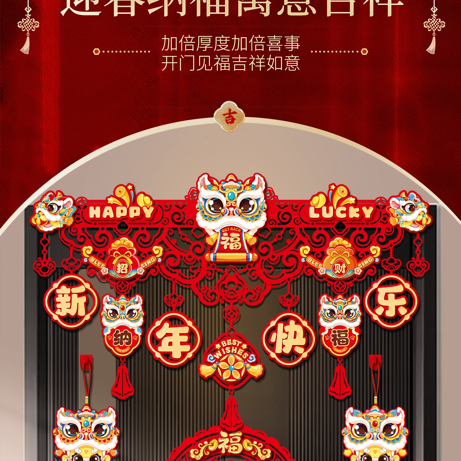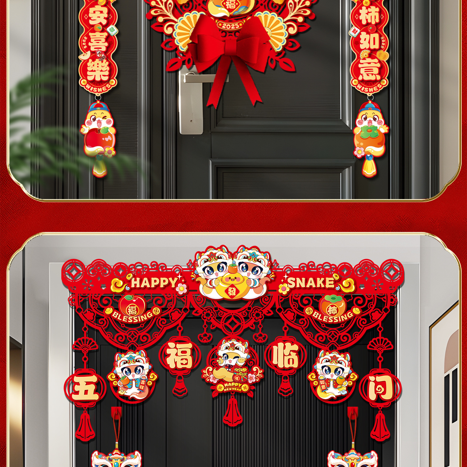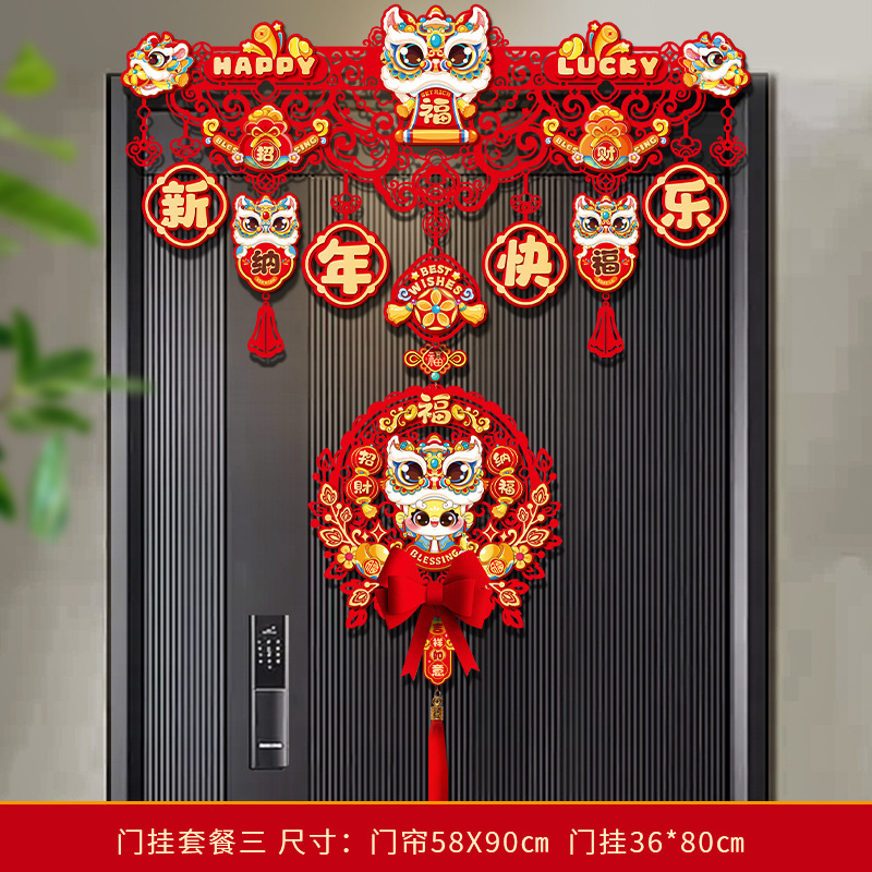 2025新款新年挂件入户门贴春节门帘拉花场景布置房门福字挂饰批发