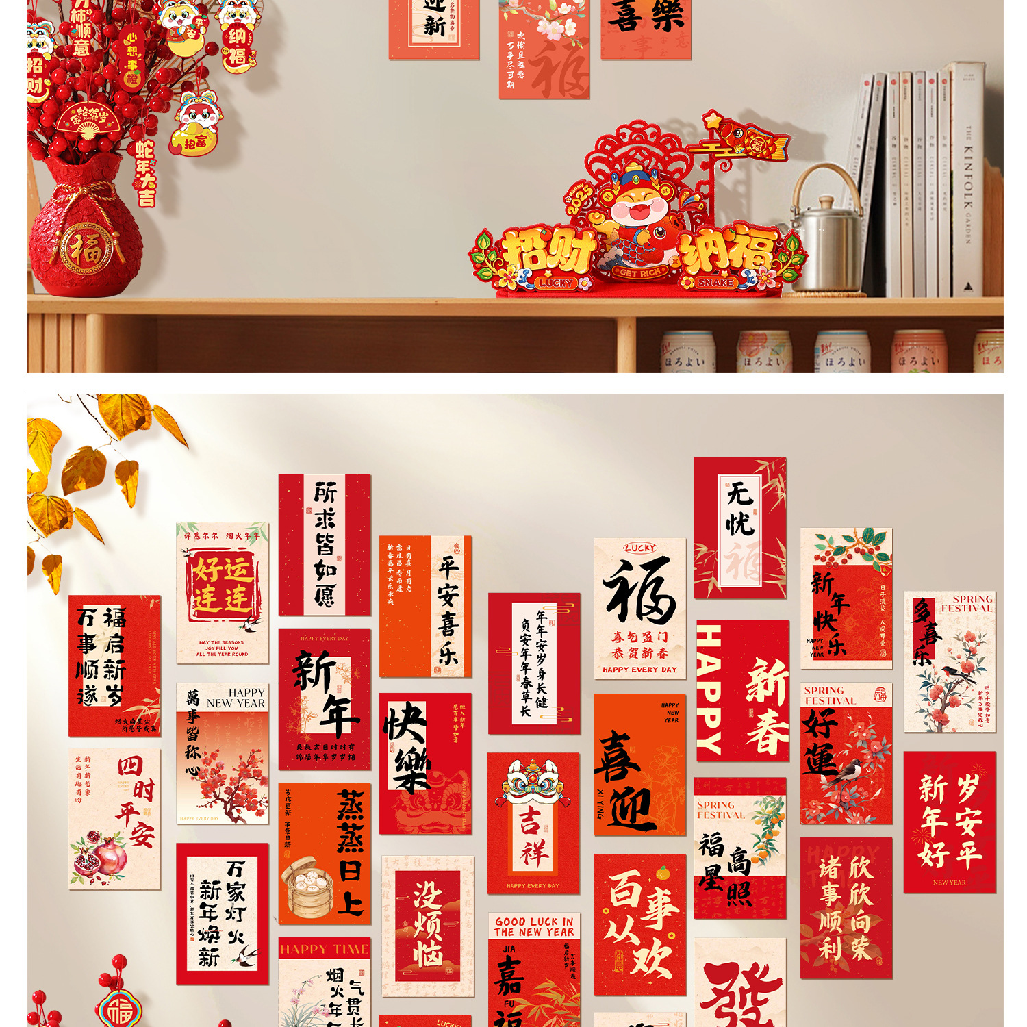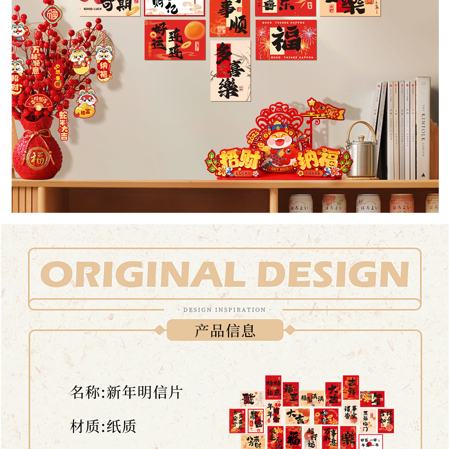 2025春节新年明信片装饰品过年元旦贺卡贴纸房间布置背景墙拍照
