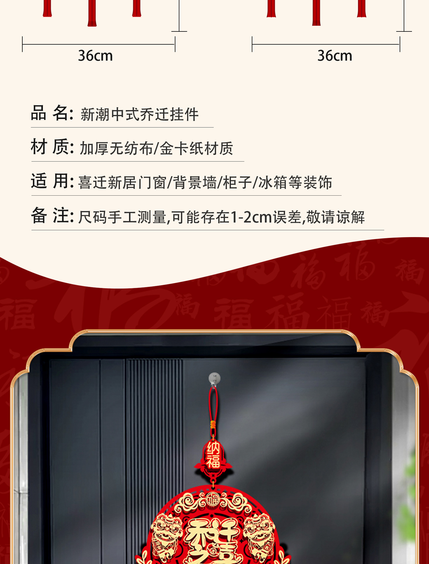 乔迁之喜福字挂饰客厅入宅门贴仪式装饰品新居布置搬家入户门挂件