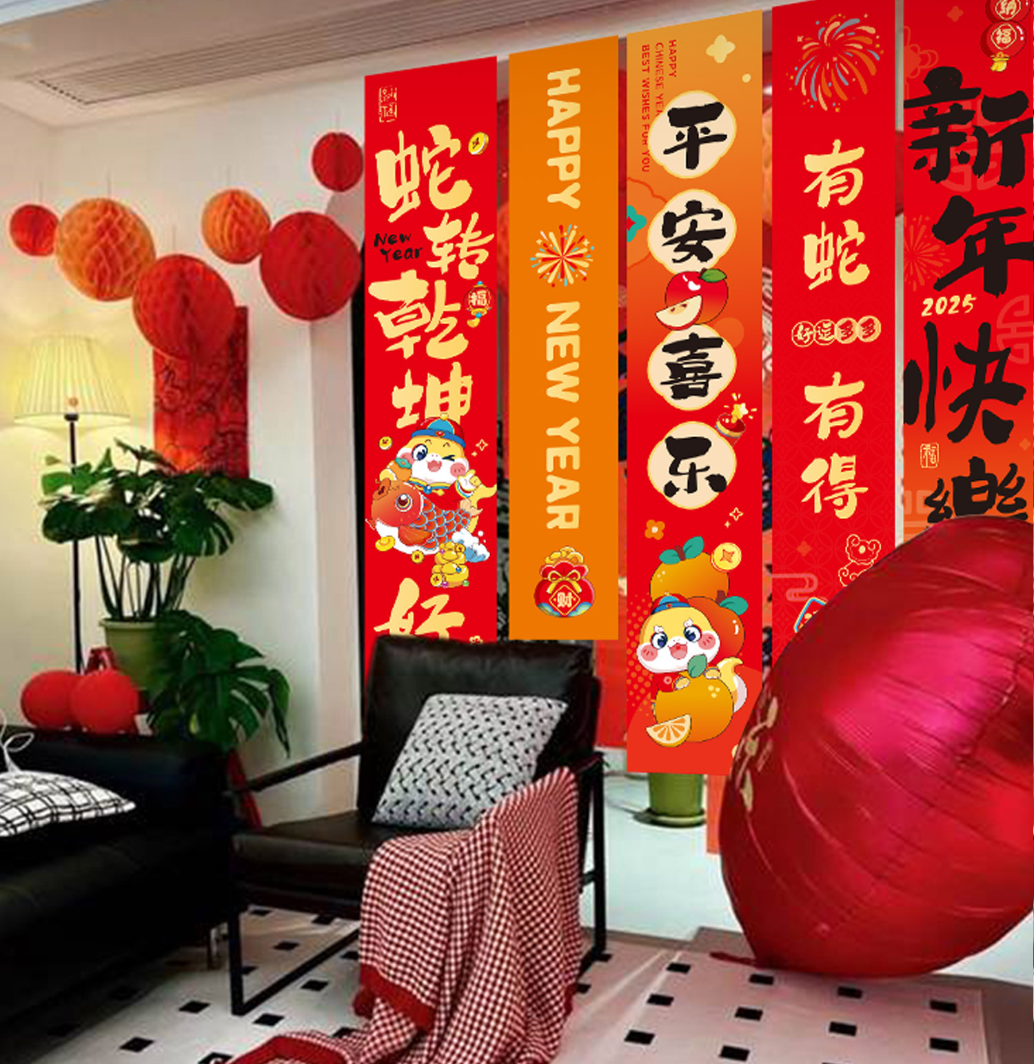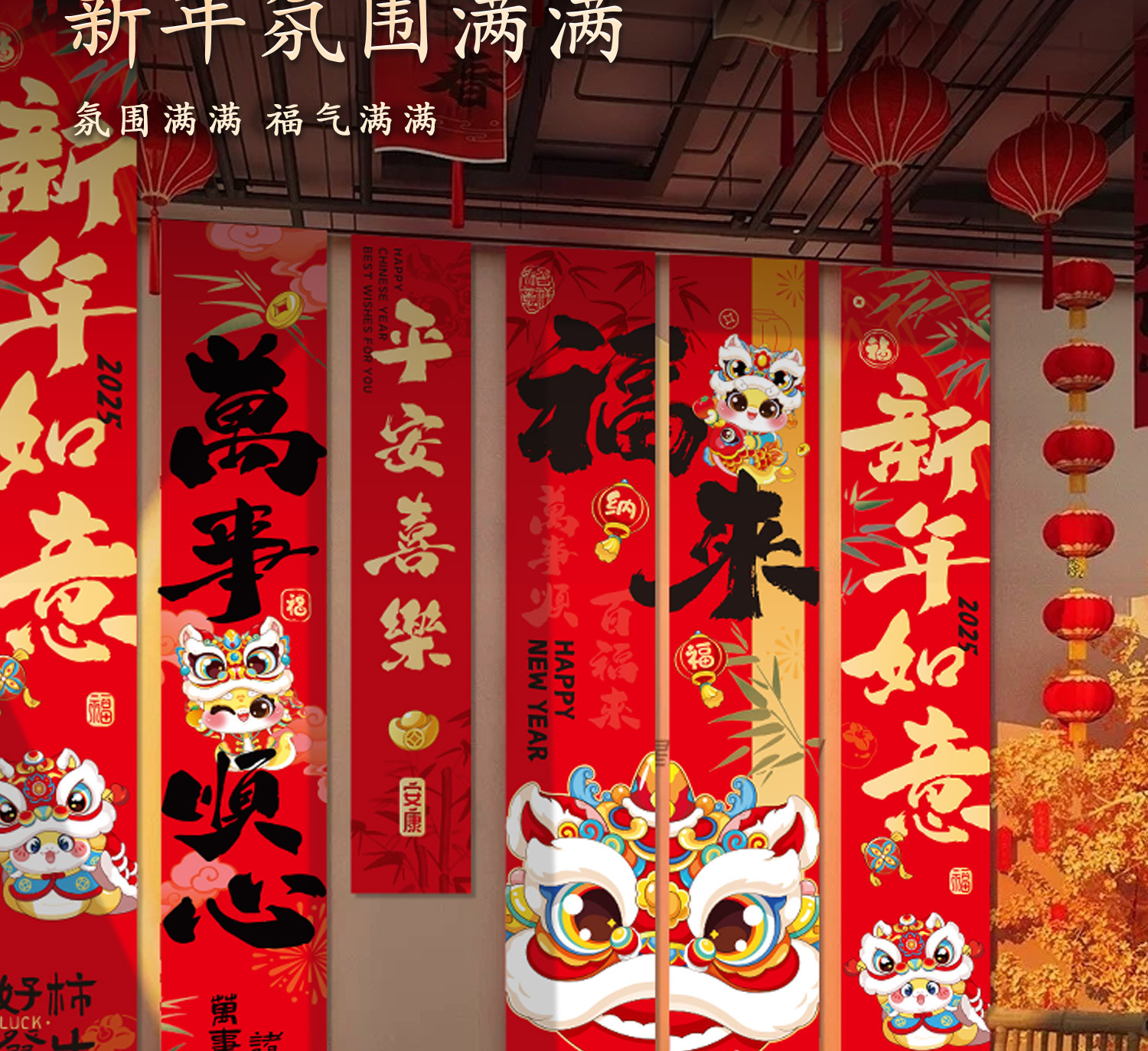 新年挂布2025蛇年春节装饰过年商场店铺场景布置氛围条幅厂家批发