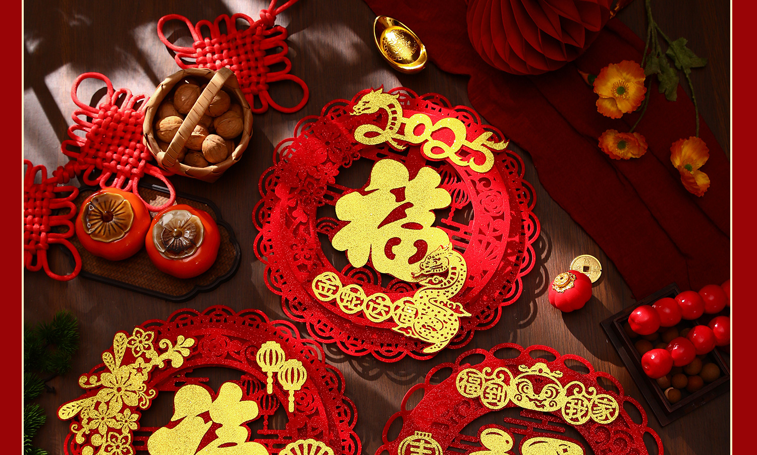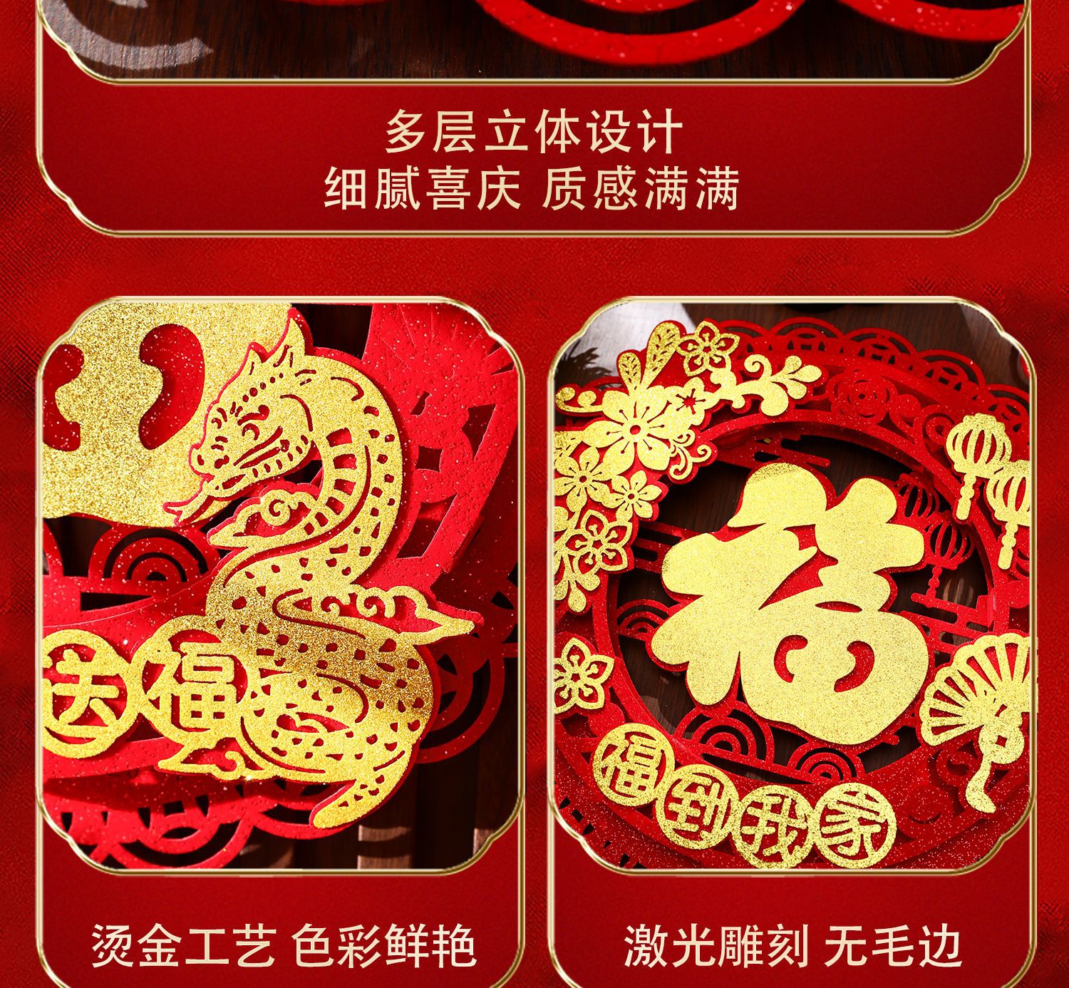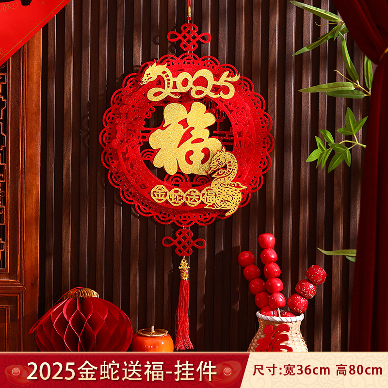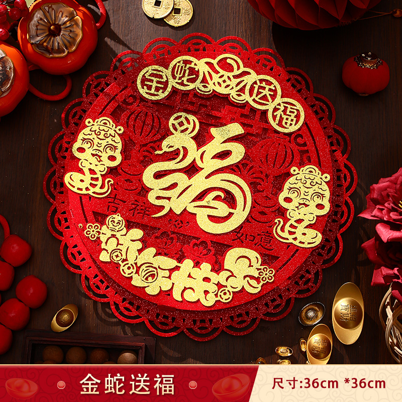 植绒布立体福字贴2025新款蛇年新年过年挂饰春节福子门贴装饰批发