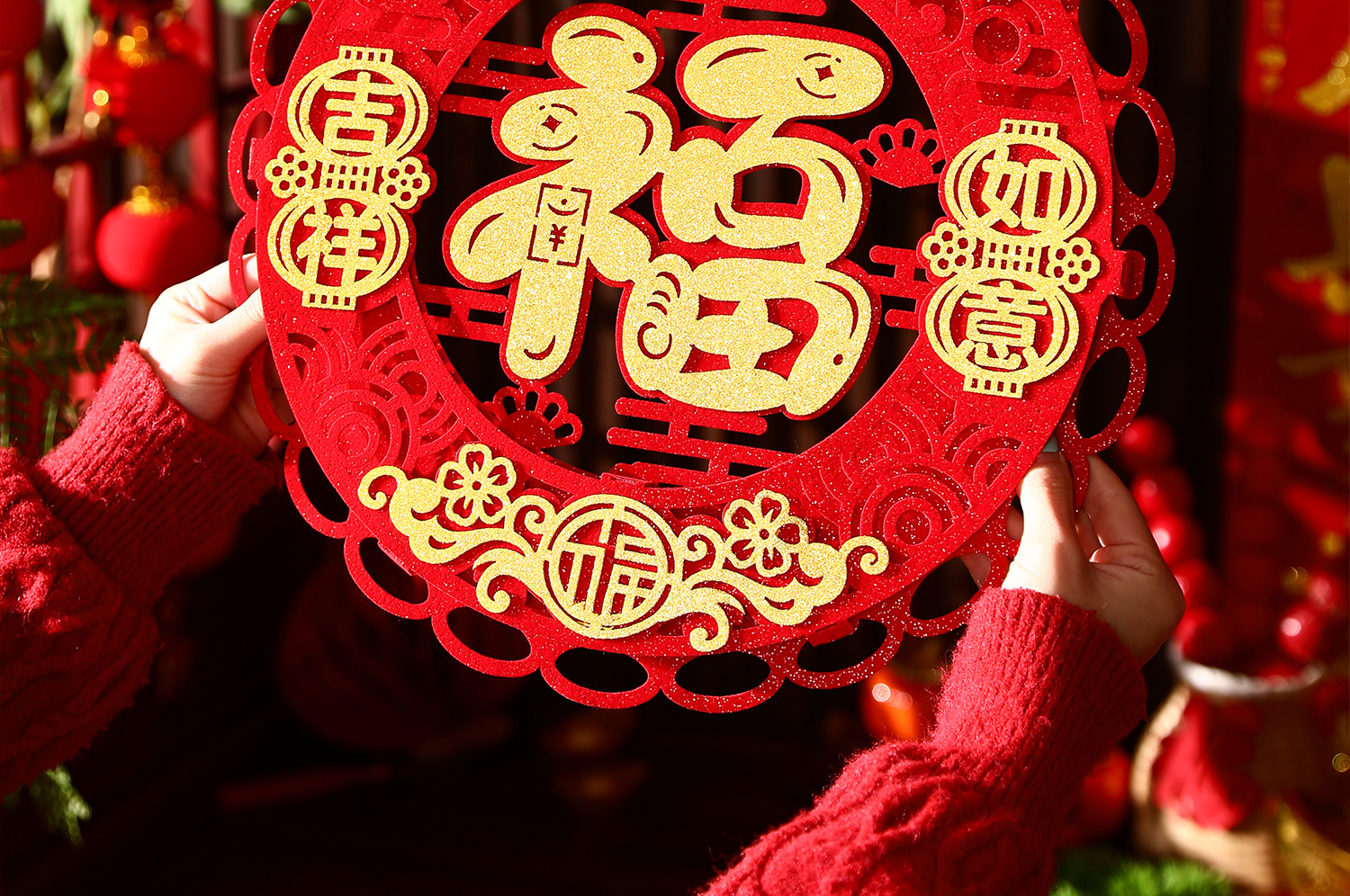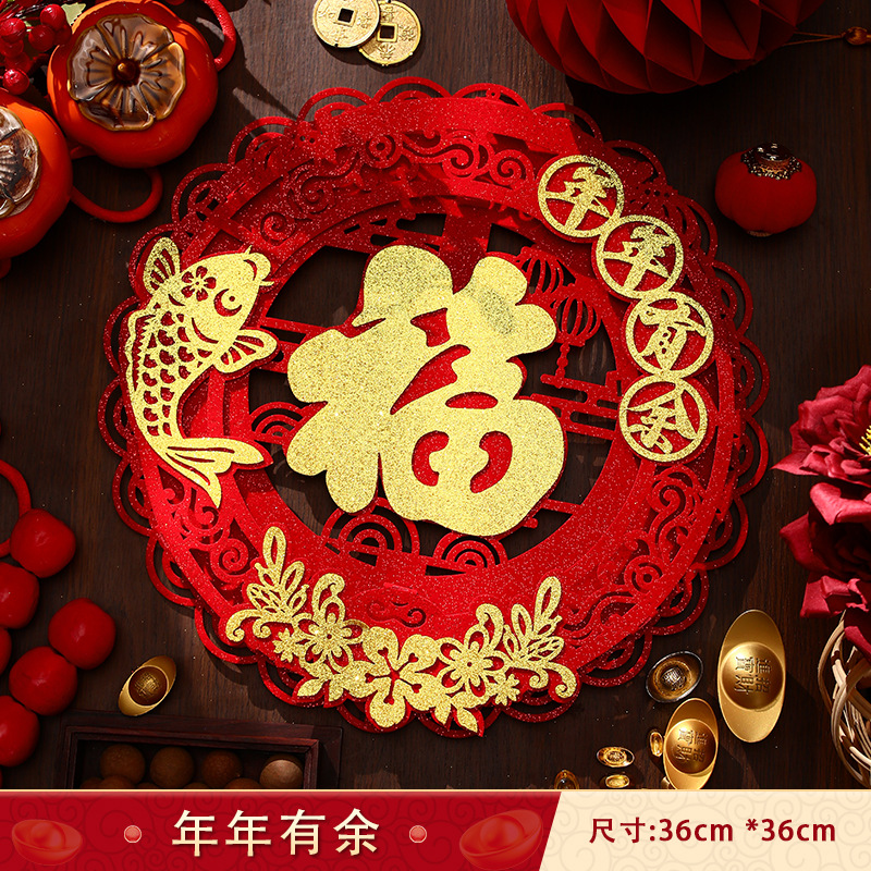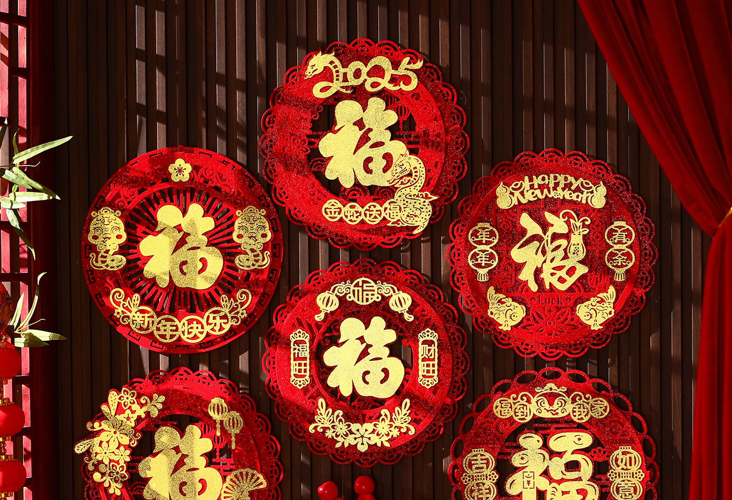 植绒布立体福字贴2025新款蛇年新年过年挂饰春节福子门贴装饰批发